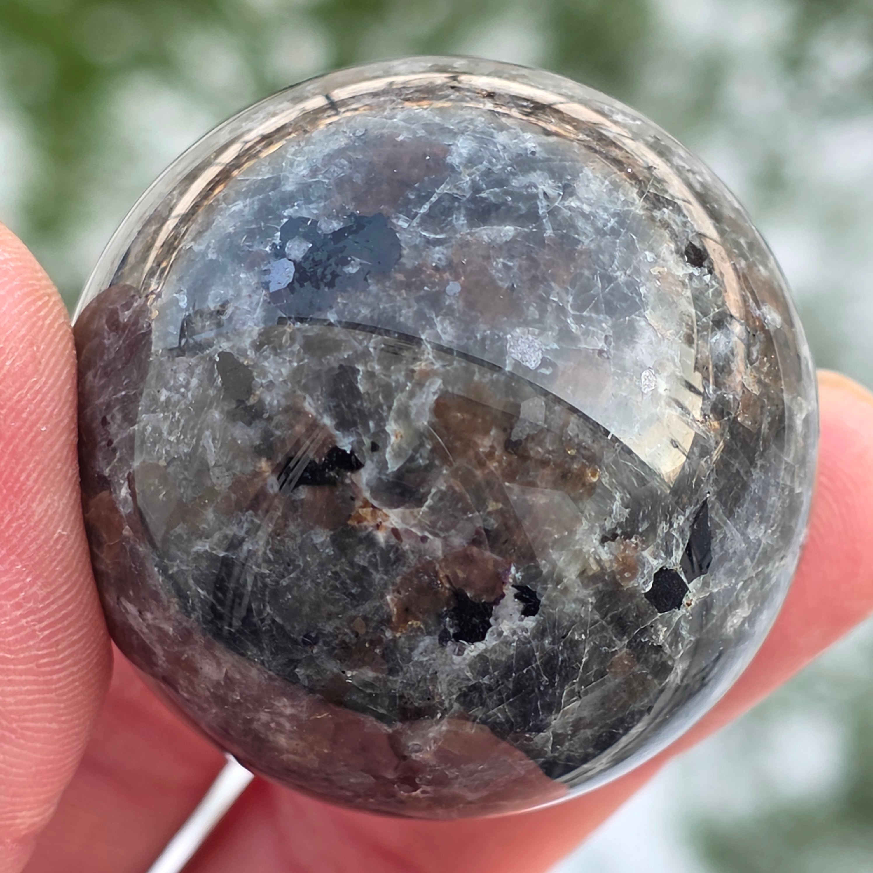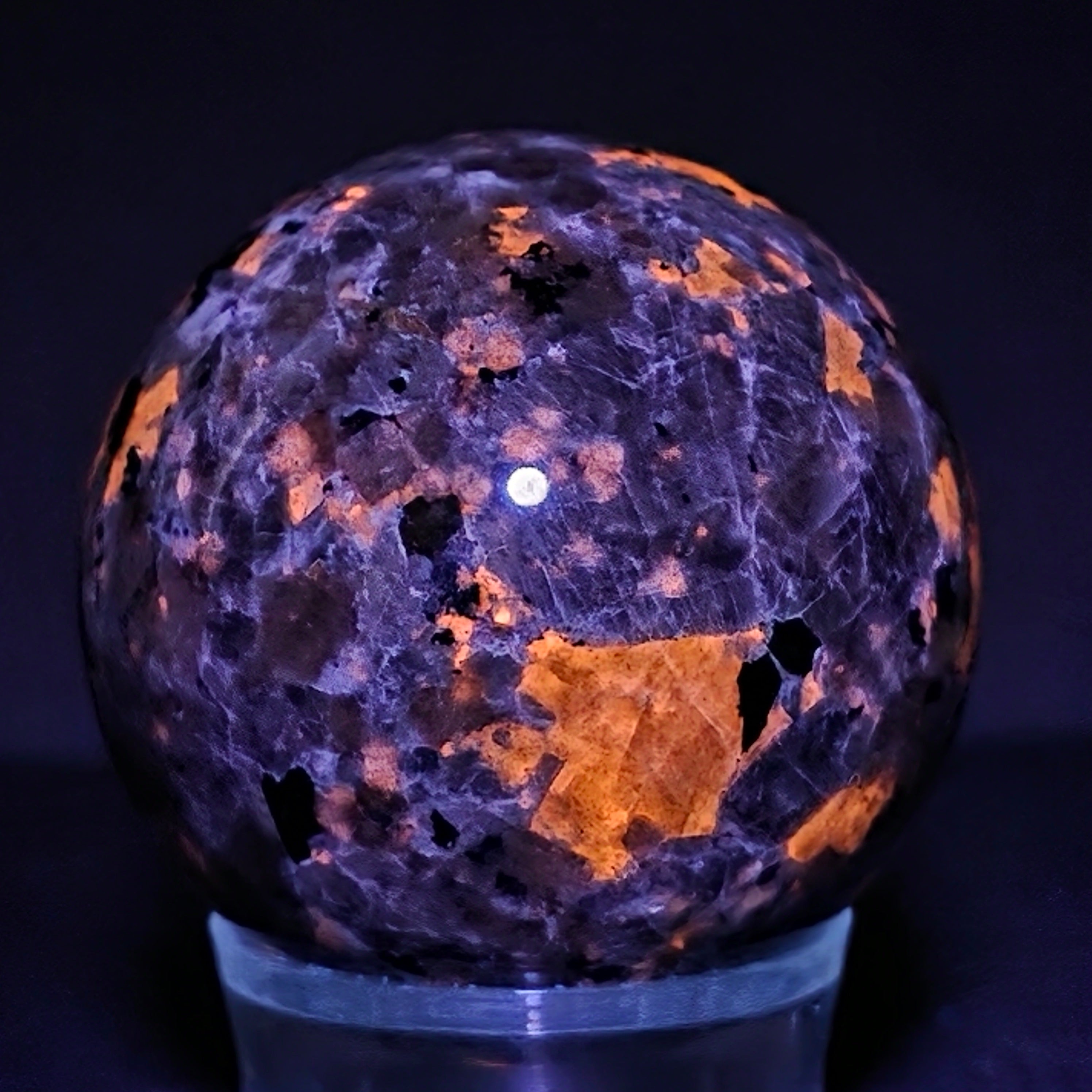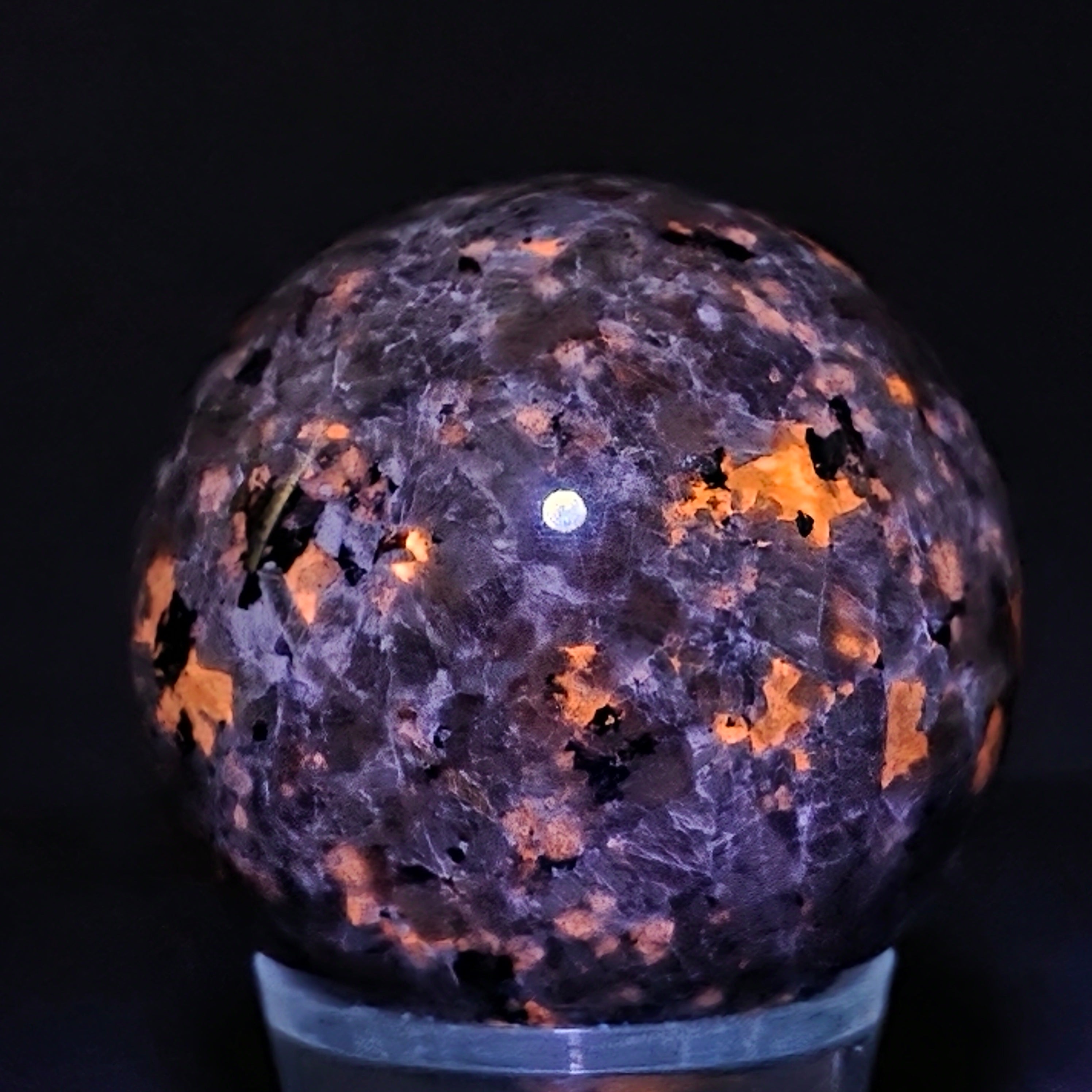 La esfera de yooperlita se asocia con la claridad emocional y la expresión de la verdad interior, siendo conocida por su vínculo con la conciencia y el descubrimiento de cosas ocultas. La forma esférica amplifica la idea de equilibrio y coherencia, fomentando una relación más sincera con las propias emociones y reacciones.