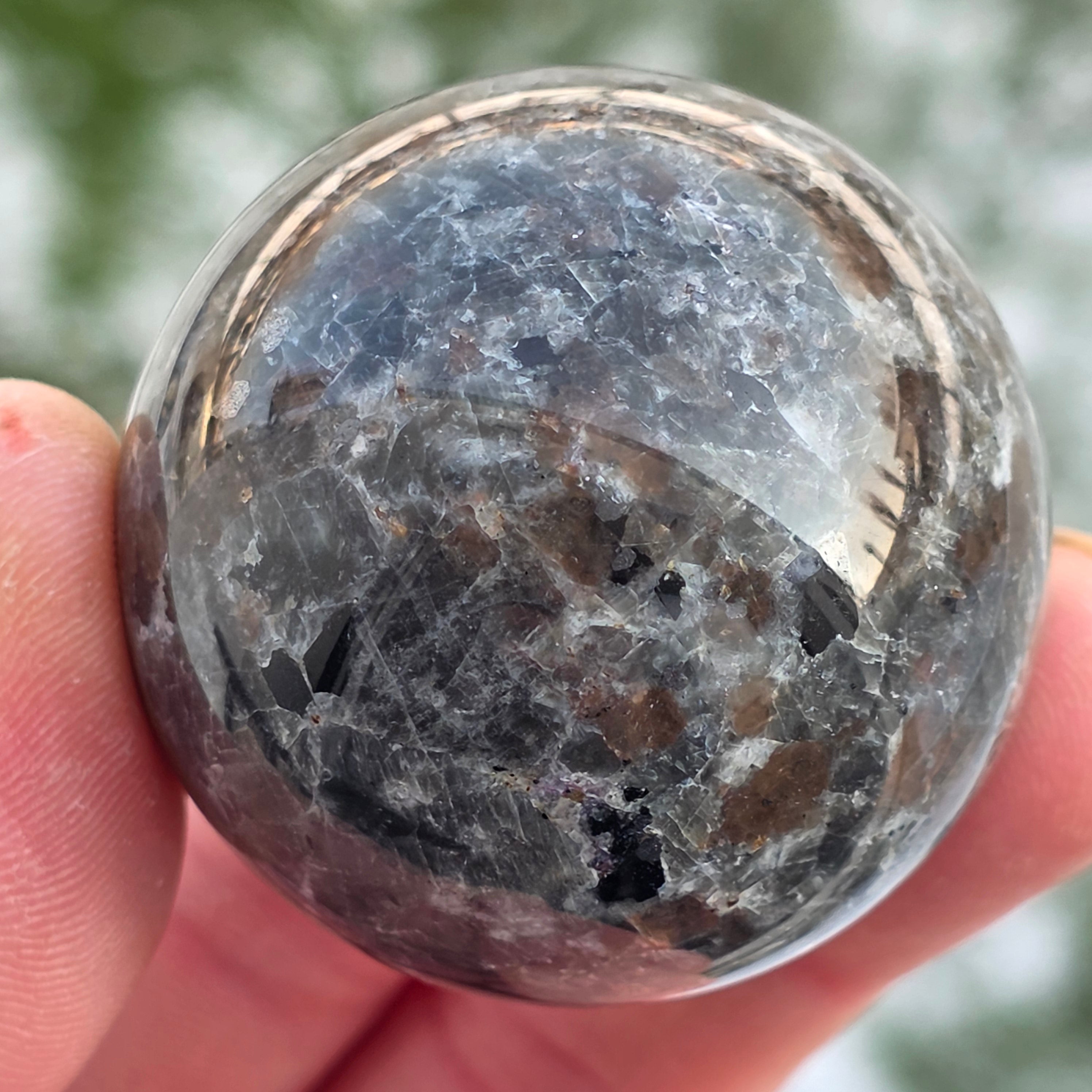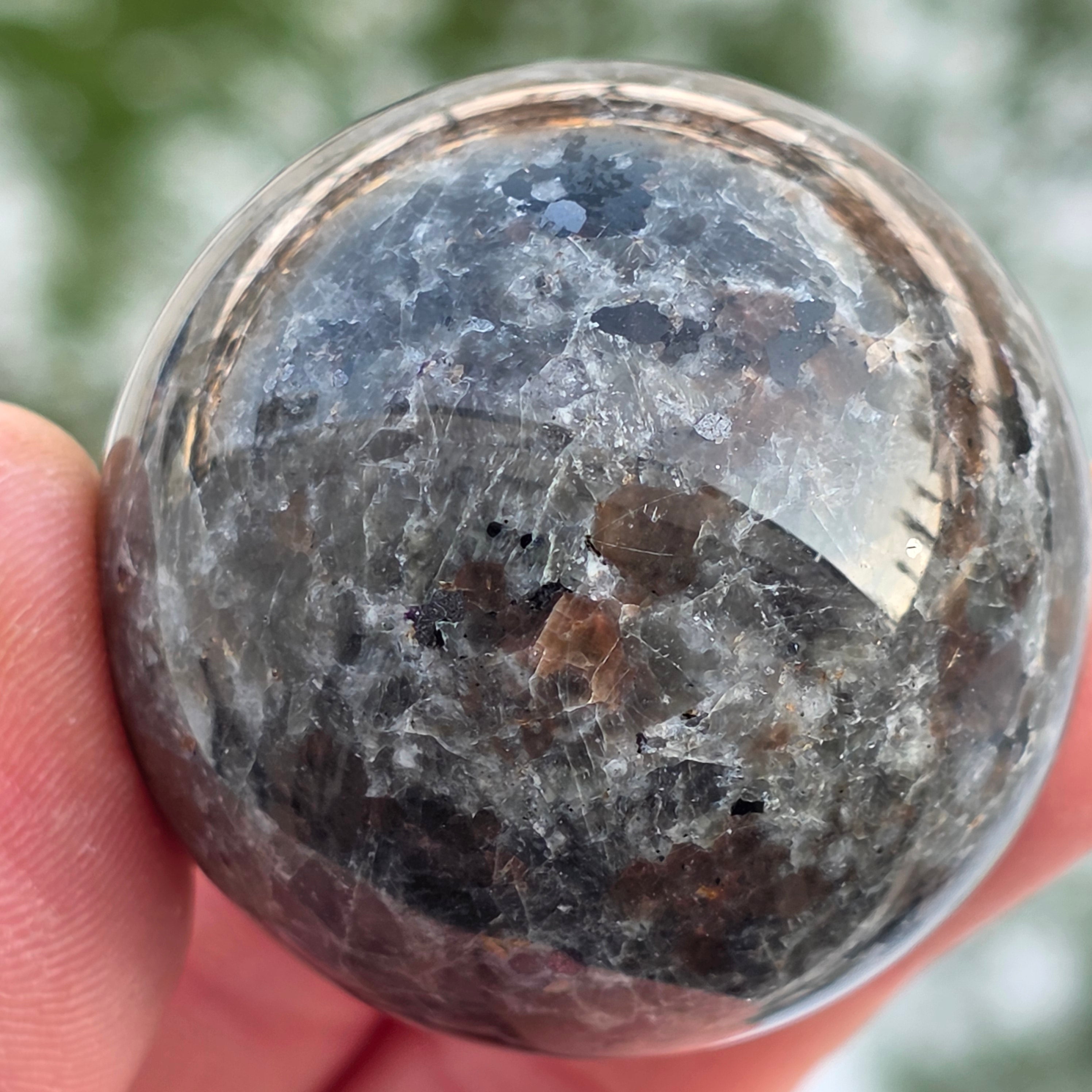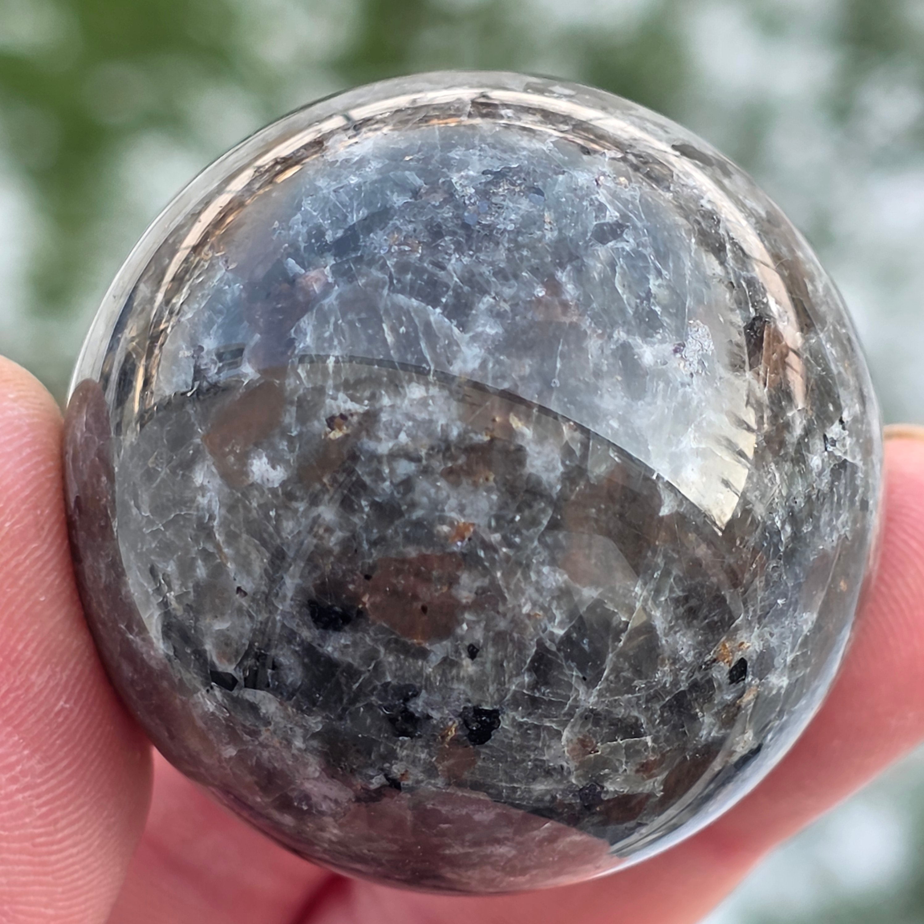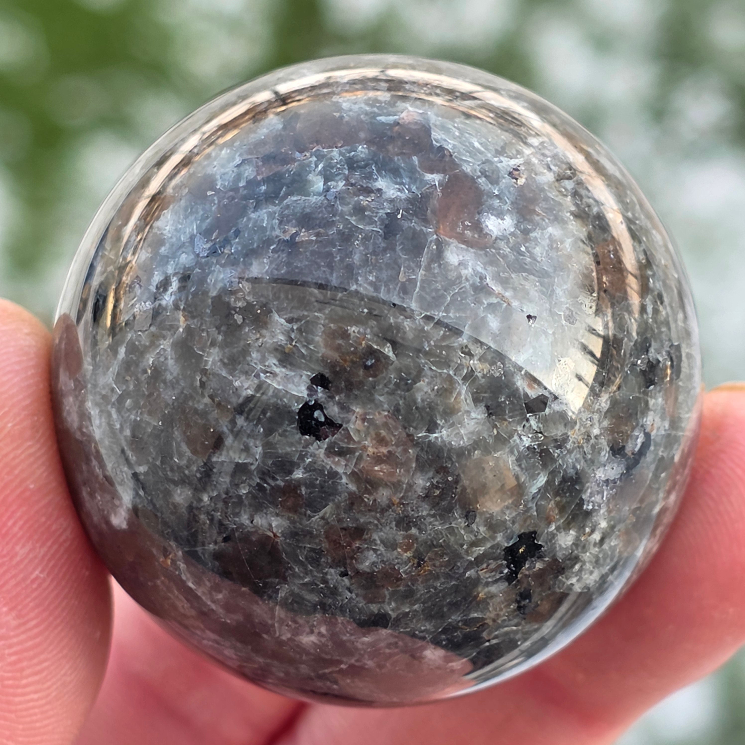 La esfera de yooperlita se asocia con la claridad emocional y la expresión de la verdad interior, siendo conocida por su vínculo con la conciencia y el descubrimiento de cosas ocultas. La forma esférica amplifica la idea de equilibrio y coherencia, fomentando una relación más sincera con las propias emociones y reacciones.