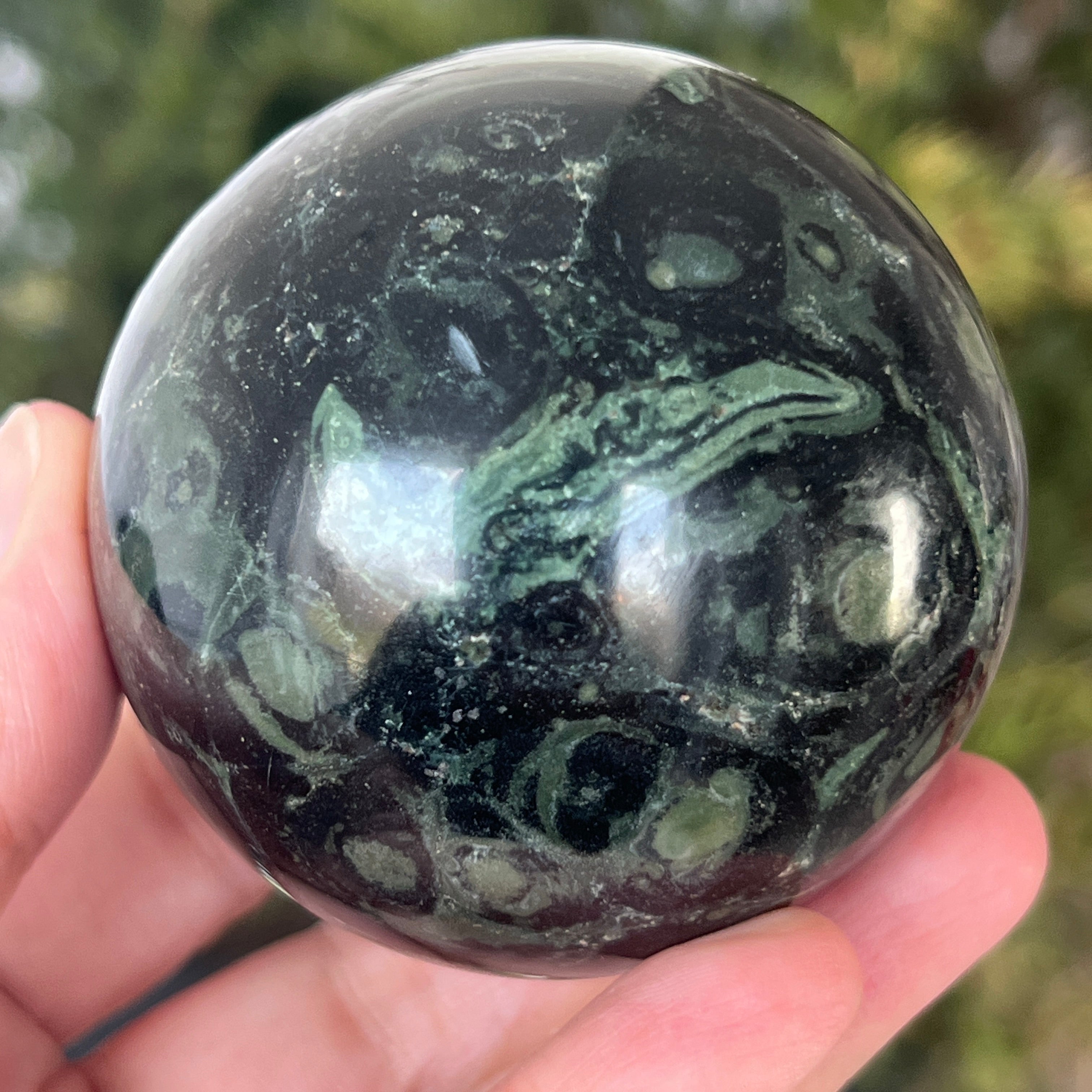 Kambaba Jasper, también conocido como Kambala Jasper, es una variedad de jaspe de origen volcánico. Está formado por una combinación de cristales verdes y negros, creando un patrón bonito y distintivo. Lleva el nombre de la región de Kambaba de Madagascar, donde se encuentra comúnmente.