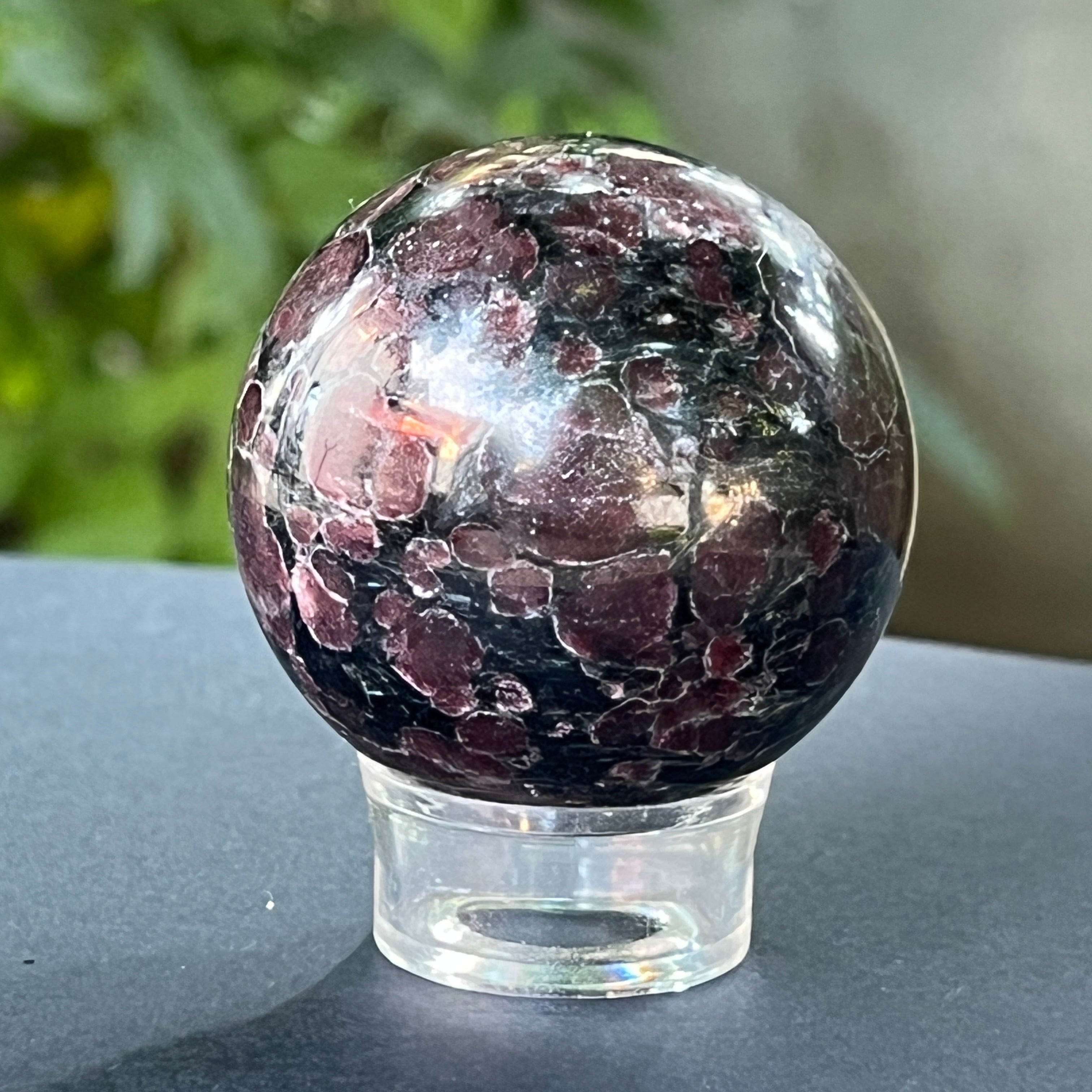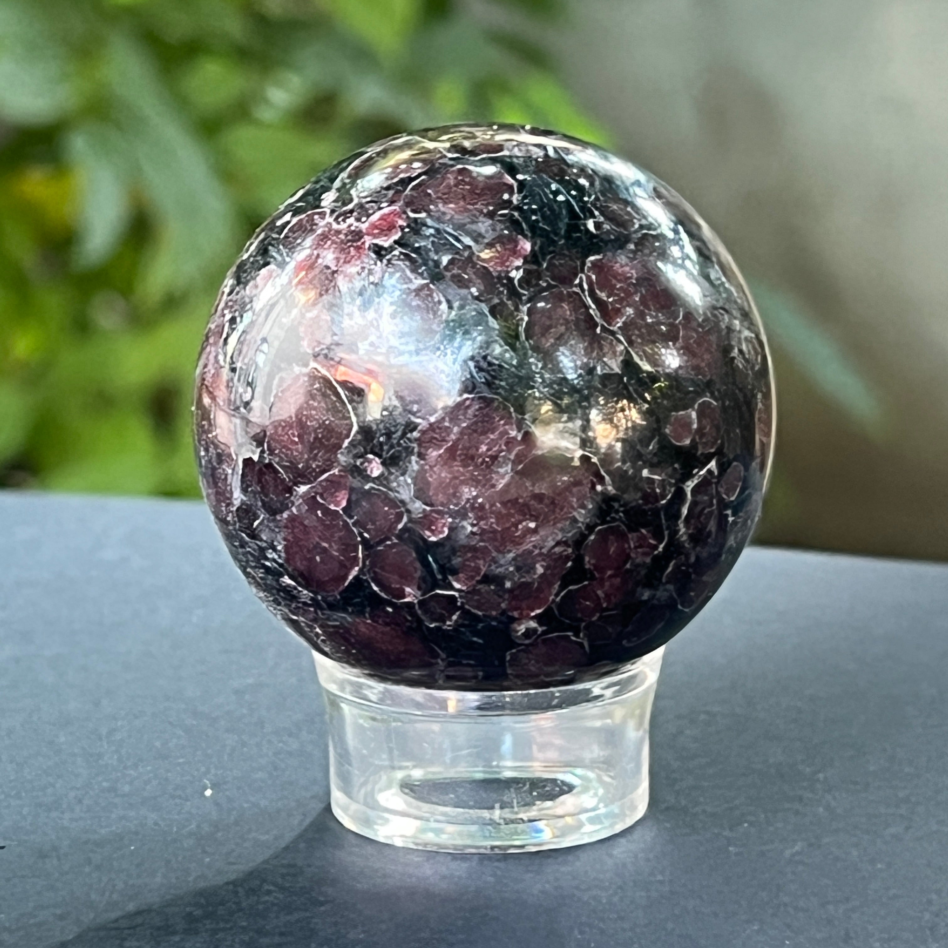 Descriere - ¡Esfera turmalina negra con modelo granate 5