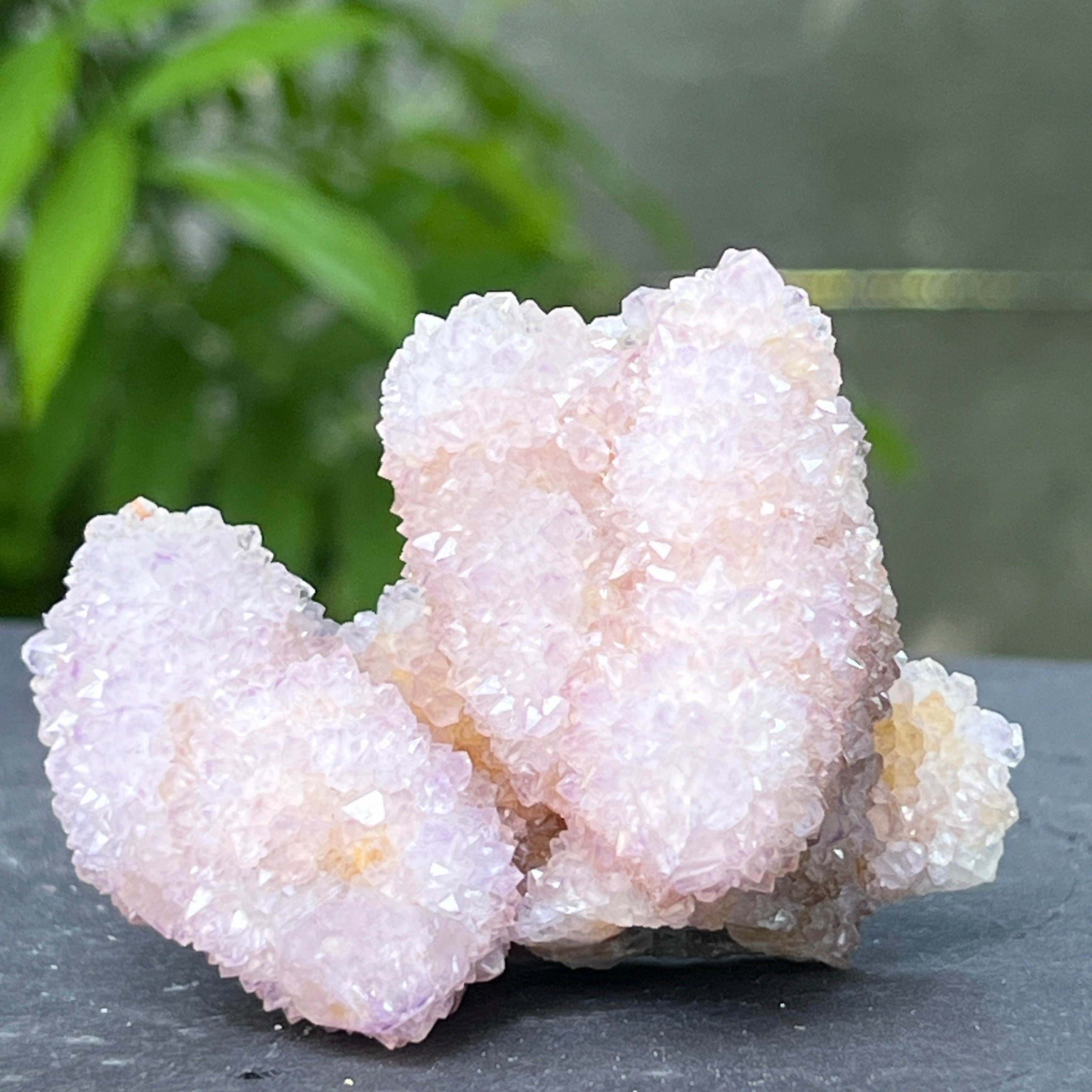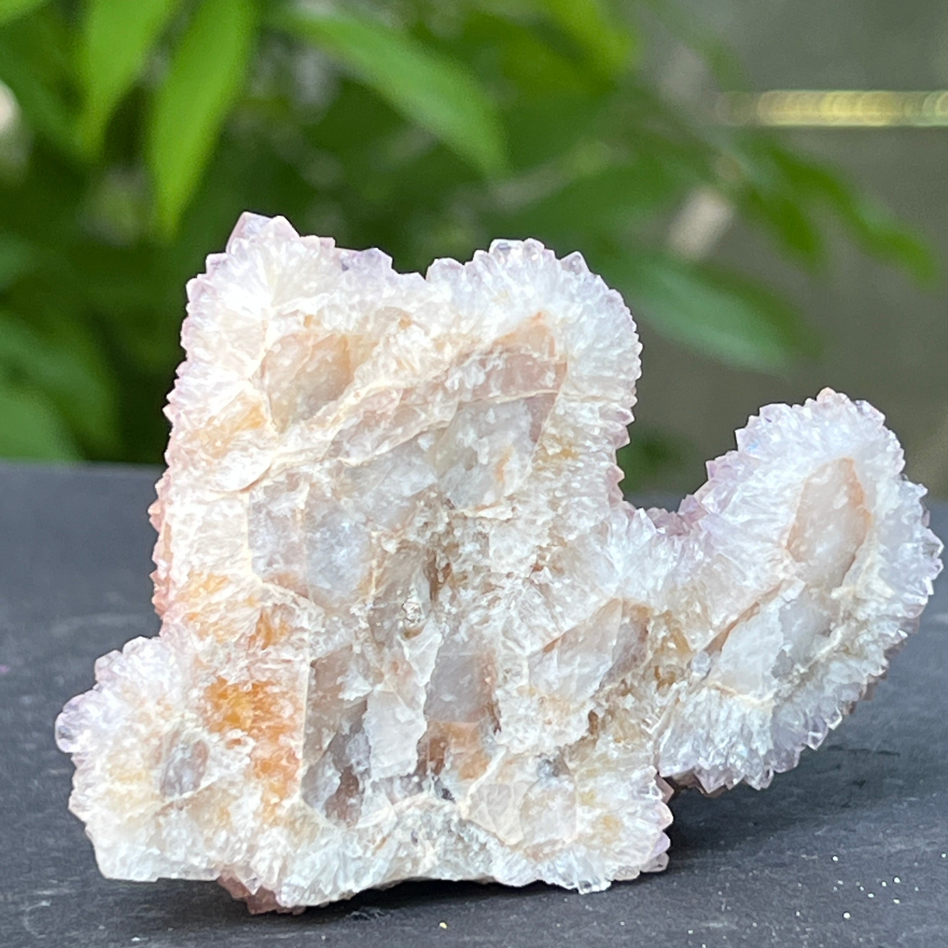 En las profundidades de la tierra africana, donde el silencio de las montañas esconde historias no contadas, nace un cristal de belleza inusual: el Cuarzo Espíritu Amatista, también conocido como "Cactus Quartz". Esta maravilla mineralógica parece envuelta en un aura mística: una sola base sólida, cubierta con miles de puntas delicadas, como una comunidad de cristales unida en un baile de luz.