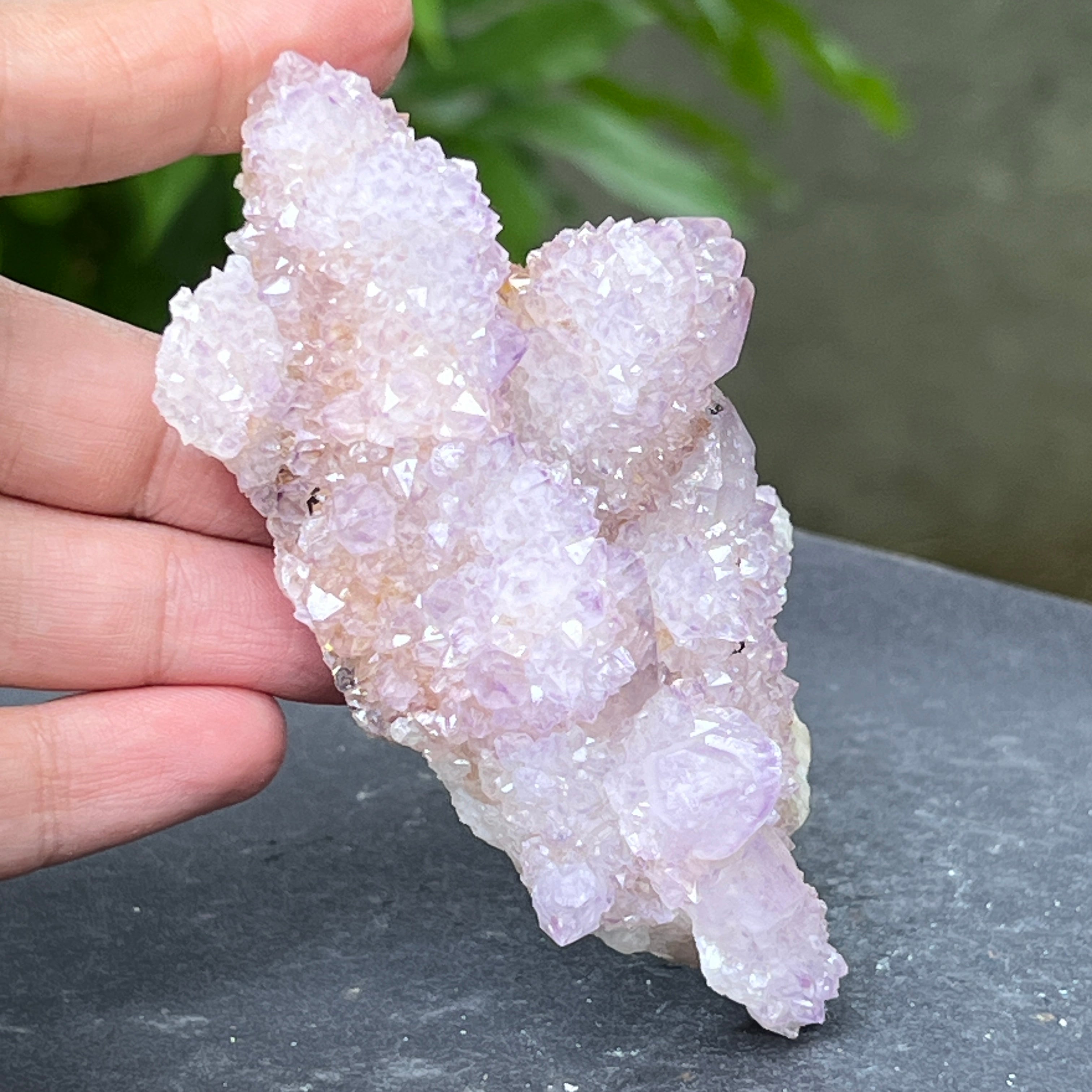En las profundidades de la tierra africana, donde el silencio de las montañas oculta historias no contadas, nace un cristal de una belleza inusual: el Cuarzo Espíritu Amatista, también conocido como “Cactus Quartz”. Esta maravilla mineralógica parece envuelta en un aura mística: una única base sólida cubierta con miles de puntas delicadas, como una comunidad de cristales unidos en un baile de luz.