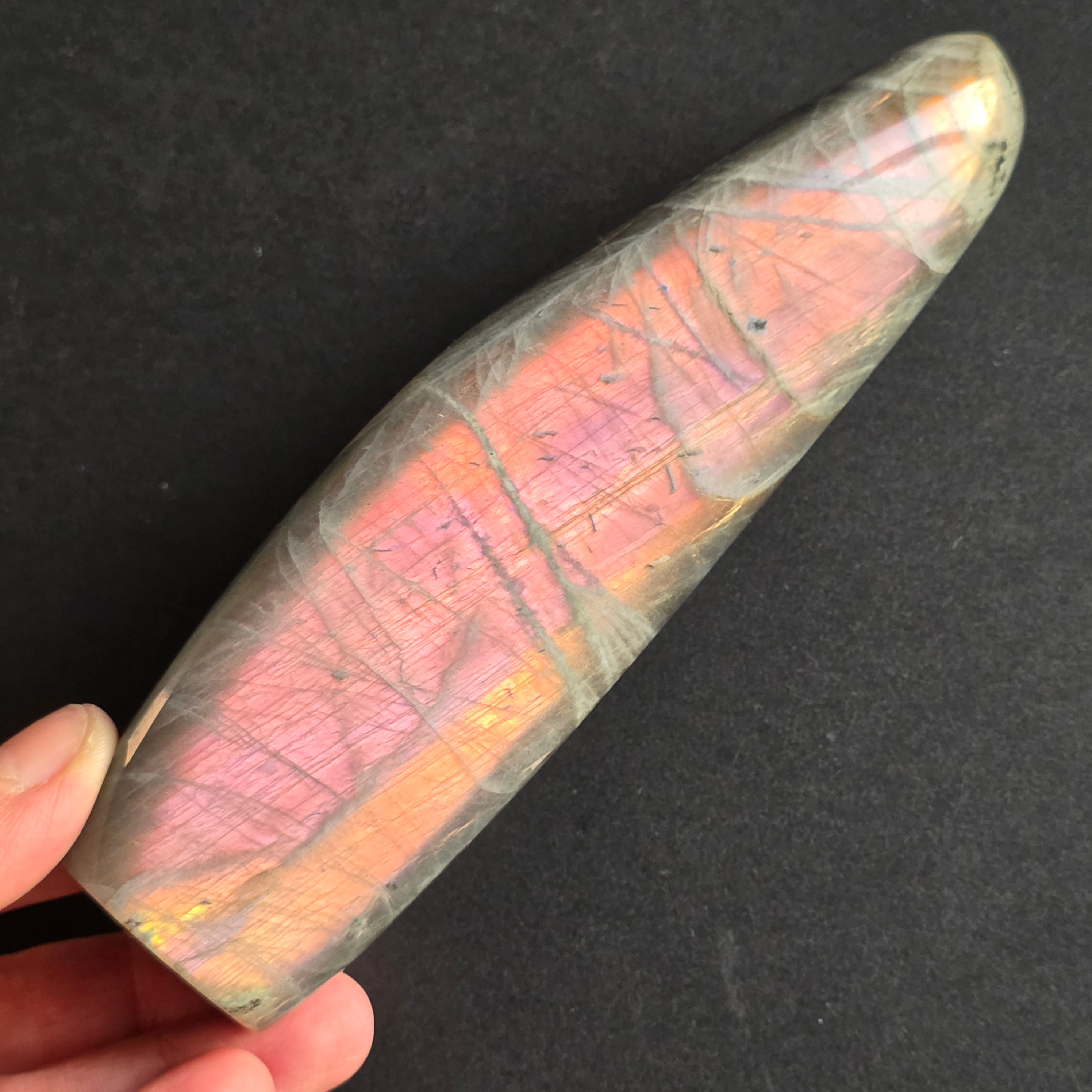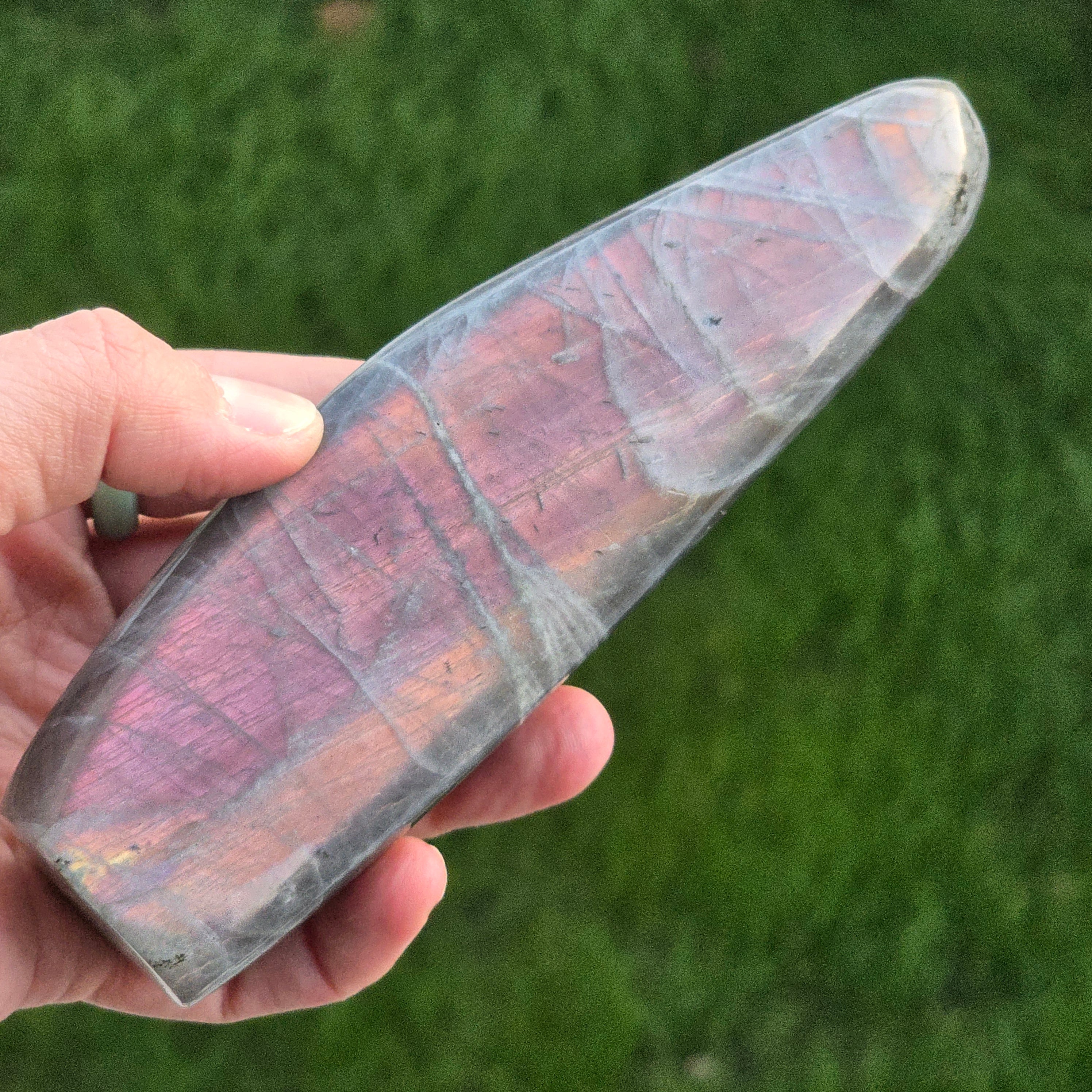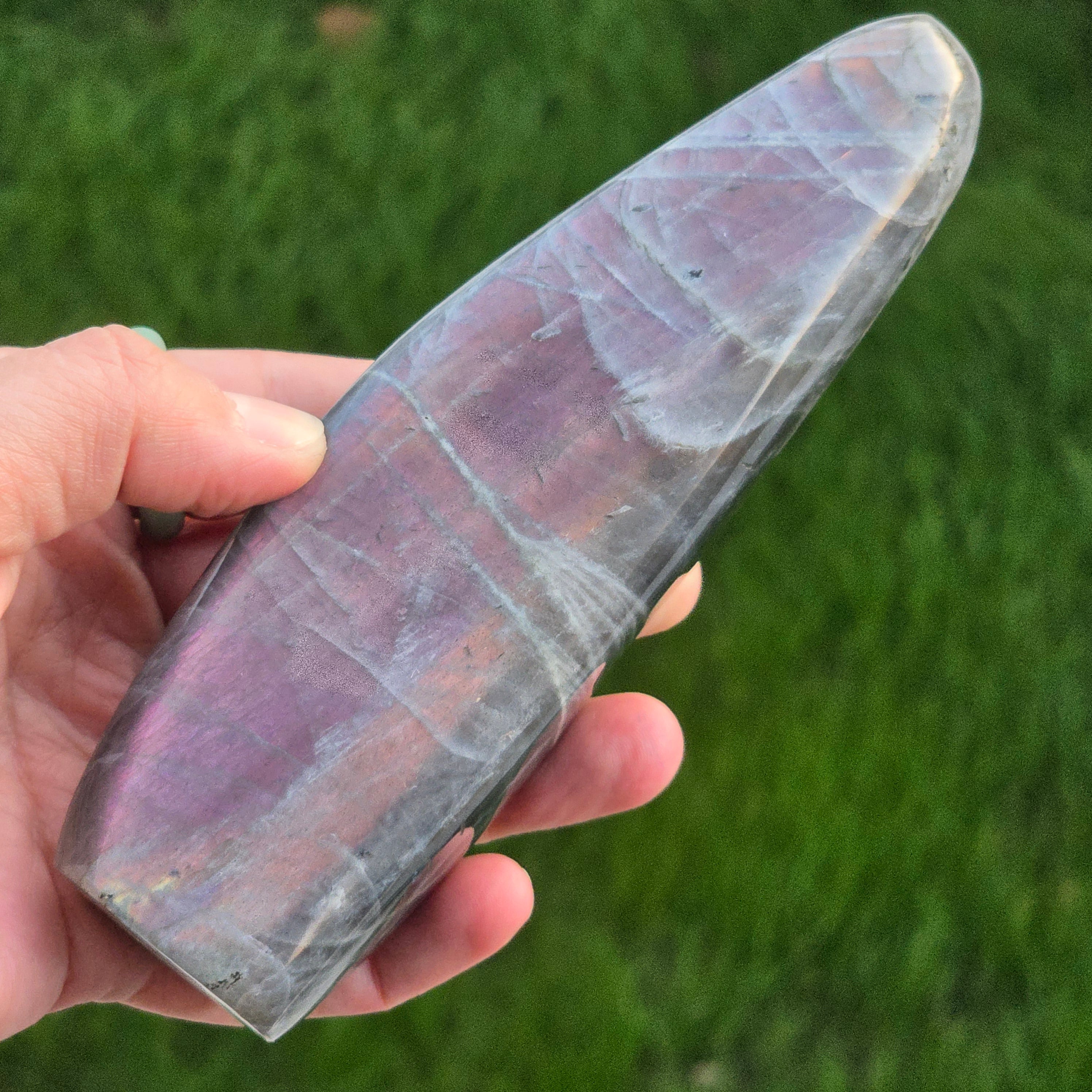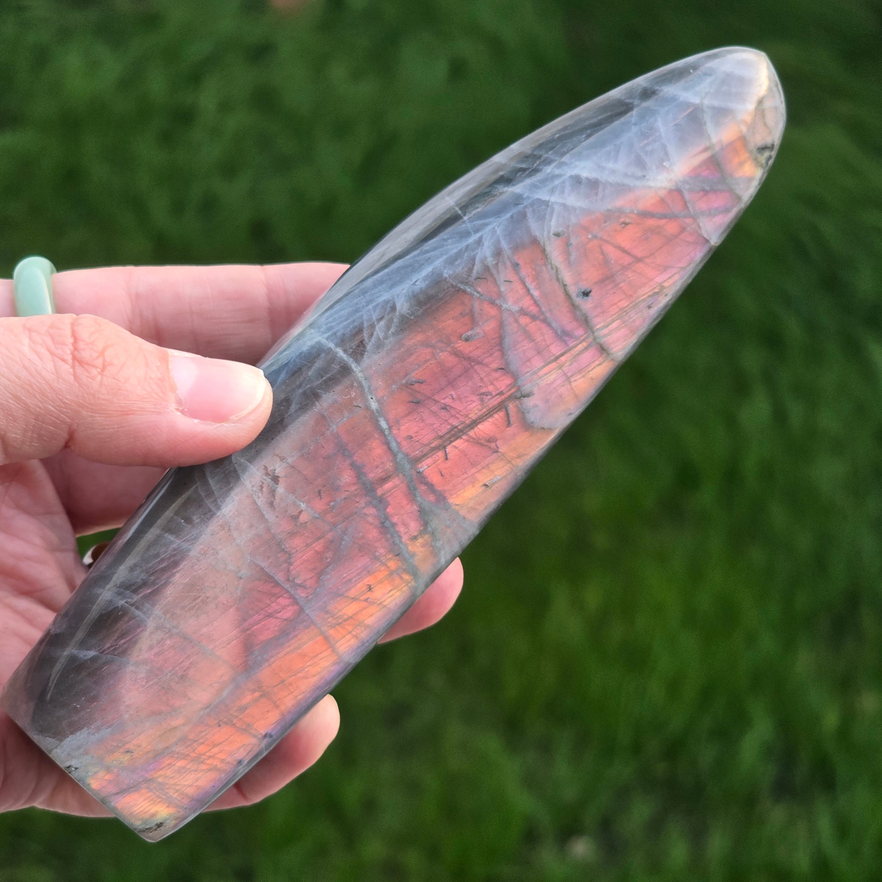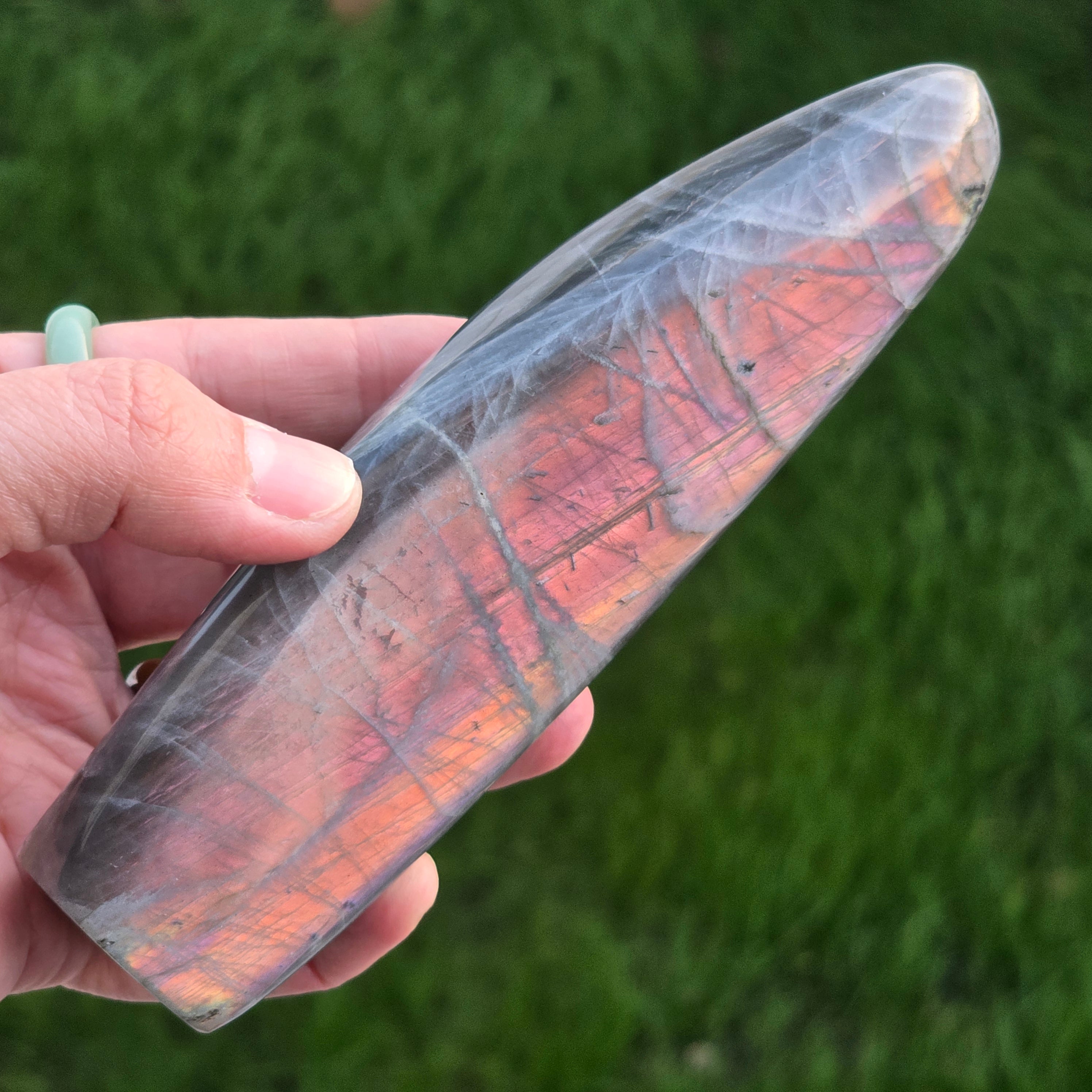 La labradorita es considerada una piedra de clarividencia e intuición, es una piedra indispensable en la colección. Esto actúa como un escudo protector, nos ayuda a recordar lo fuertes que somos.