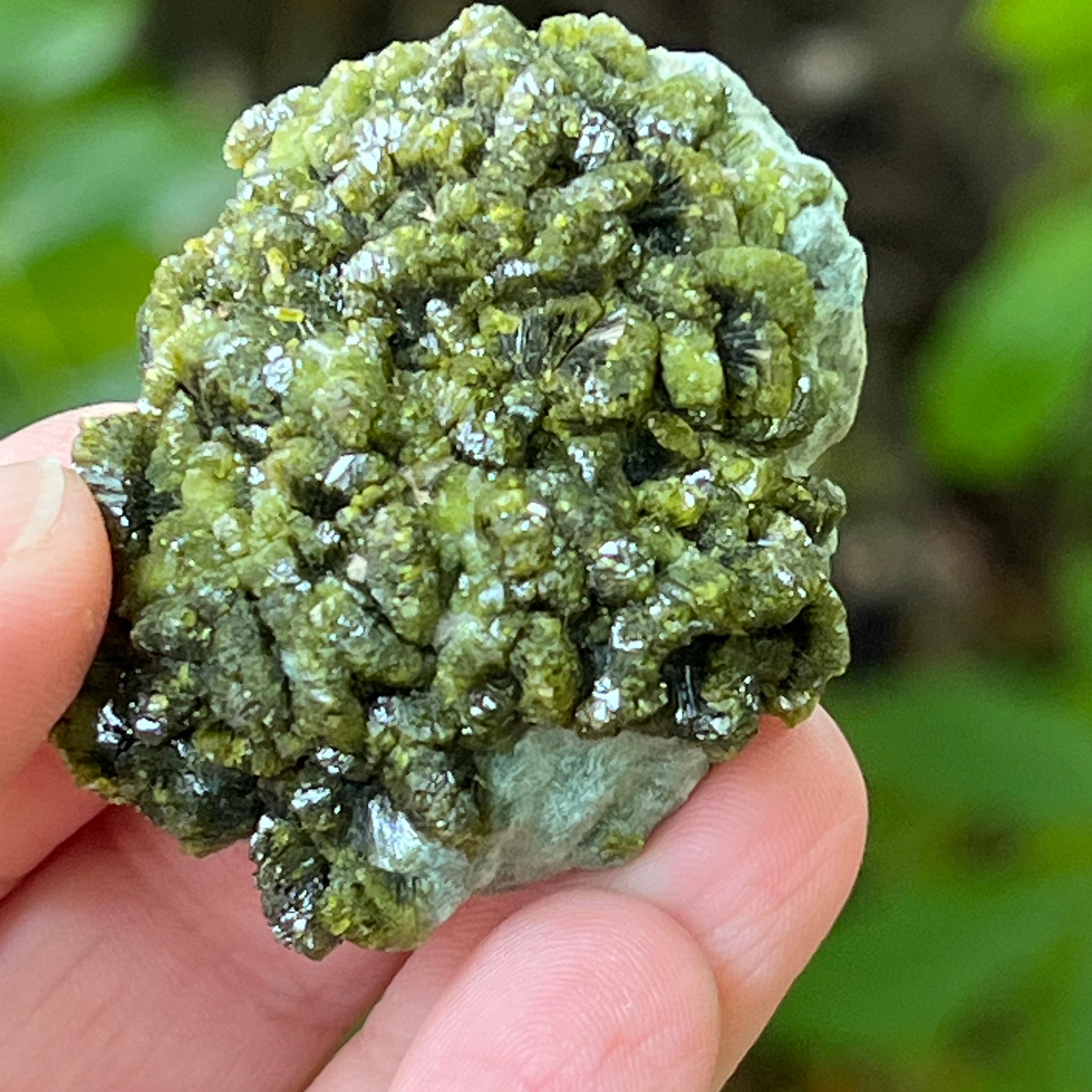 Su nombre proviene del griego epidosis, que significa "suplemento" o "crecimiento", aludiendo a la forma alargada de sus cristales. Y, en efecto, el epidoto nos enseña sobre el crecimiento : sobre esa transformación lenta y suave que nos ayuda a superar viejos límites y a abrazar una nueva perspectiva de la vida.