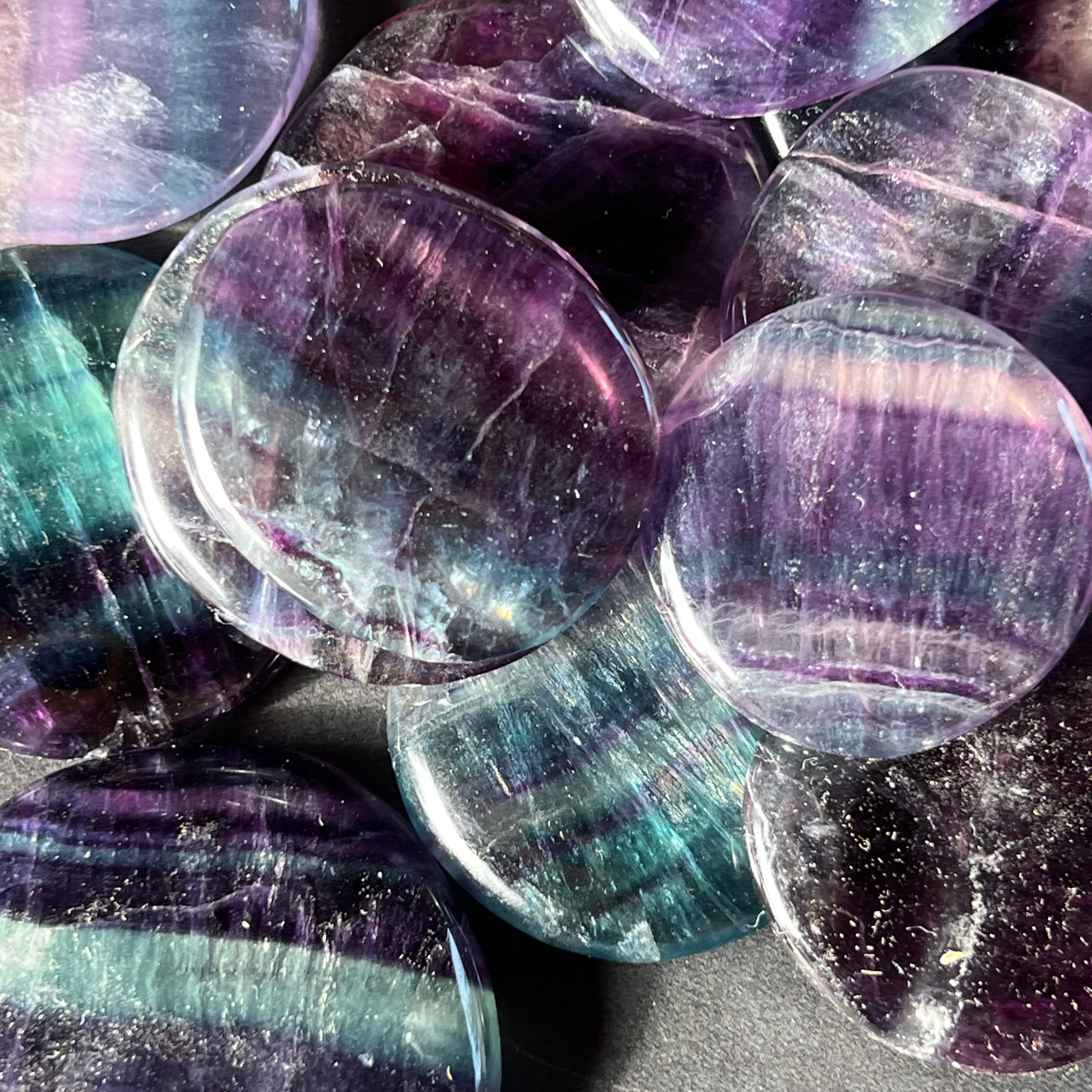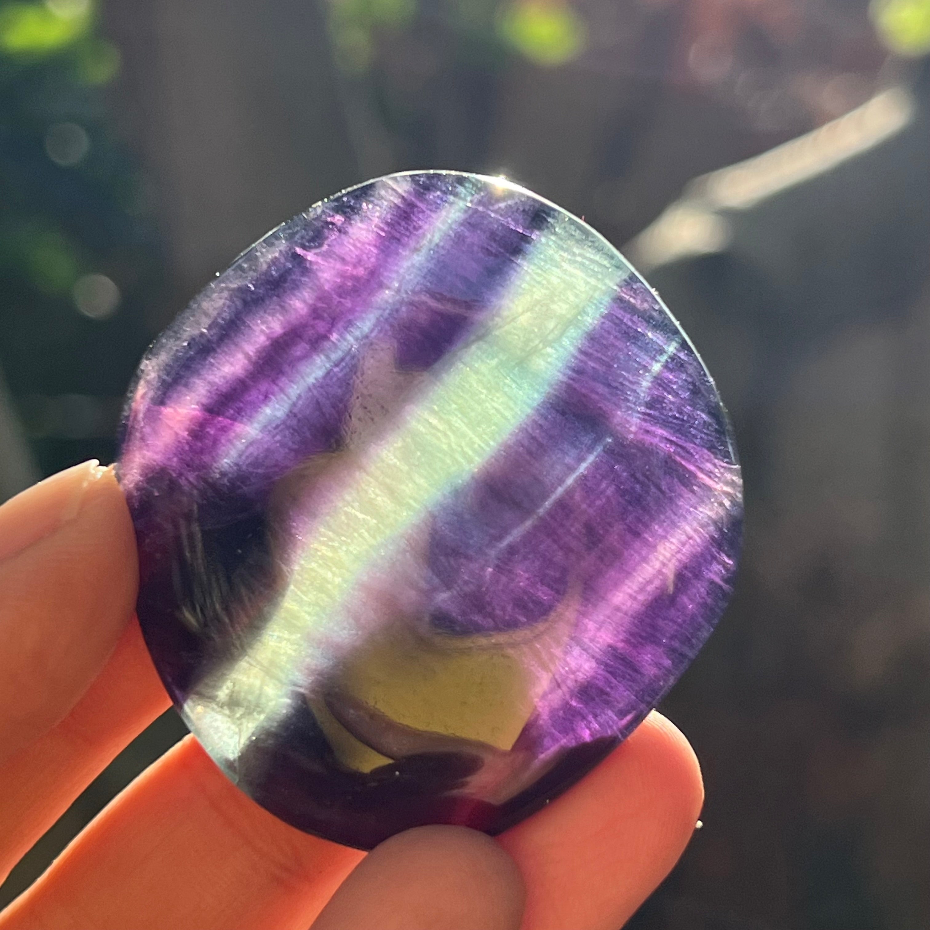 La fluorita arcoíris es una variedad fascinante de fluorita que presenta una mezcla de colores vibrantes, a menudo en capas distintas de morado, verde, azul, amarillo y, a veces, incoloro. Esta piedra es muy apreciada tanto por su belleza estética como por sus propiedades energéticas únicas.