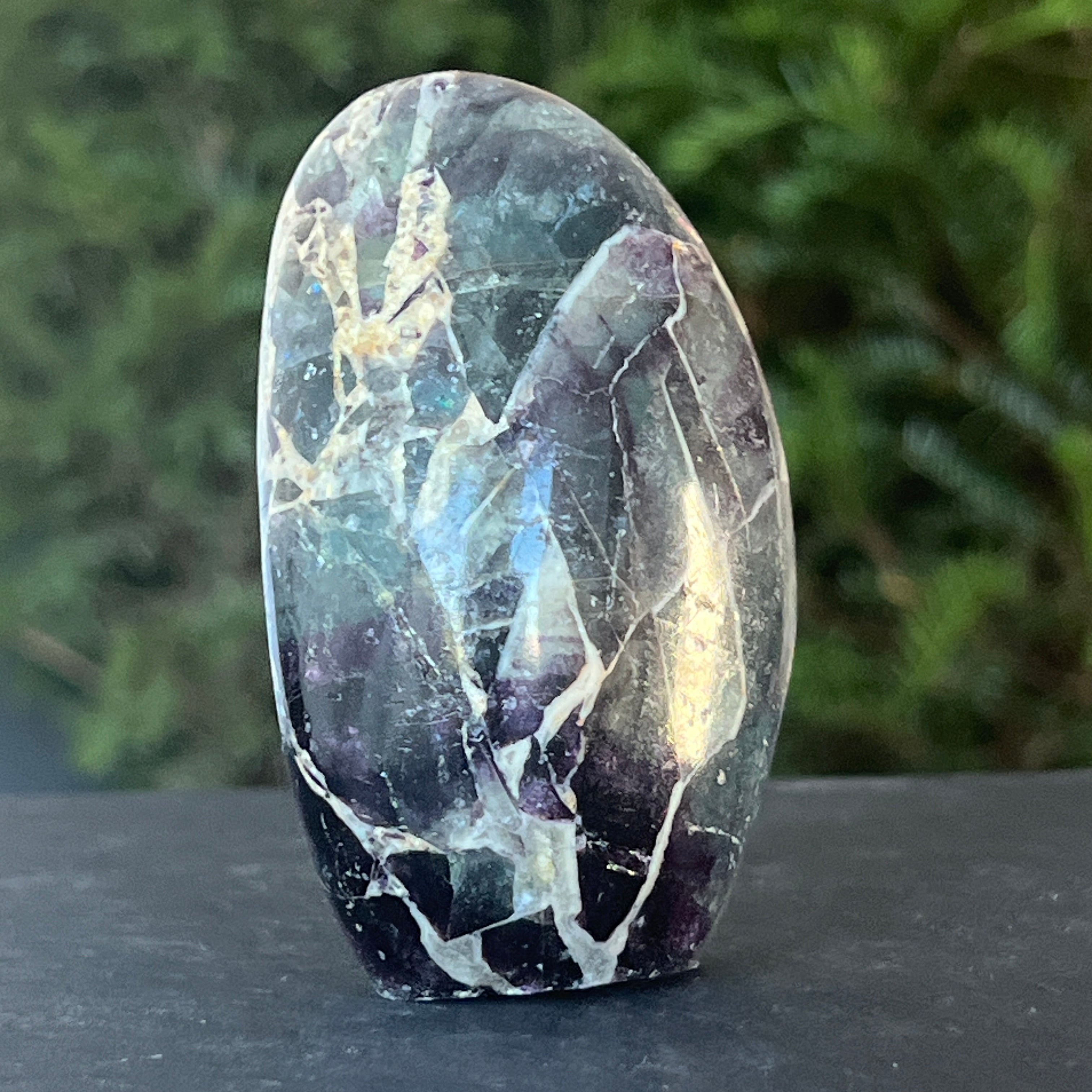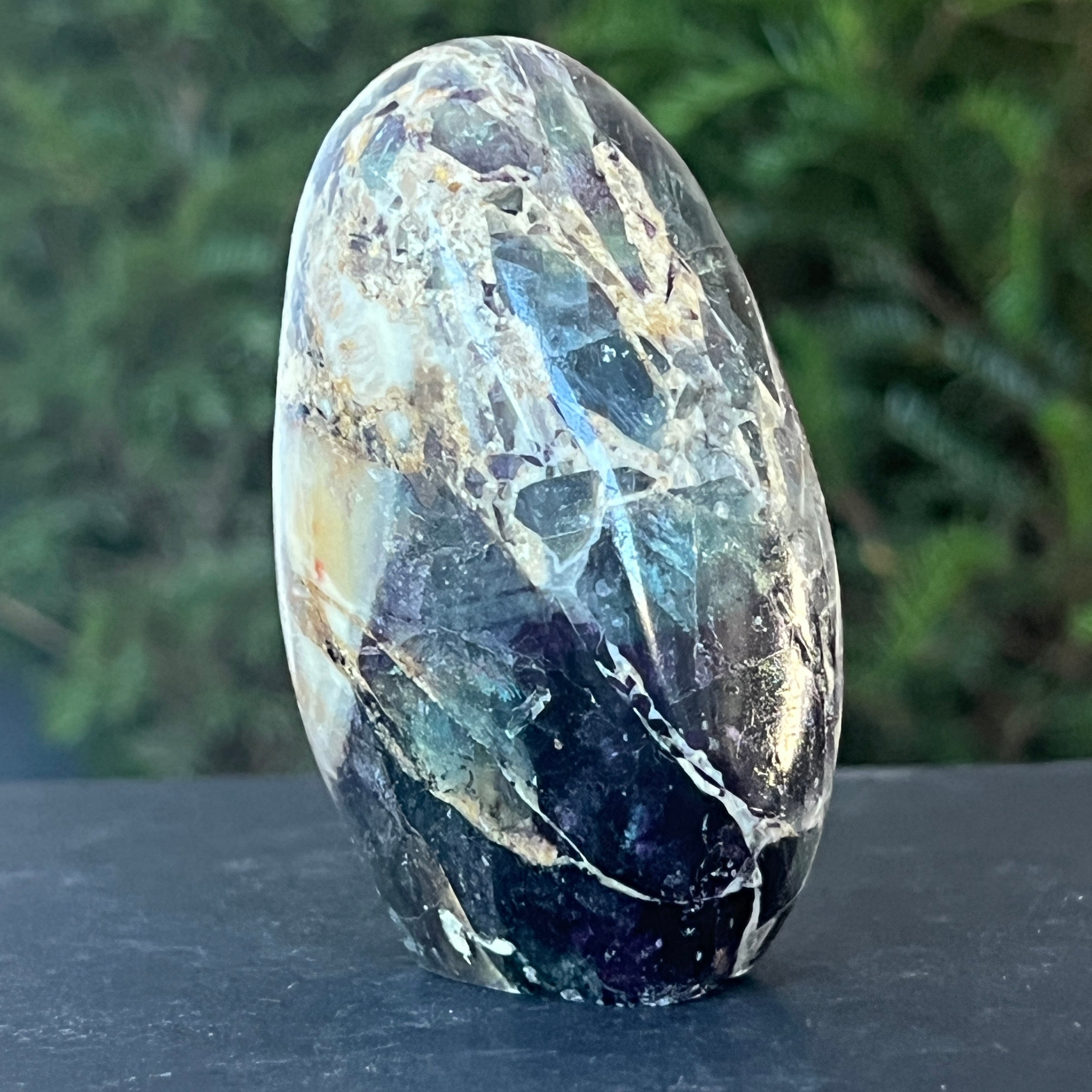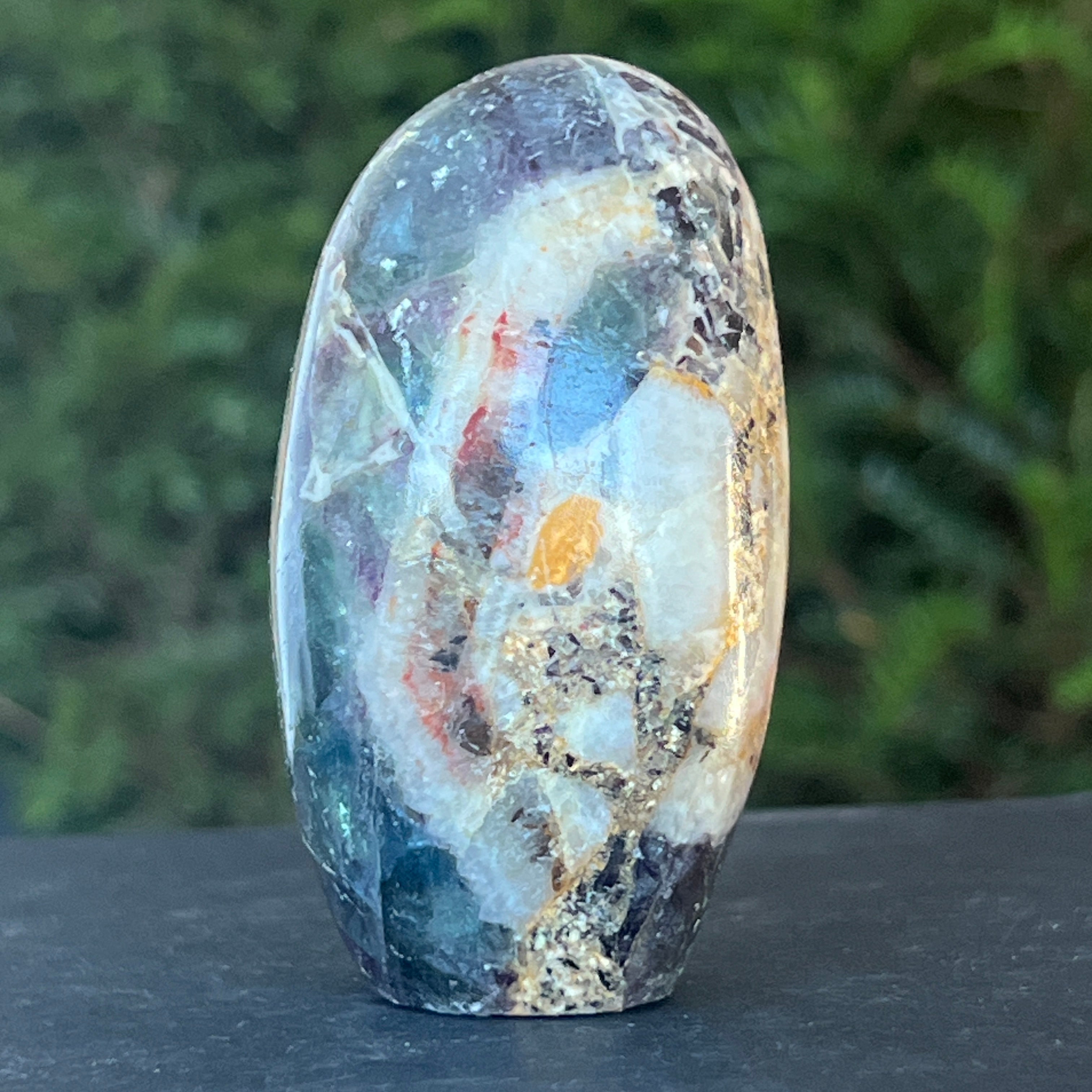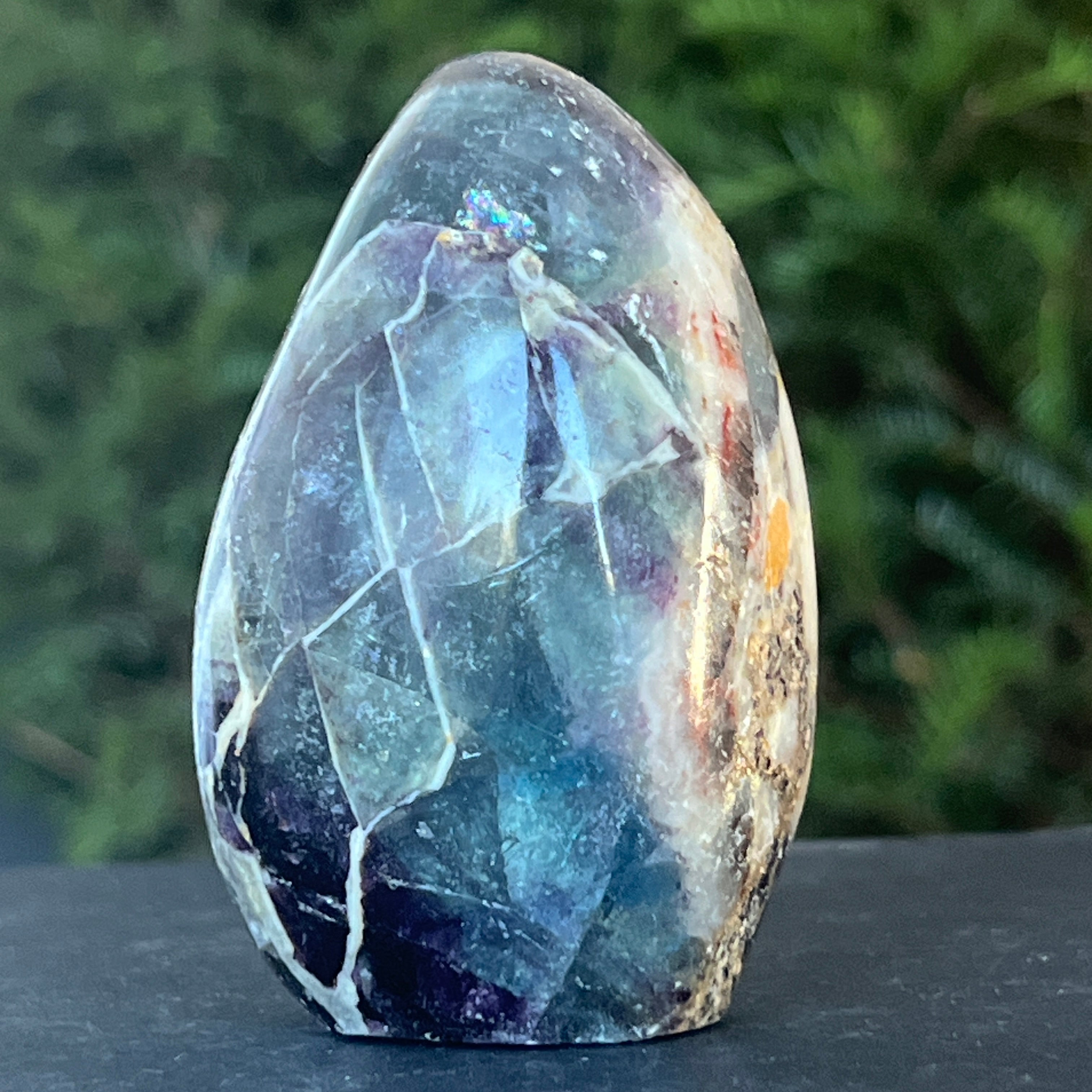 La fluorita arcoíris ayuda a equilibrar y armonizar la energía circundante y, a menudo, se utiliza para ver situaciones desde múltiples ángulos y ampliar nuestras perspectivas.