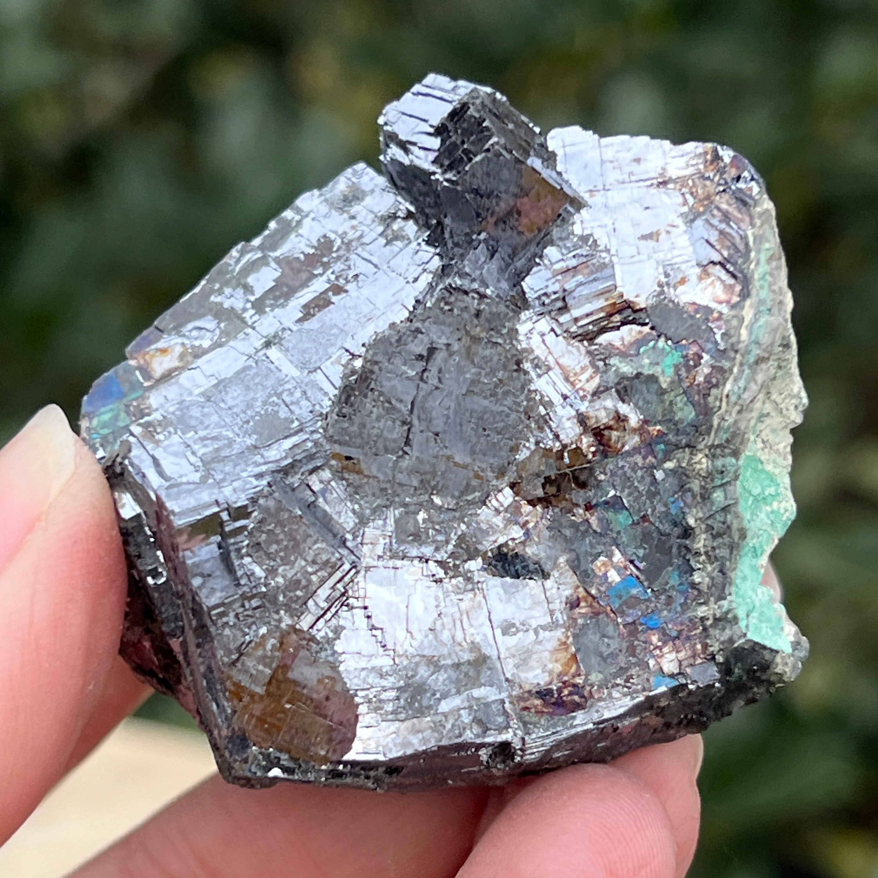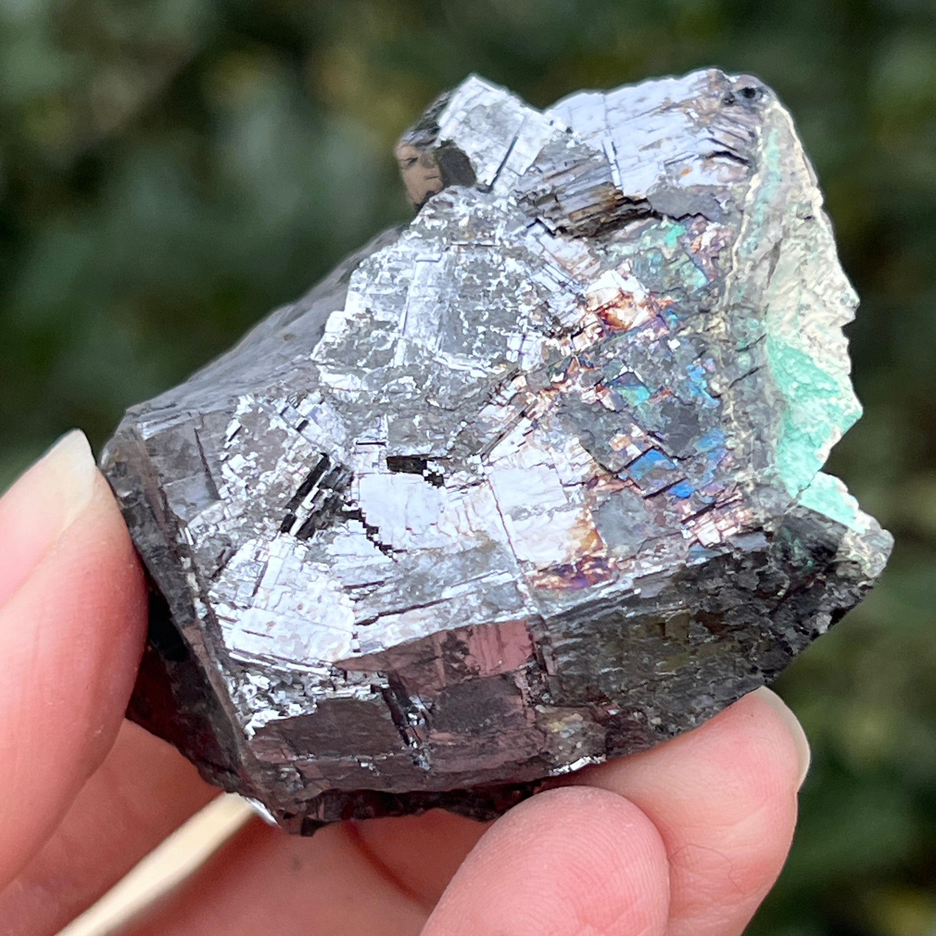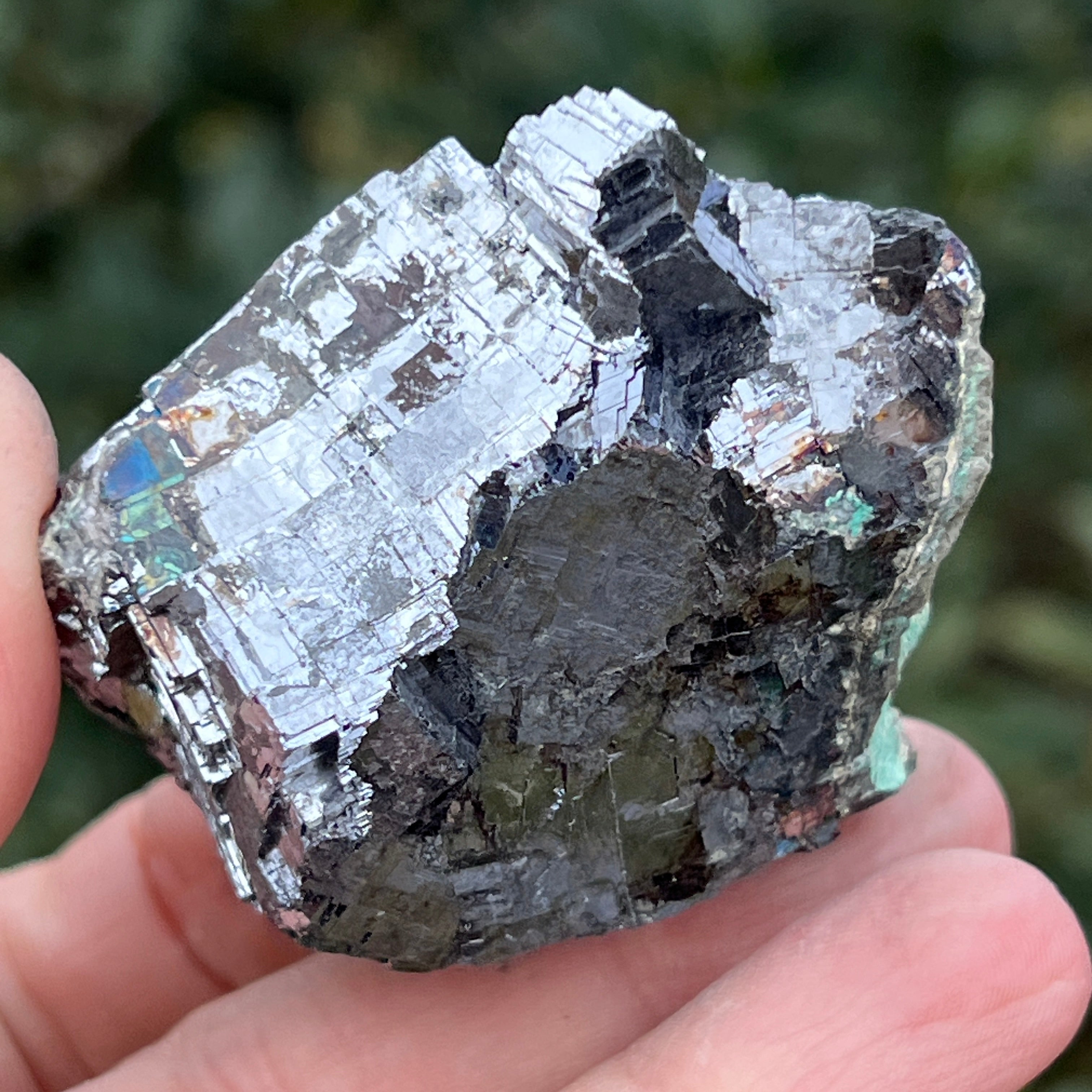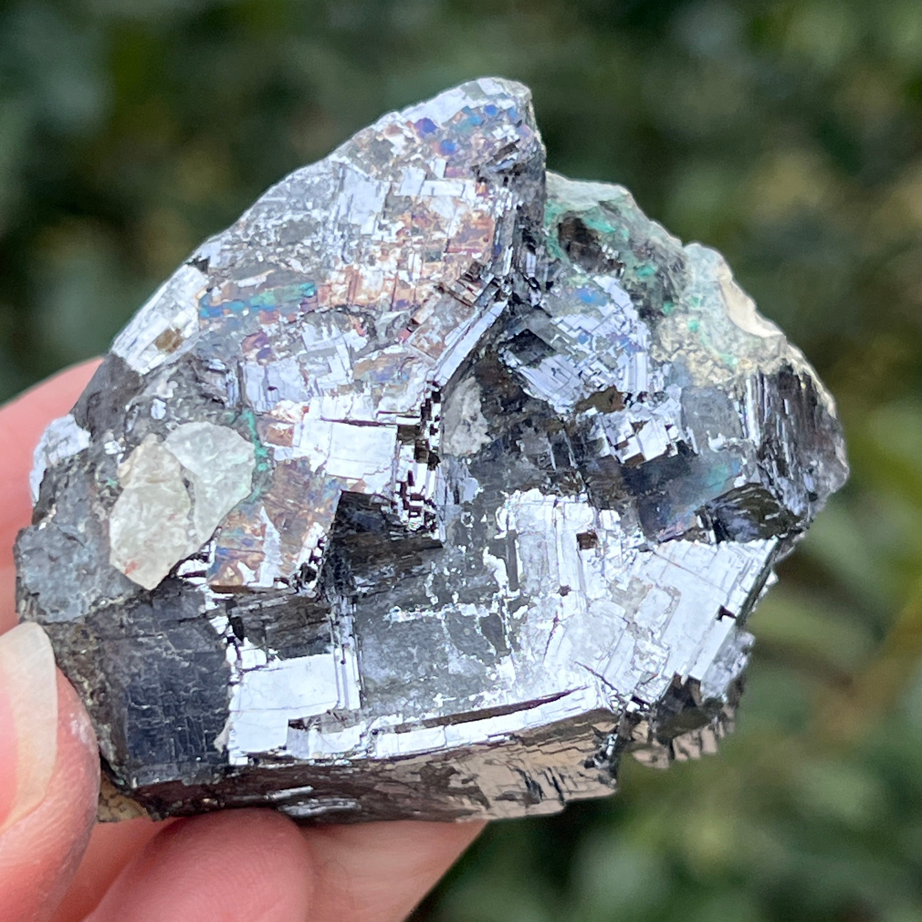 La galena plateada es un mineral espectacular, reconocido por su intenso brillo metálico y su estructura cúbica perfecta. Este sulfuro de plomo (PbS) es uno de los minerales naturales más densos y puede contener trazas valiosas de plata.