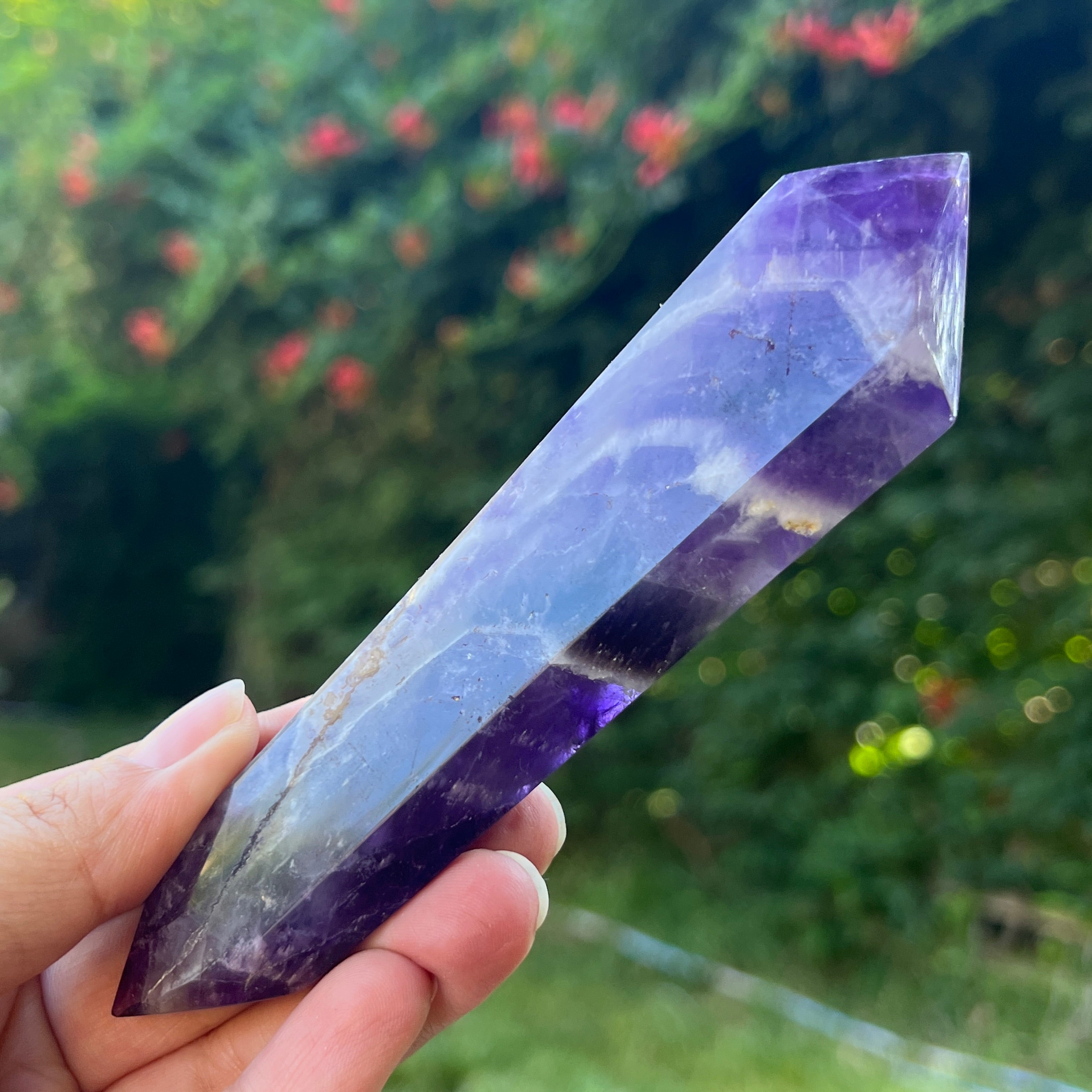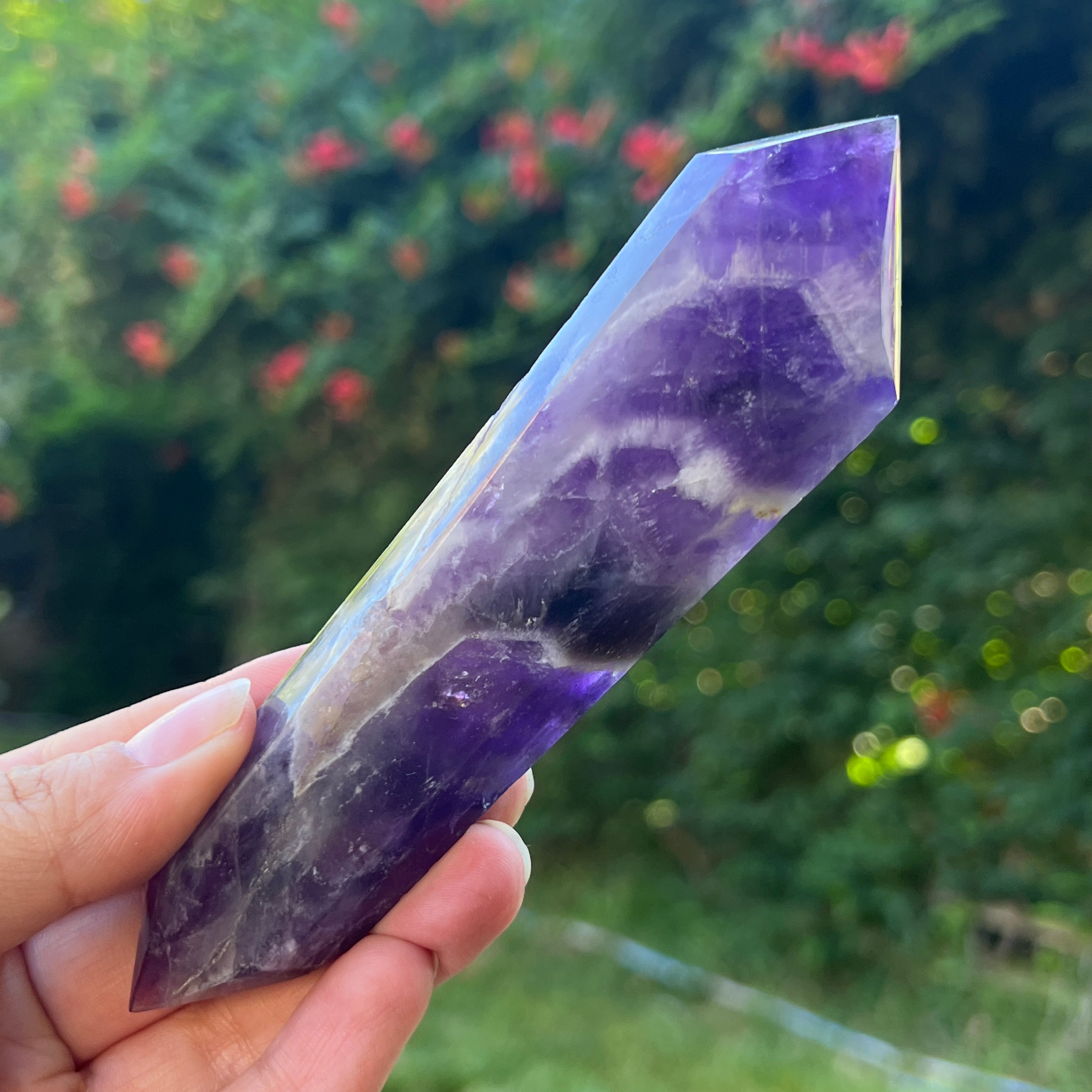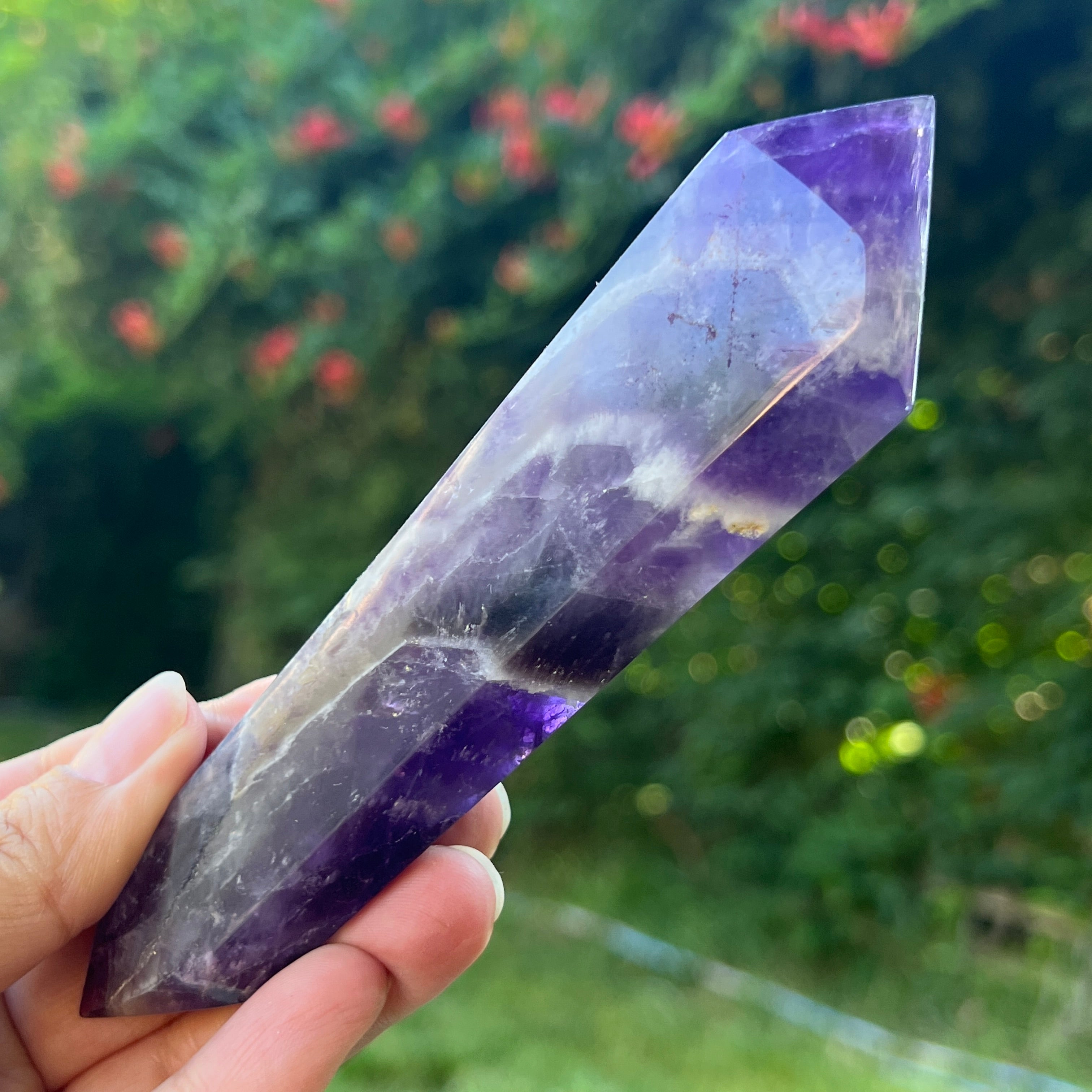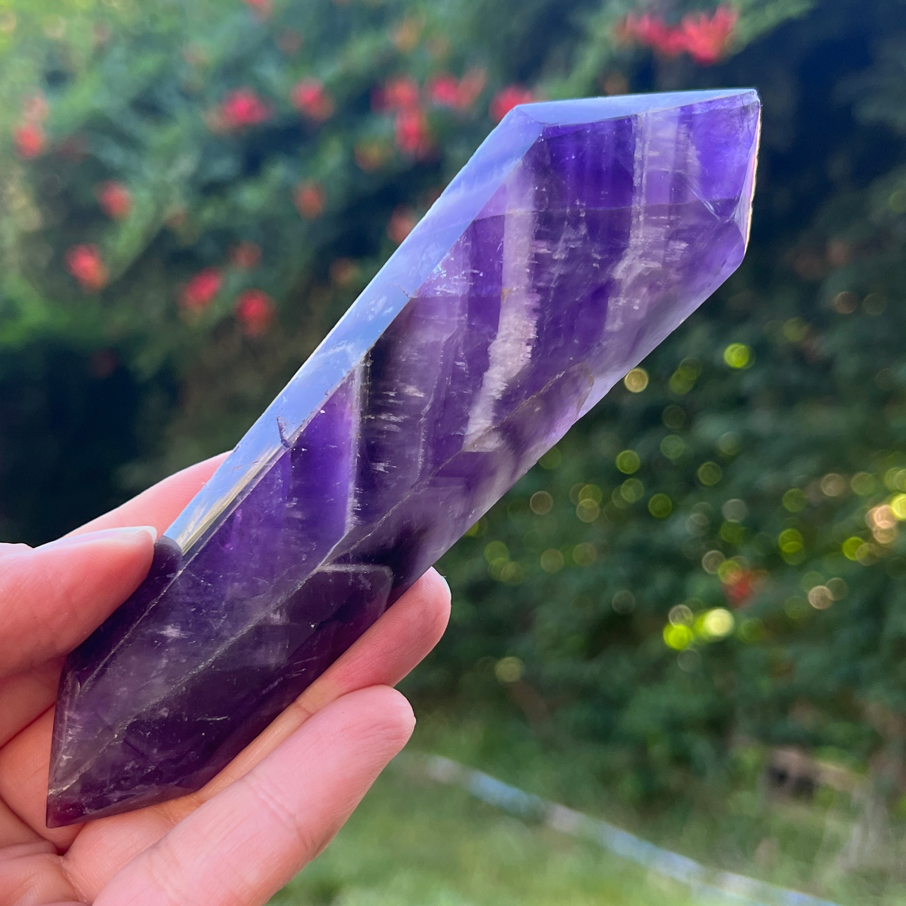 La amatista Chevron es reconocida por sus asociaciones con los chakras de la corona y del tercer ojo, lo que aumenta la intuición y la capacidad de tomar decisiones.