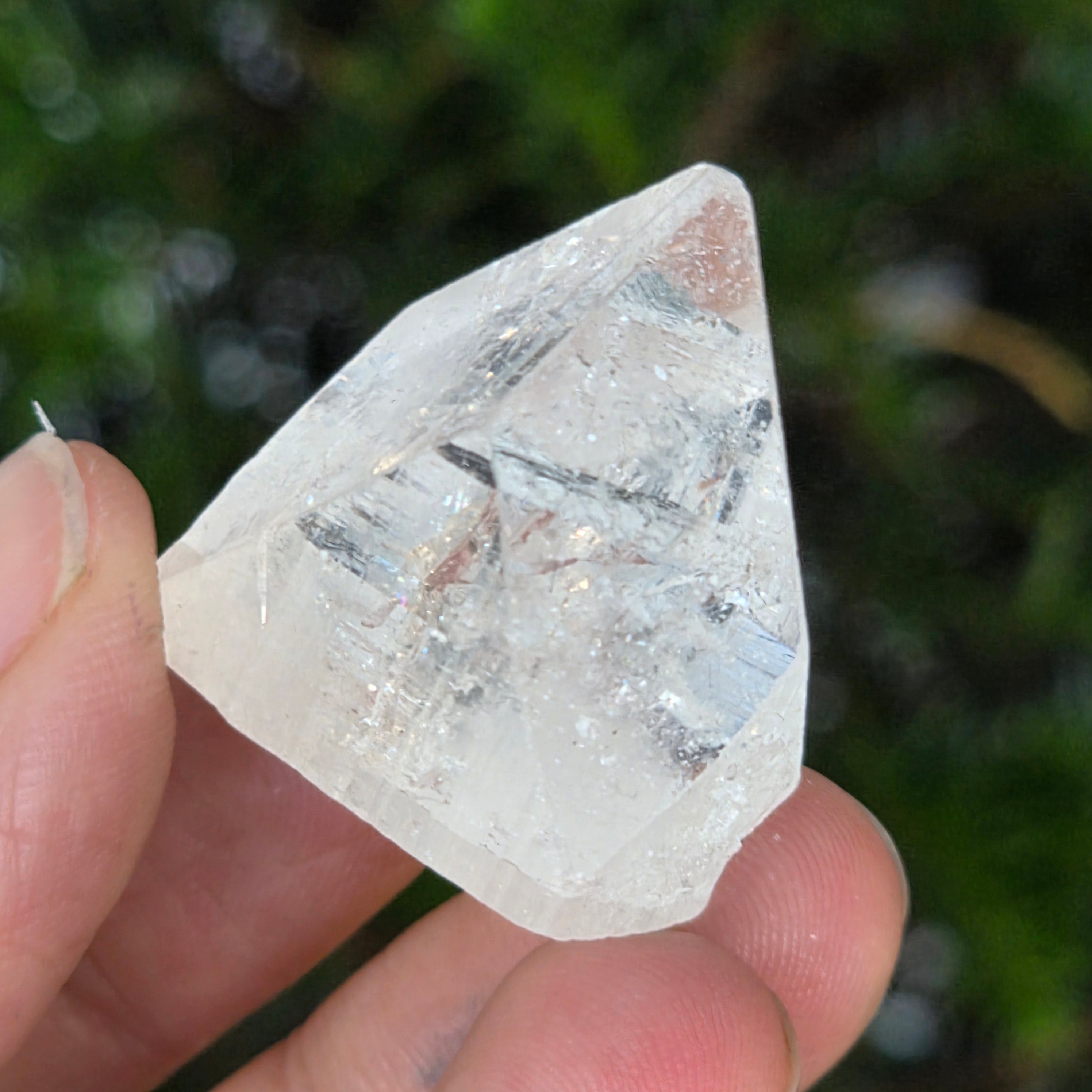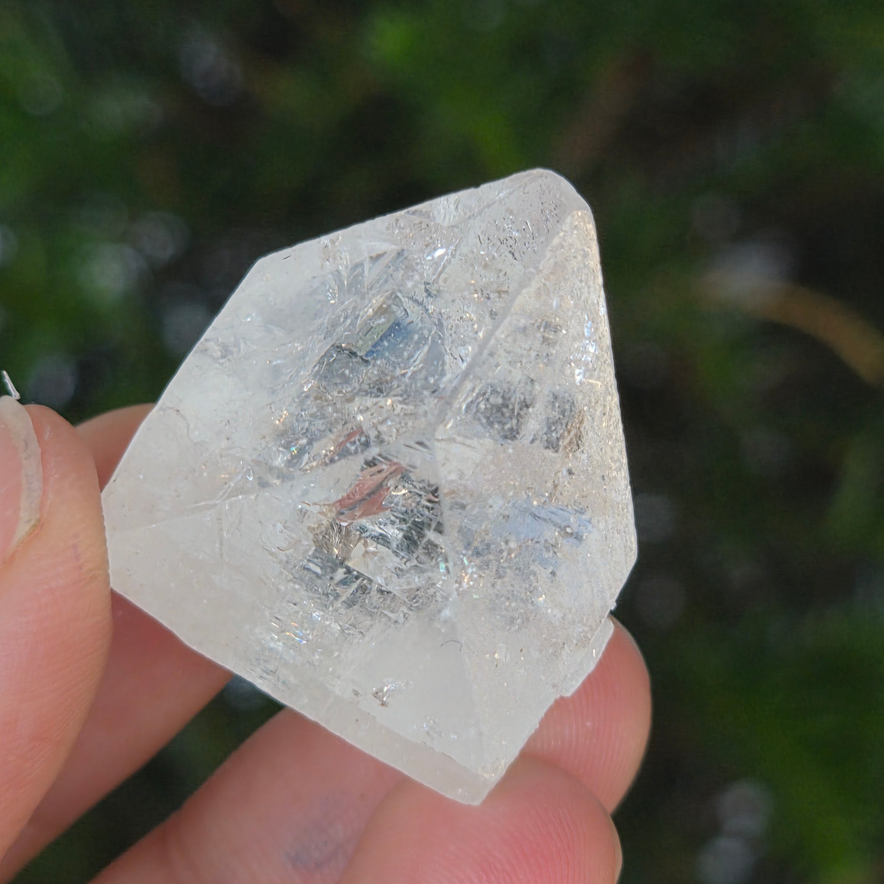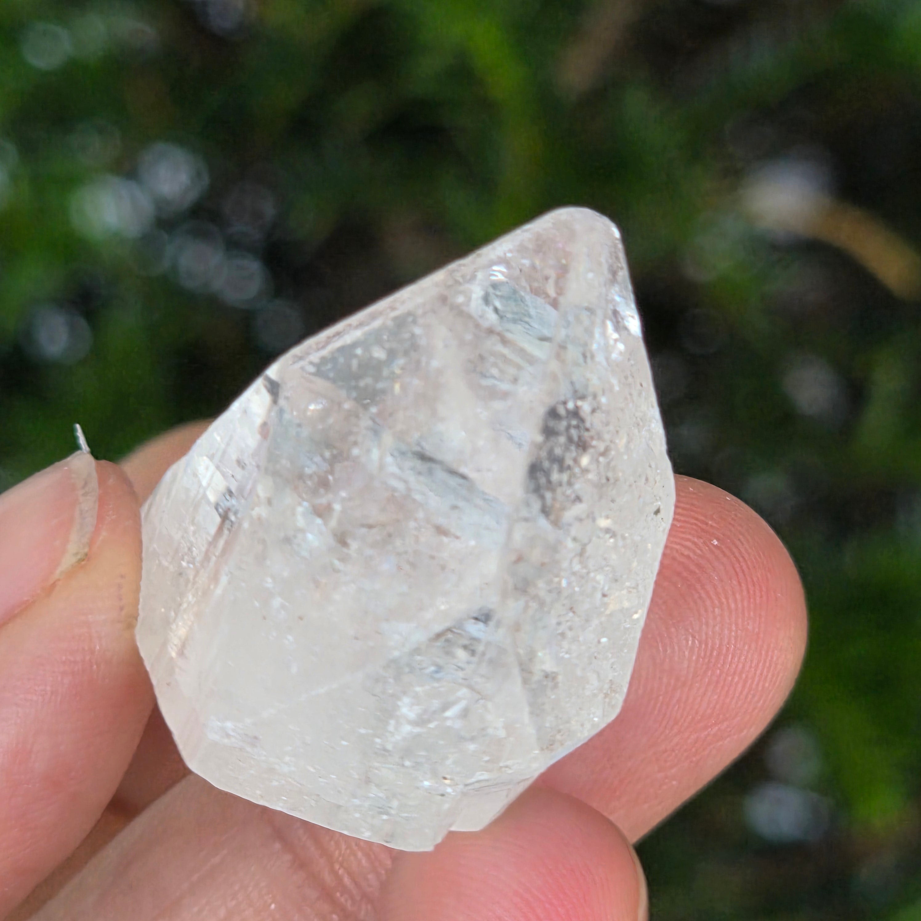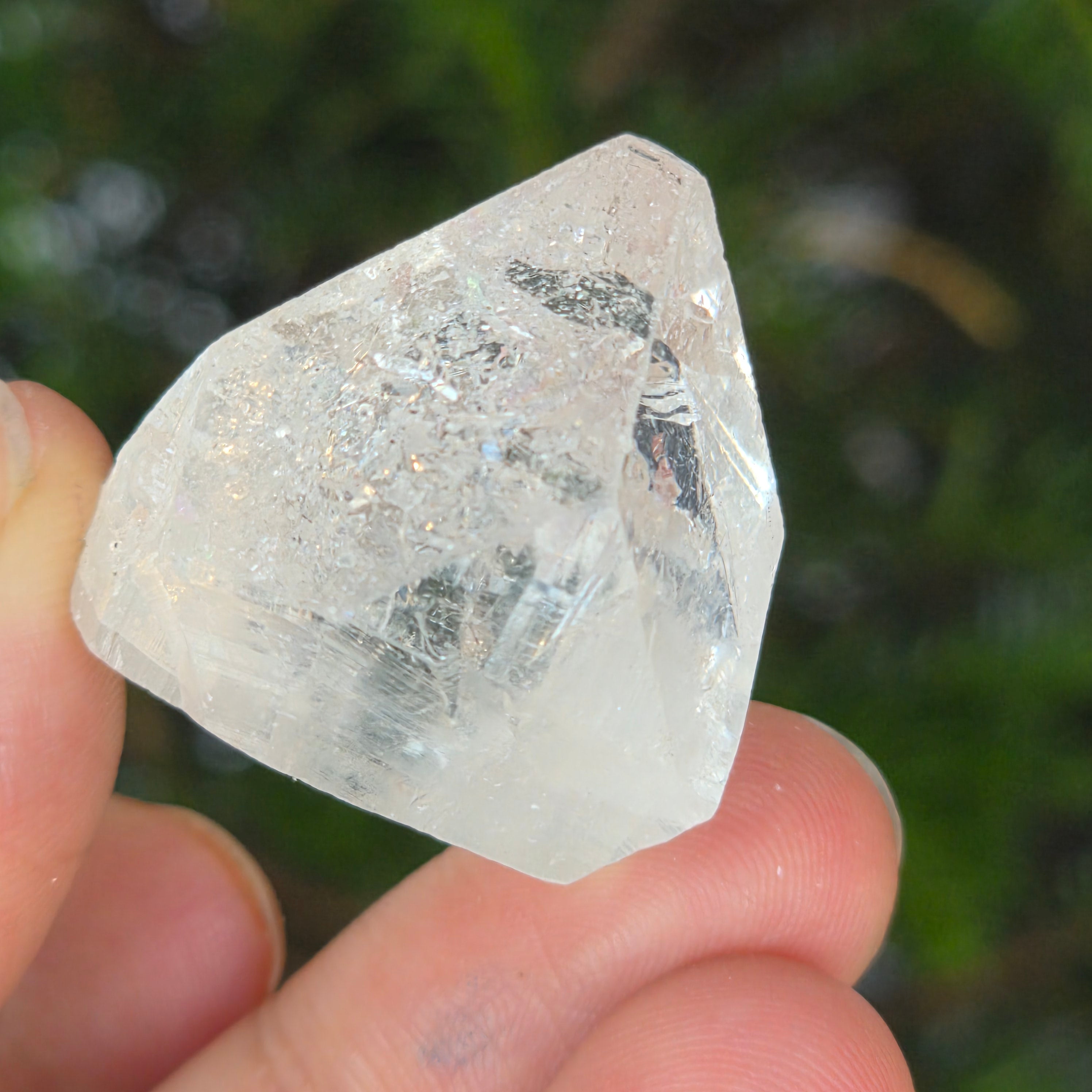 • Color: transparente-blanco, con reflejos brillantes y ligeros iridiscentes verdes