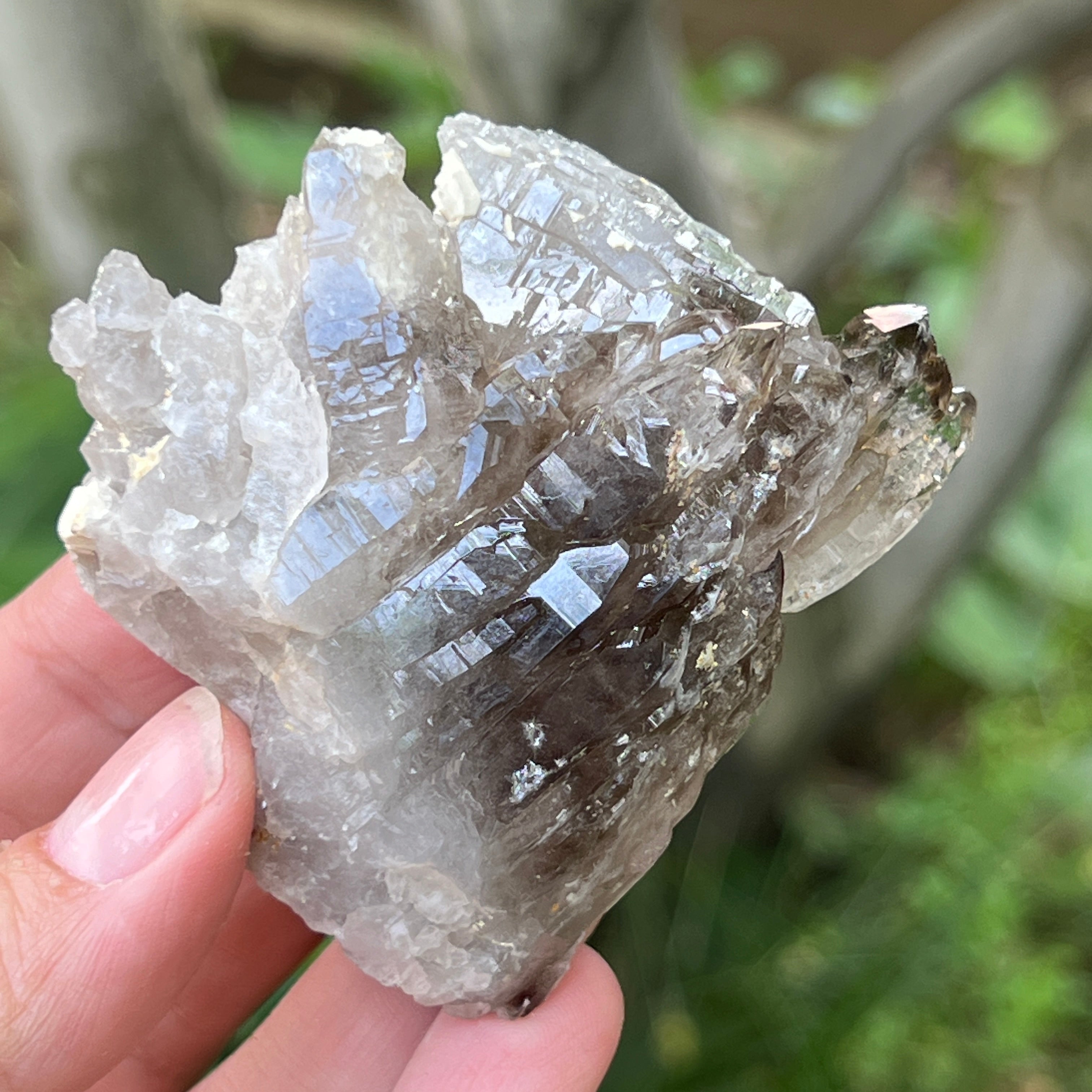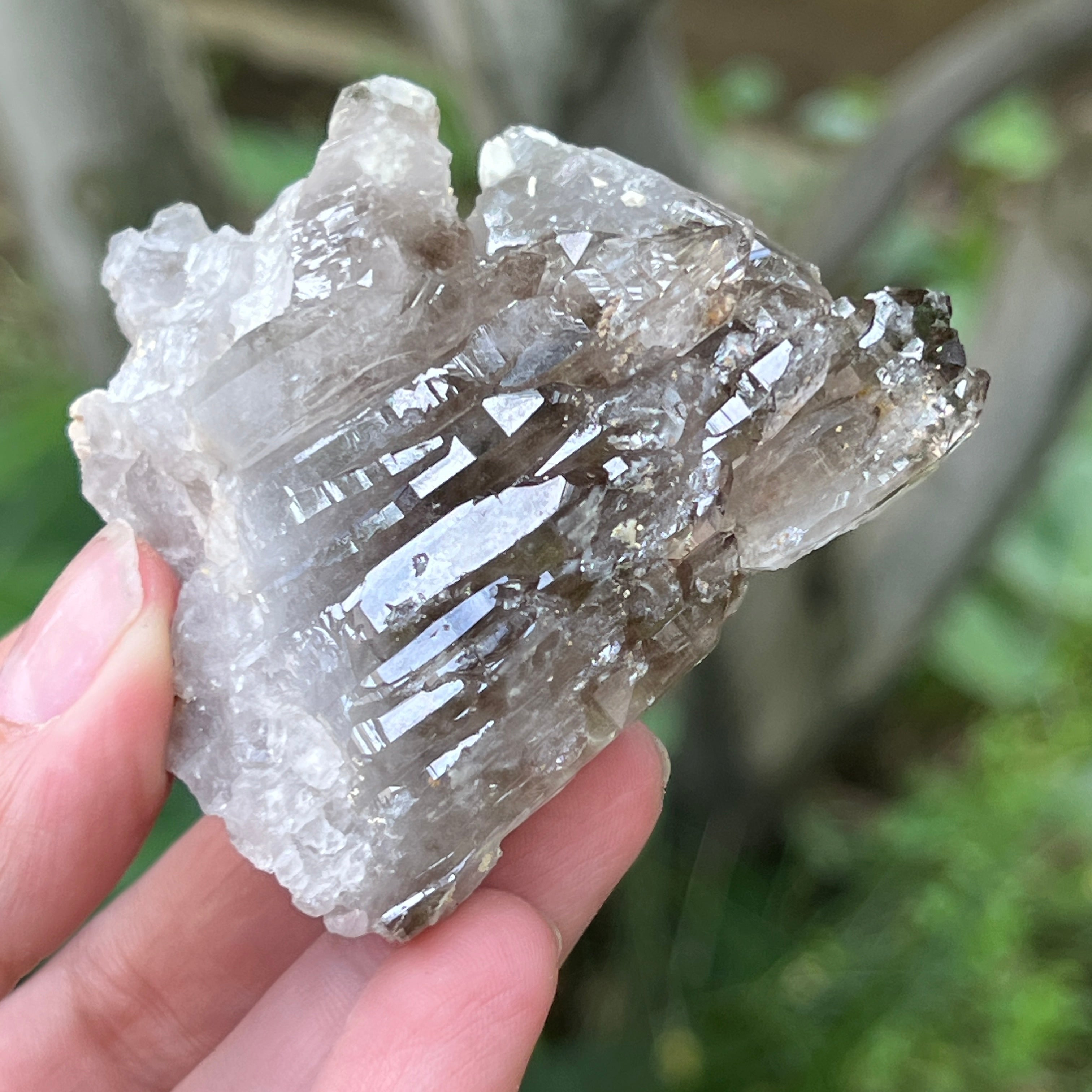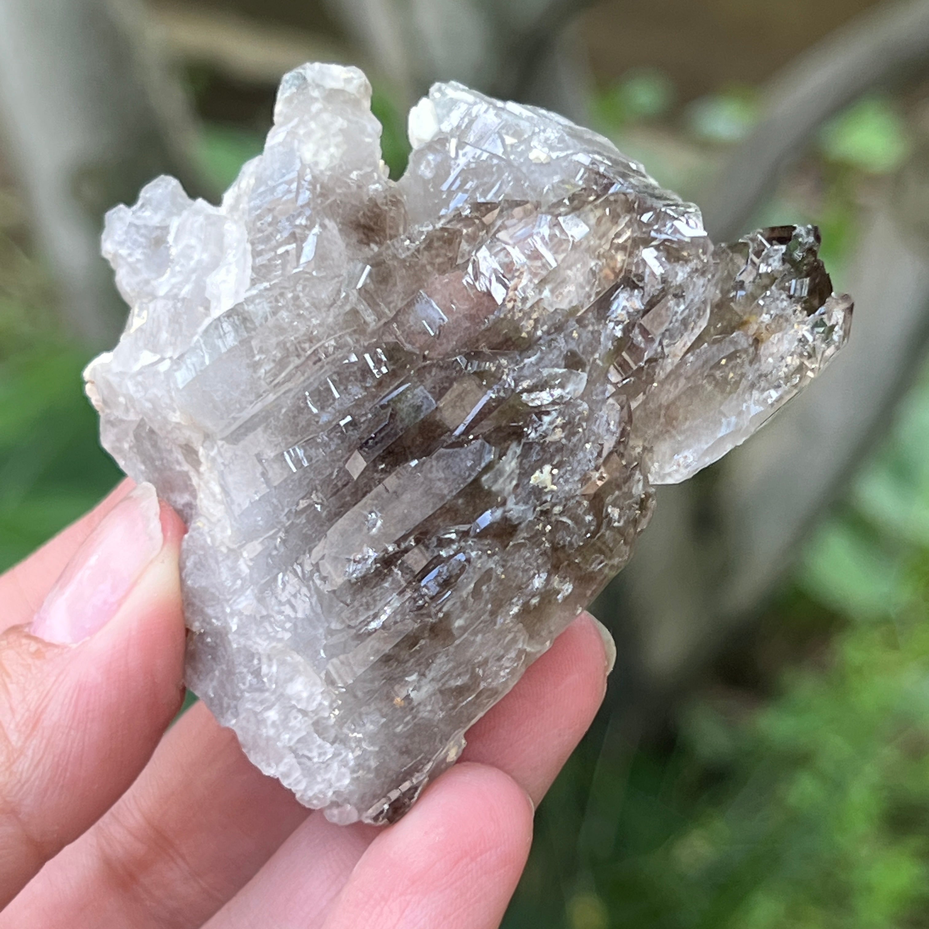 El cuarzo ahumado de esta zona es especialmente valorado por su claridad natural, sus tonos cálidos desde el marrón translúcido al marrón intenso y sus formas perfectamente desarrolladas en el sistema trigonal. Algunos cristales muestran terminaciones dobles, formas de cetro o inclusiones fascinantes, desde vapores hidrotermales y burbujas móviles hasta rastros de hematita o rutilo. La presencia natural de la radiación de las rocas circundantes durante la formación de cristales da este auténtico tono ahumado sin tratamientos térmicos ni intervención humana.