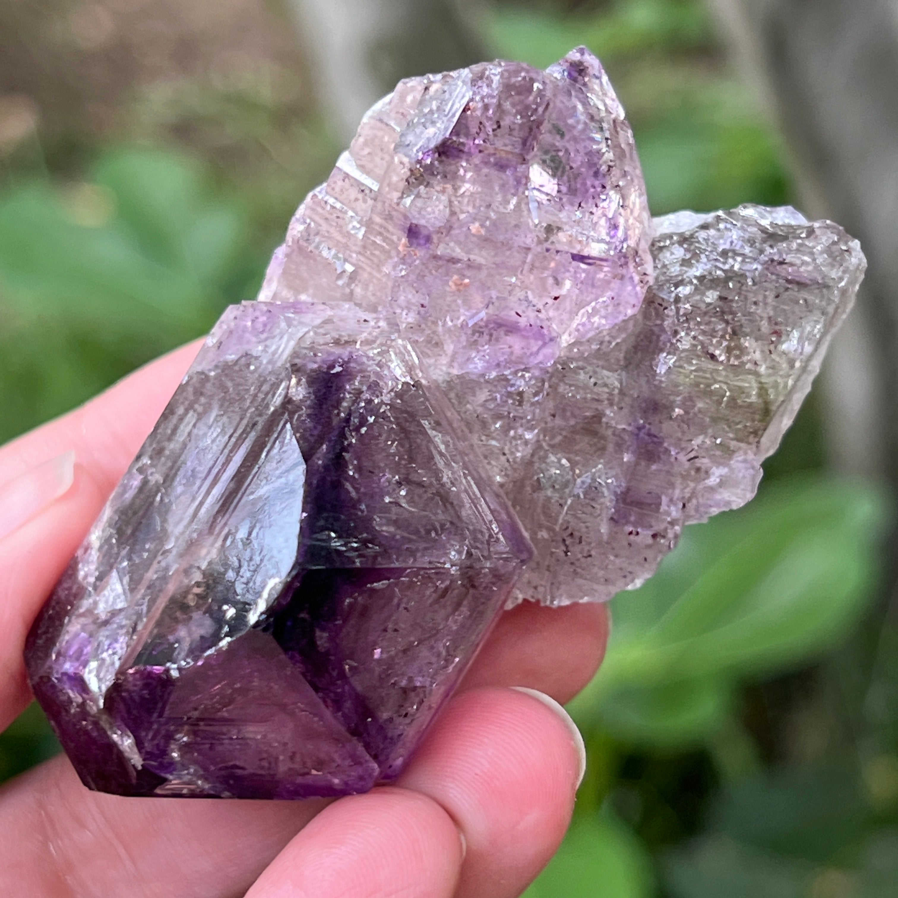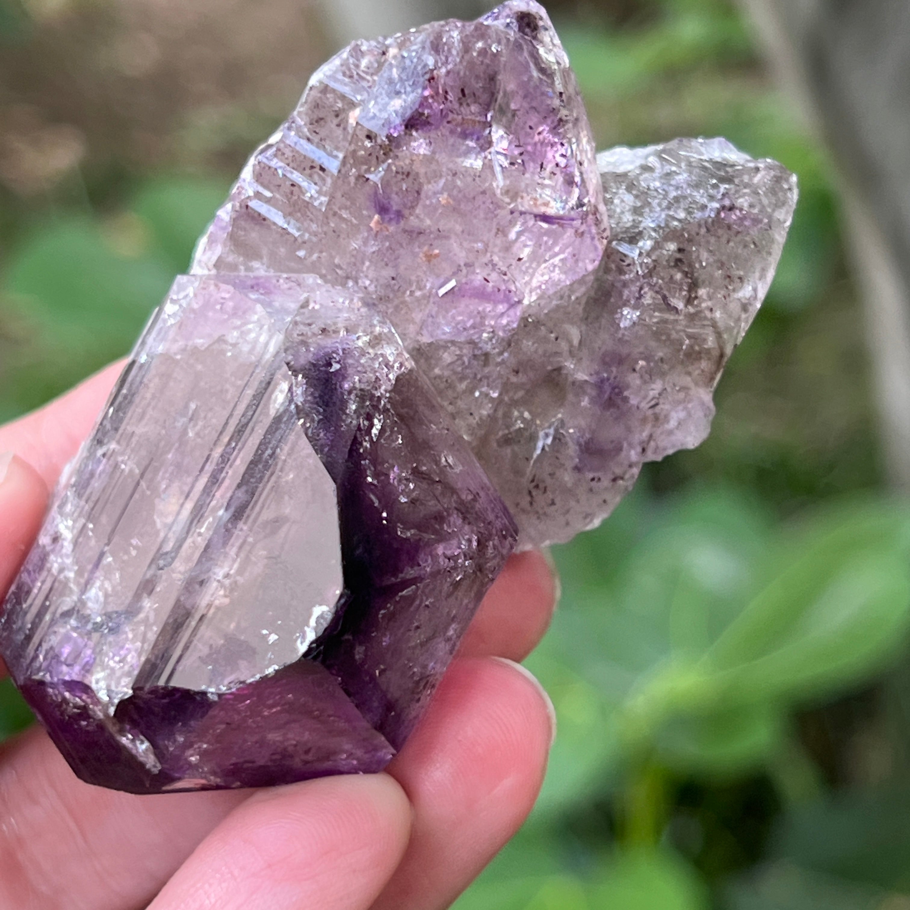 Además de su belleza, este tipo de amatista es conocido en la cristaloterapia por su capacidad de calmar la mente, de apoyar la claridad espiritual y de aportar una protección sutil durante la meditación o en espacios sagrados.