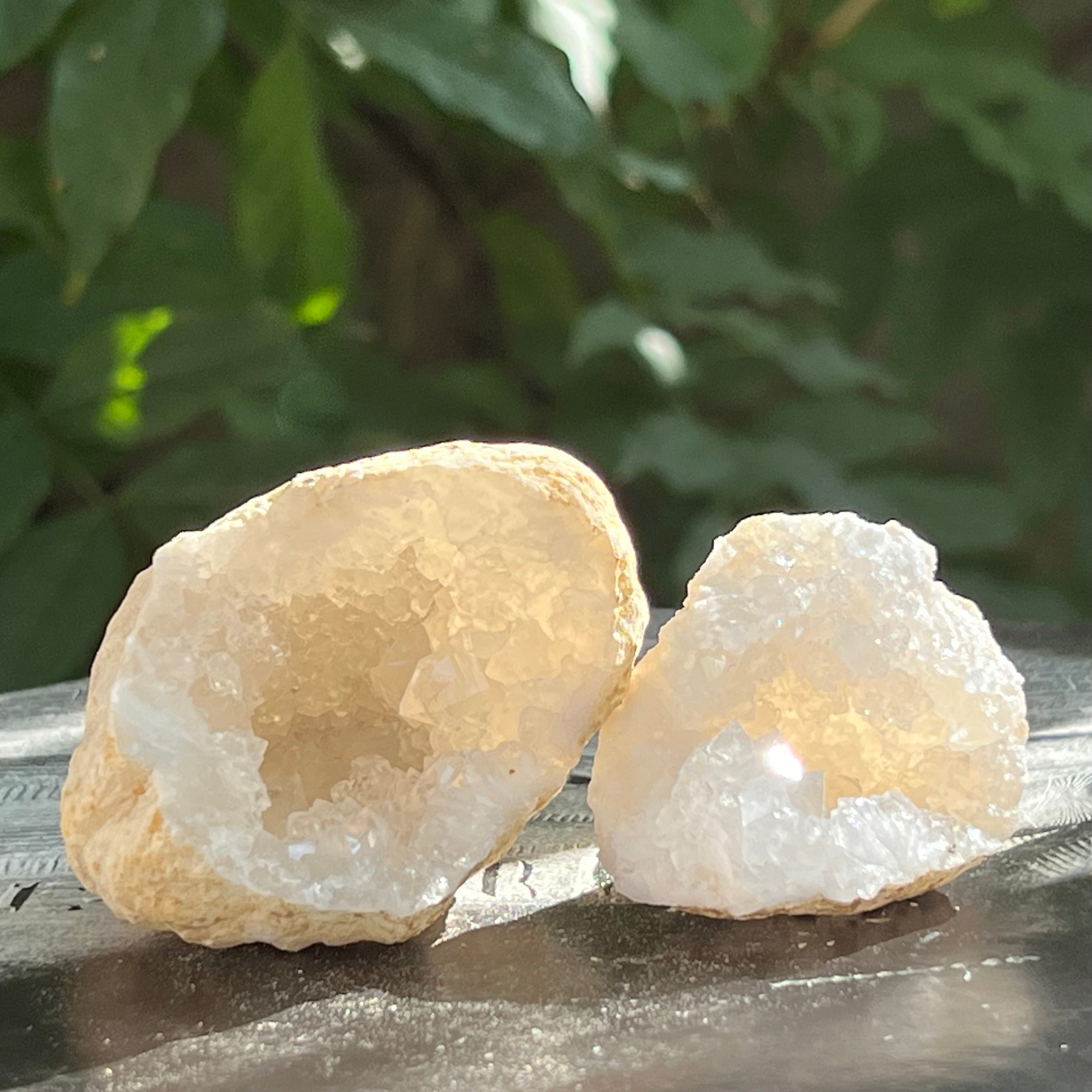 Los geodas de cuarzo de roca son muy populares entre coleccionistas y entusiastas, ya que revelan una belleza oculta cuando se cortan o rompen, mostrando los cristales brillantes en su interior. Estos geodas pueden variar en tamaño, desde pequeñas formaciones, ideales para decoración o colecciones, hasta ejemplares más grandes, que se convierten en verdaderas piezas centrales en la decoración de interiores.