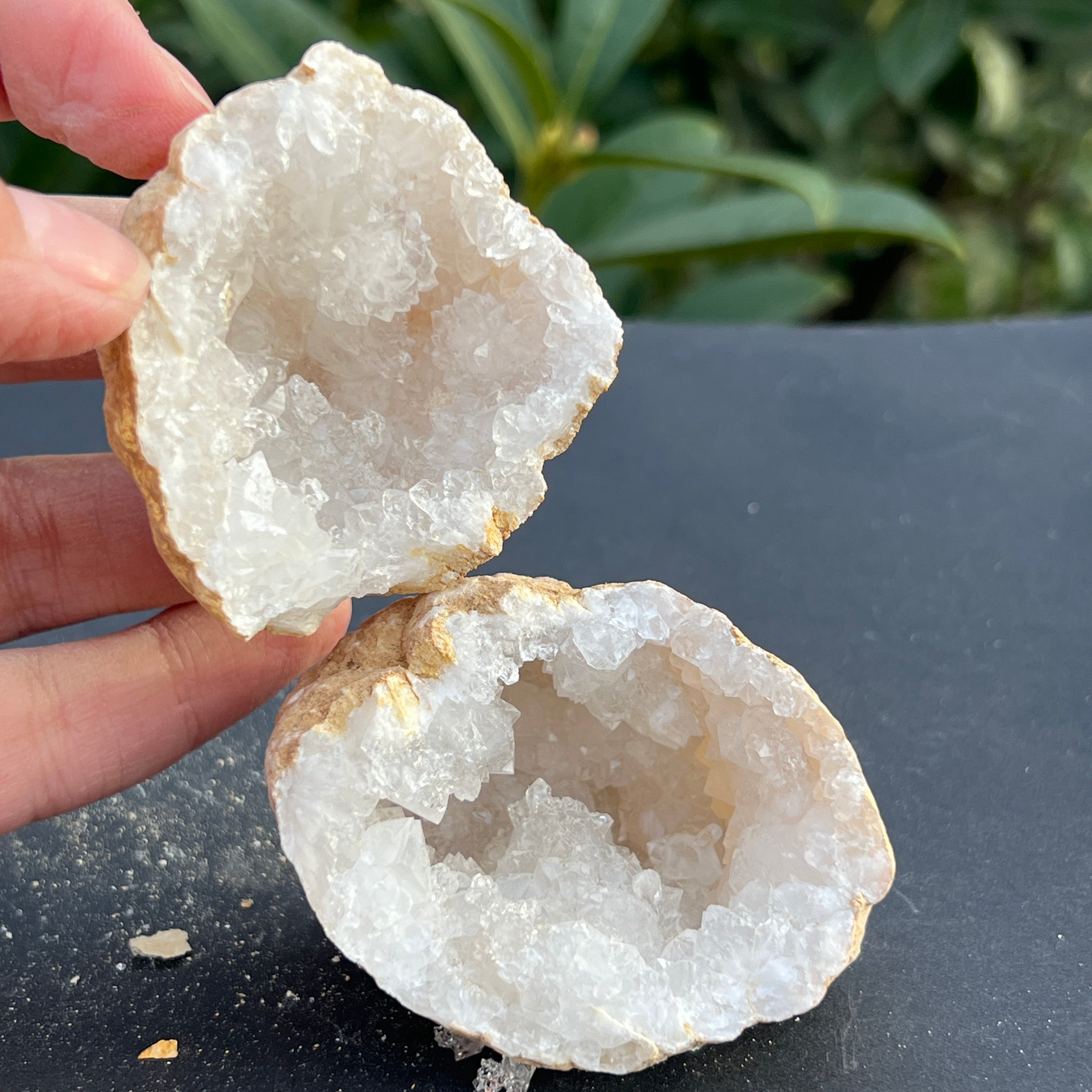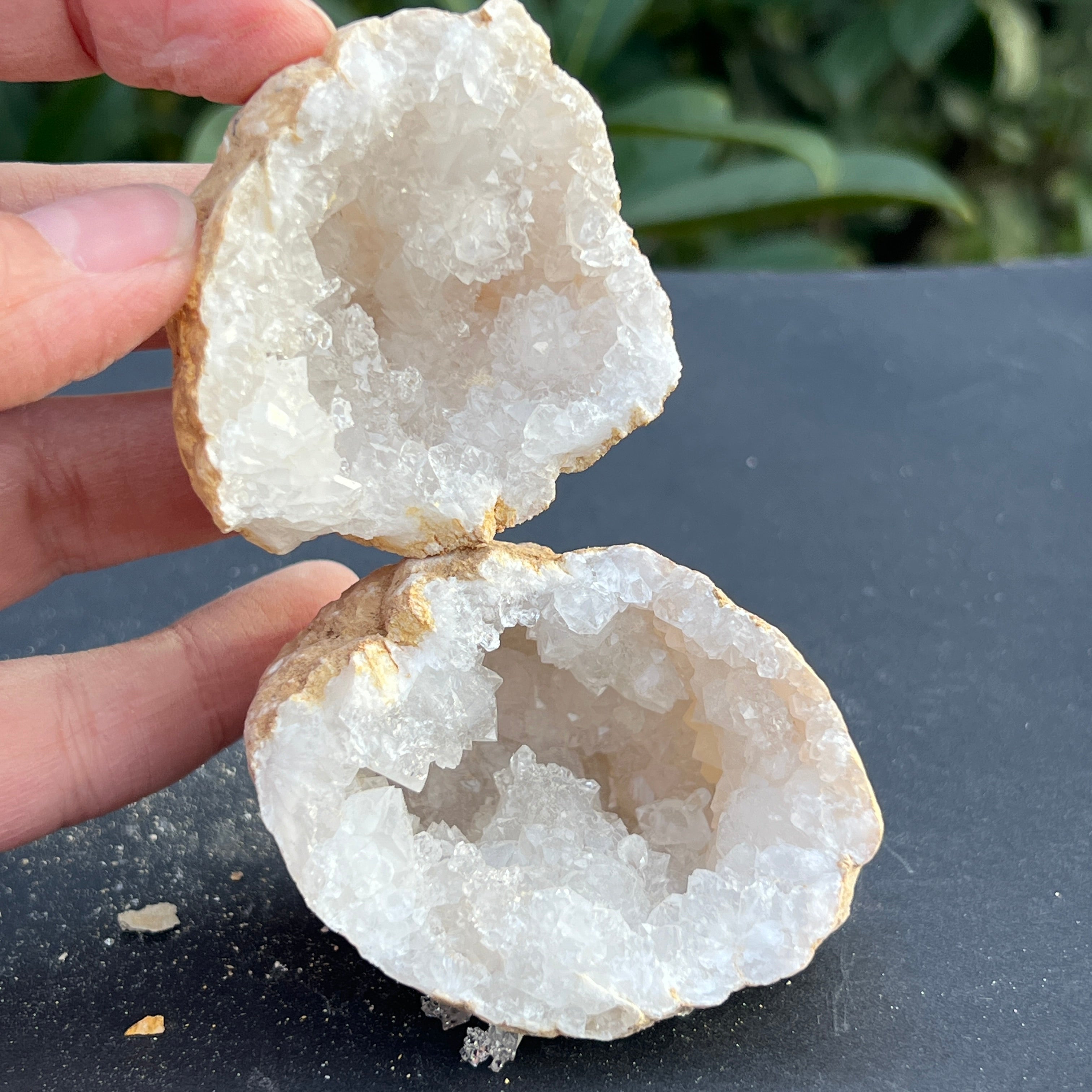 Las geodas de cuarzo de roca son muy populares entre coleccionistas y entusiastas, ya que revelan una belleza oculta cuando se cortan o rompen, exponiendo los cristales brillantes en su interior. Estas geodas pueden variar en tamaño, desde formaciones pequeñas, ideales para decoración o colecciones, hasta ejemplares más grandes, que se convierten en verdaderas piezas centrales en la decoración de interiores.