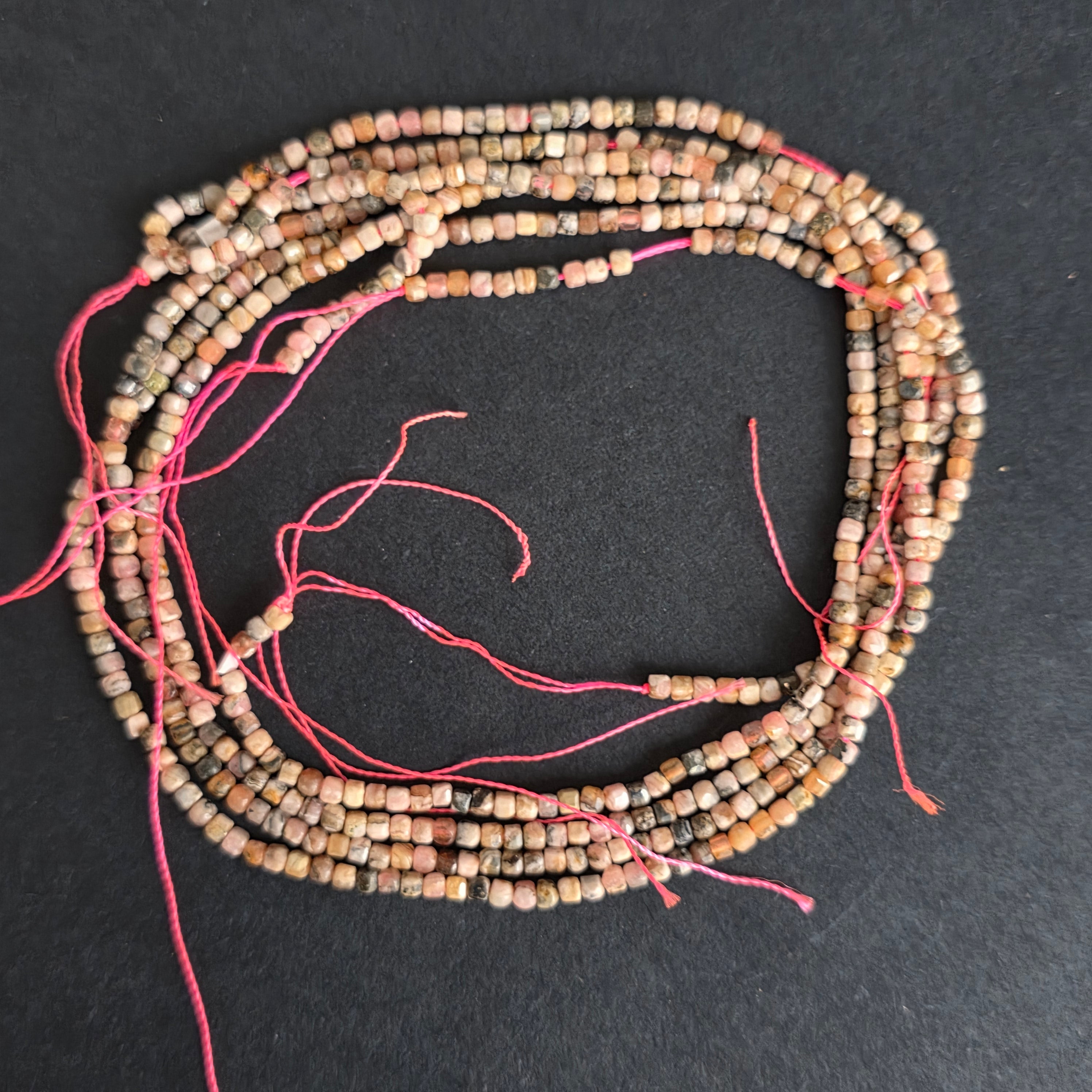 Hilo de RODOCROSITA, compuesto por cubos faceteados naturales, perfecto para collares, pulseras u otras joyas hechas a mano.