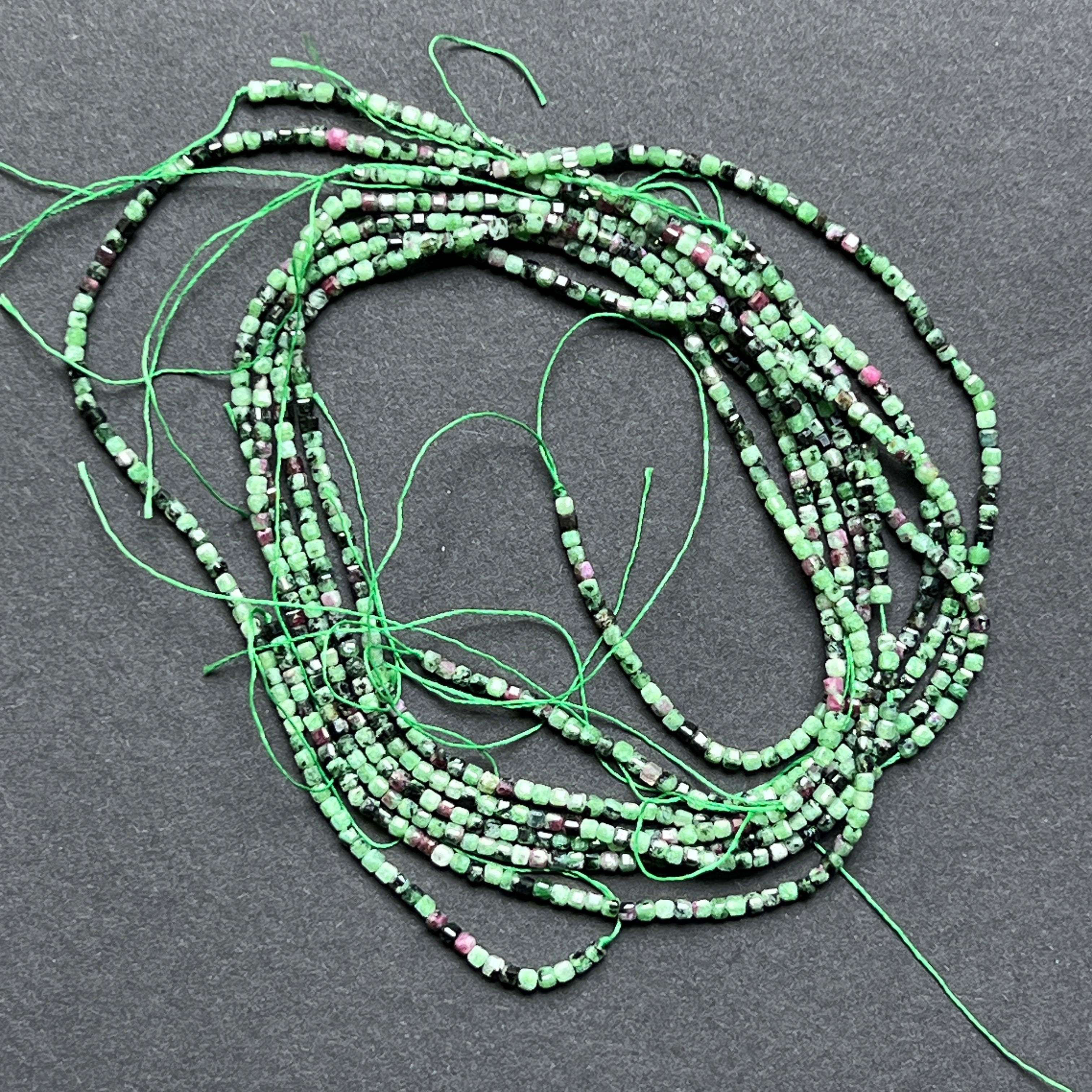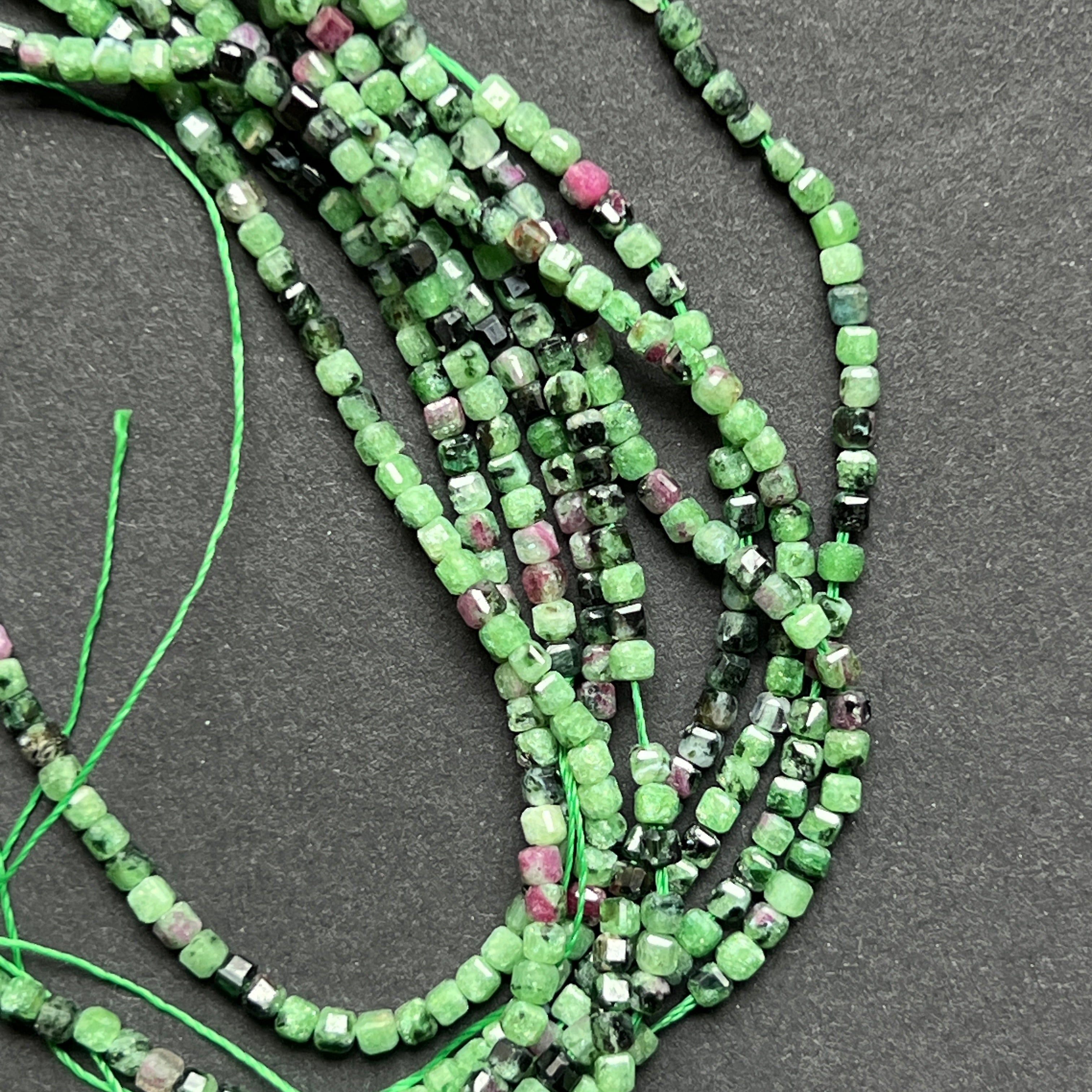 Hilo de RUBÍ en ZOISITA, compuesto por cubos FACETADOS naturales, perfecto para collares, pulseras u otras joyas hechas a mano.