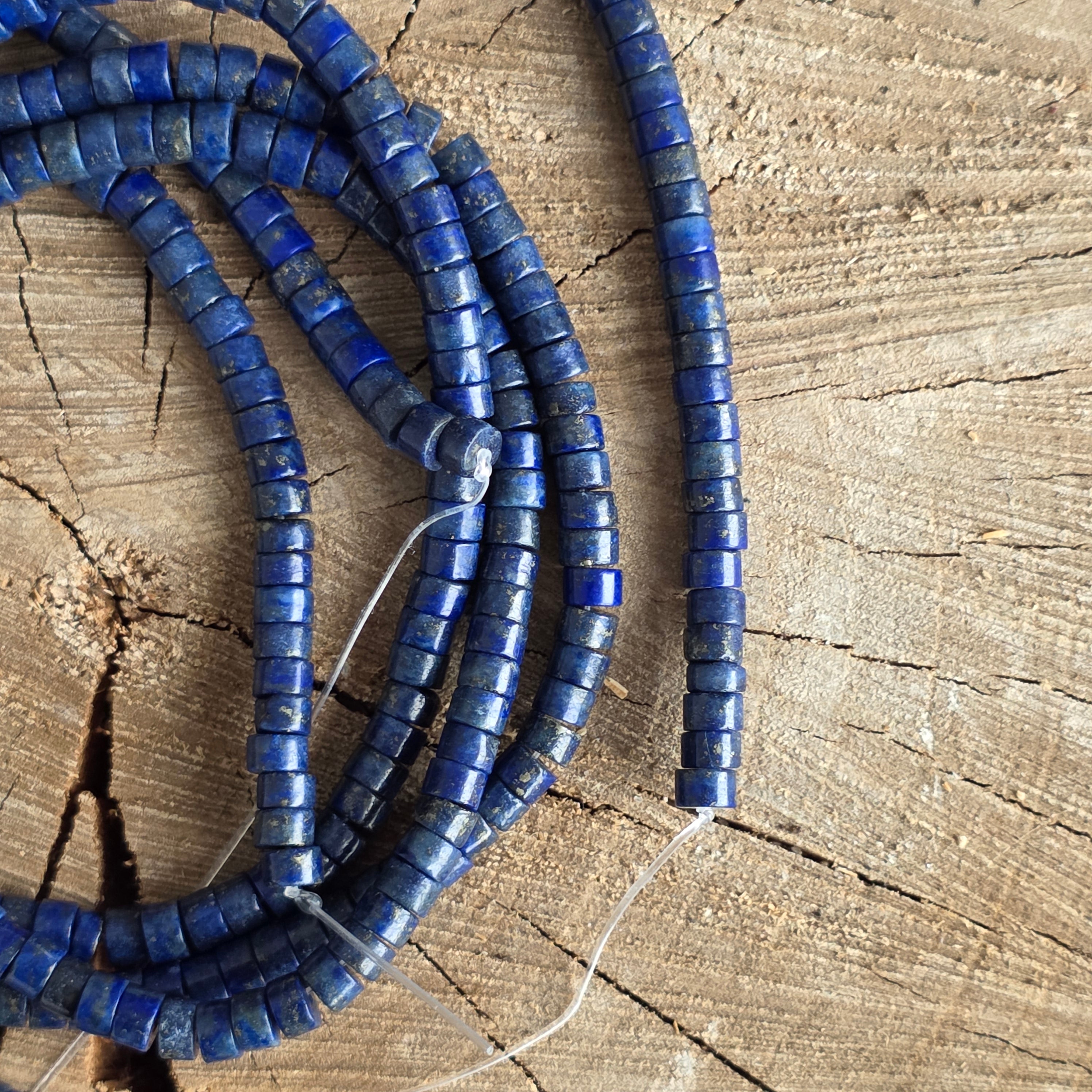 Hilo de LAPIS LÁZULI, compuesto por discos naturales, perfecto para collares, pulseras u otras joyas artesanales.
