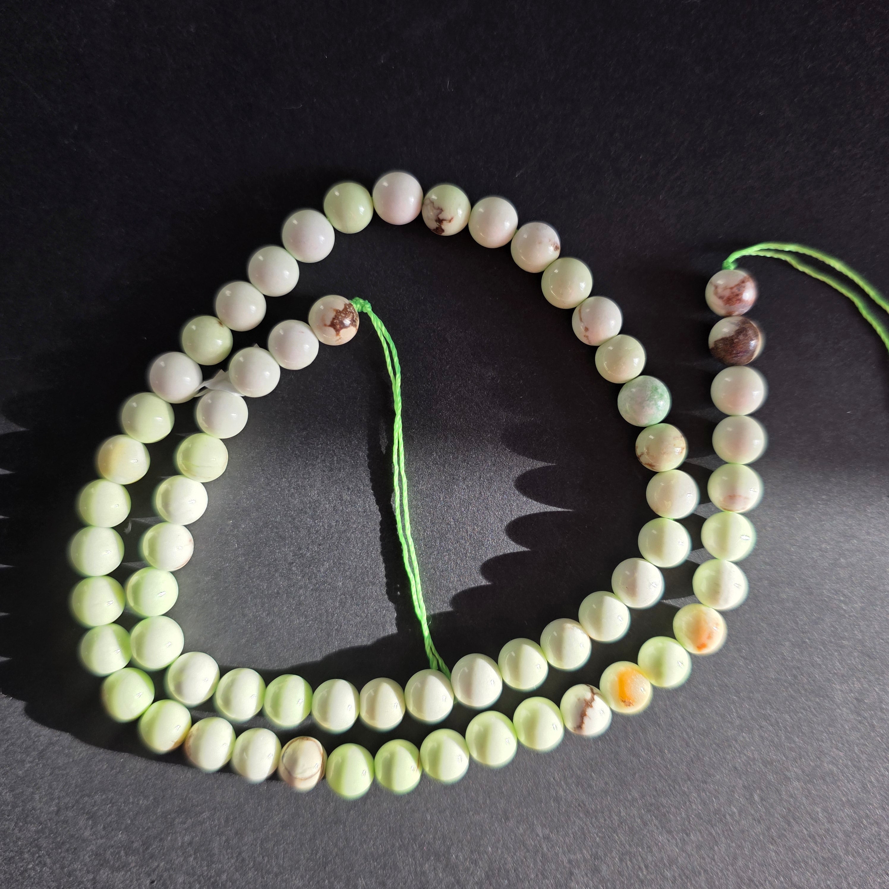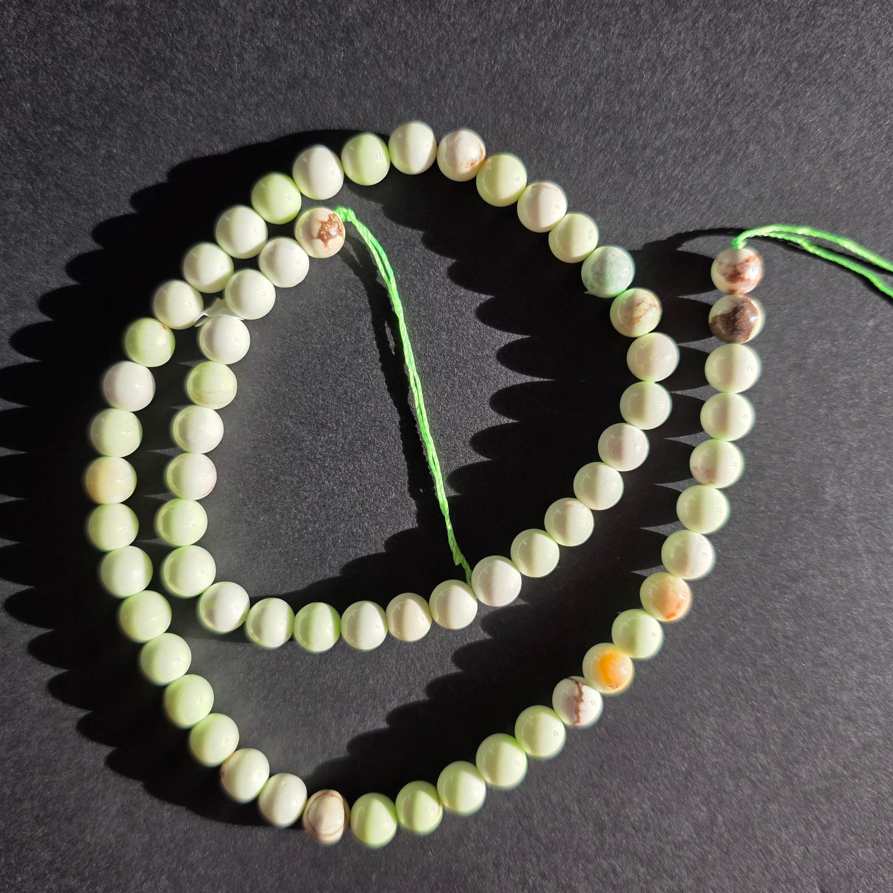 Hilo de CRISOPRASA LIMÓN compuesto de cuentas esféricas naturales, perfecto para collares, pulseras u otras joyas hechas a mano.
