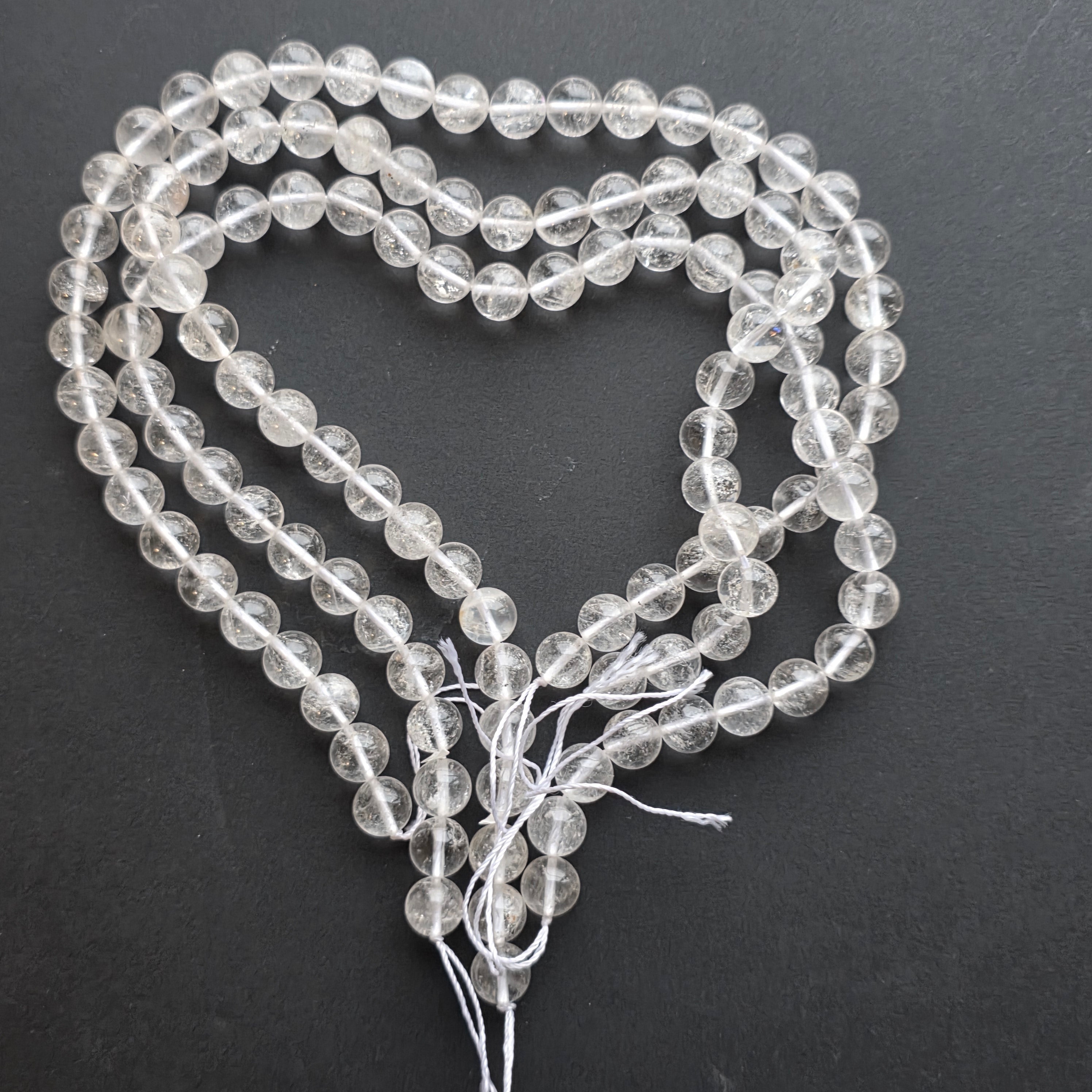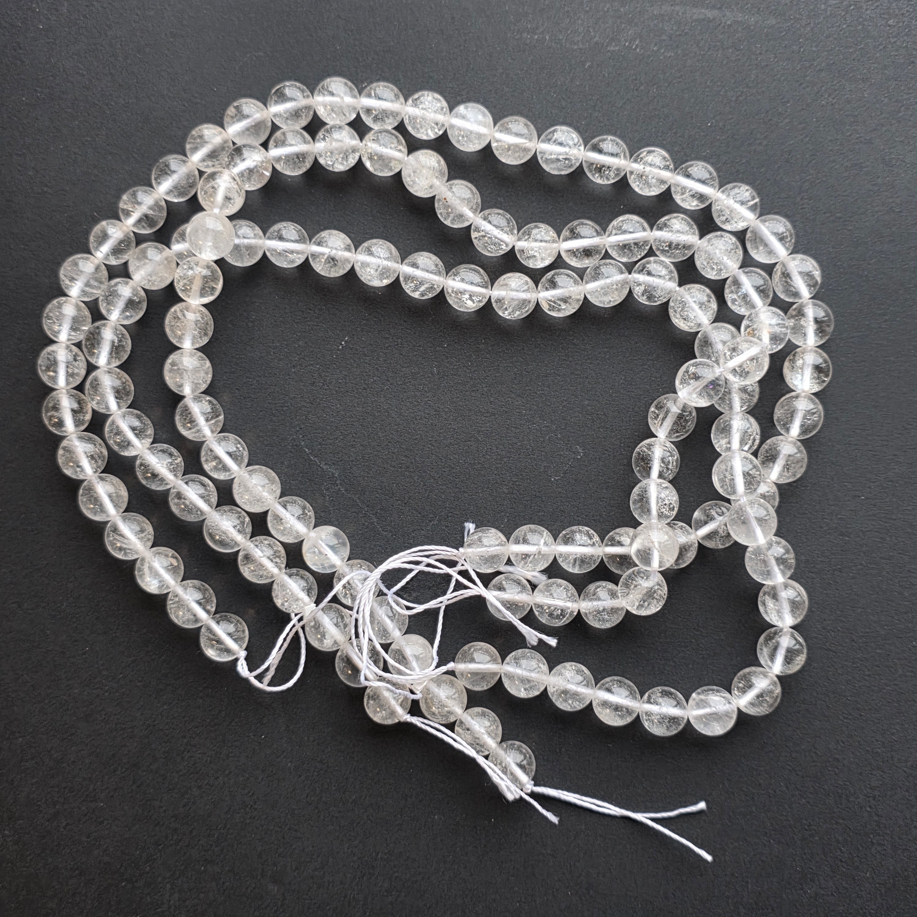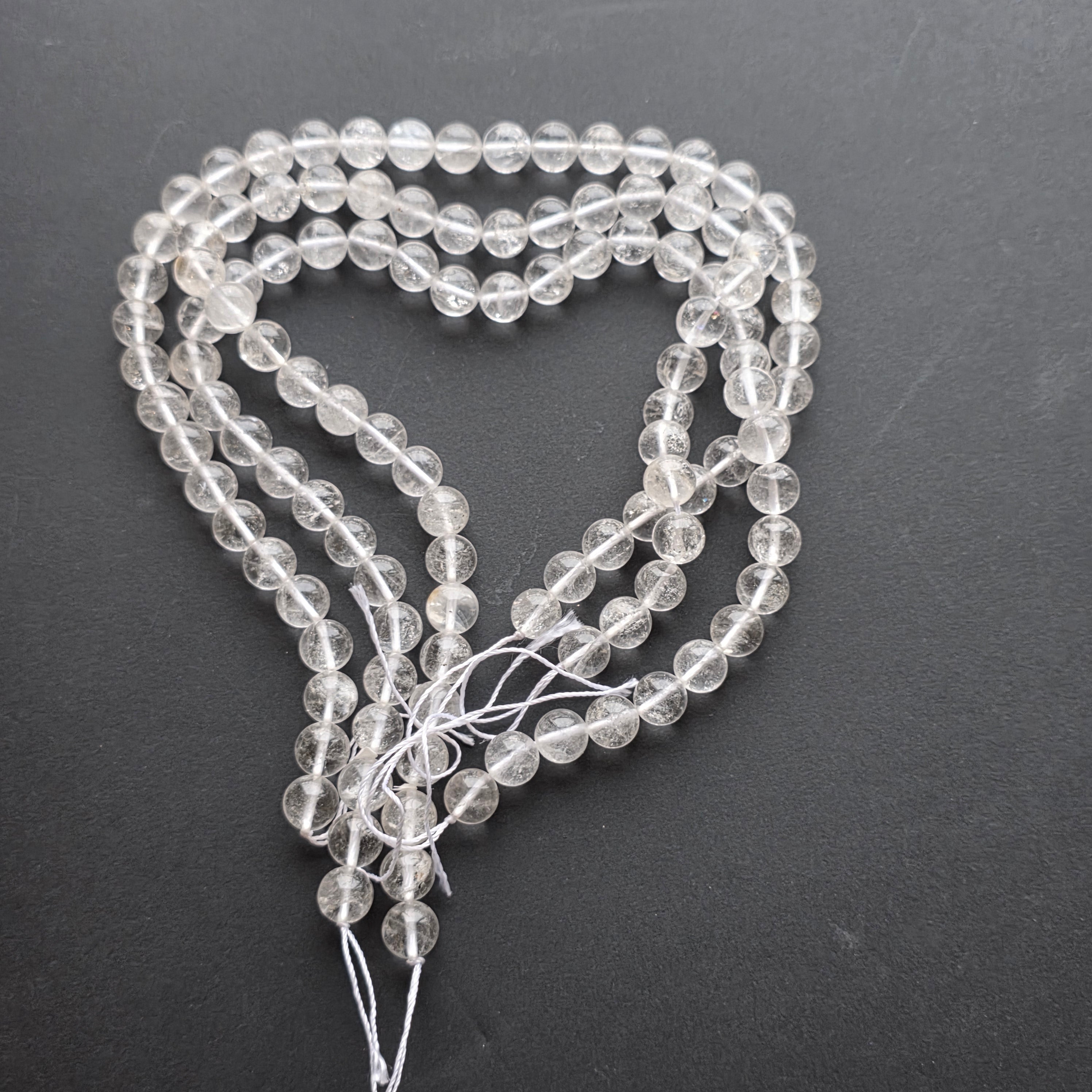 Hilo de CUARZO compuesto por cuentas esféricas naturales, perfecto para collares, pulseras u otras joyas artesanales.