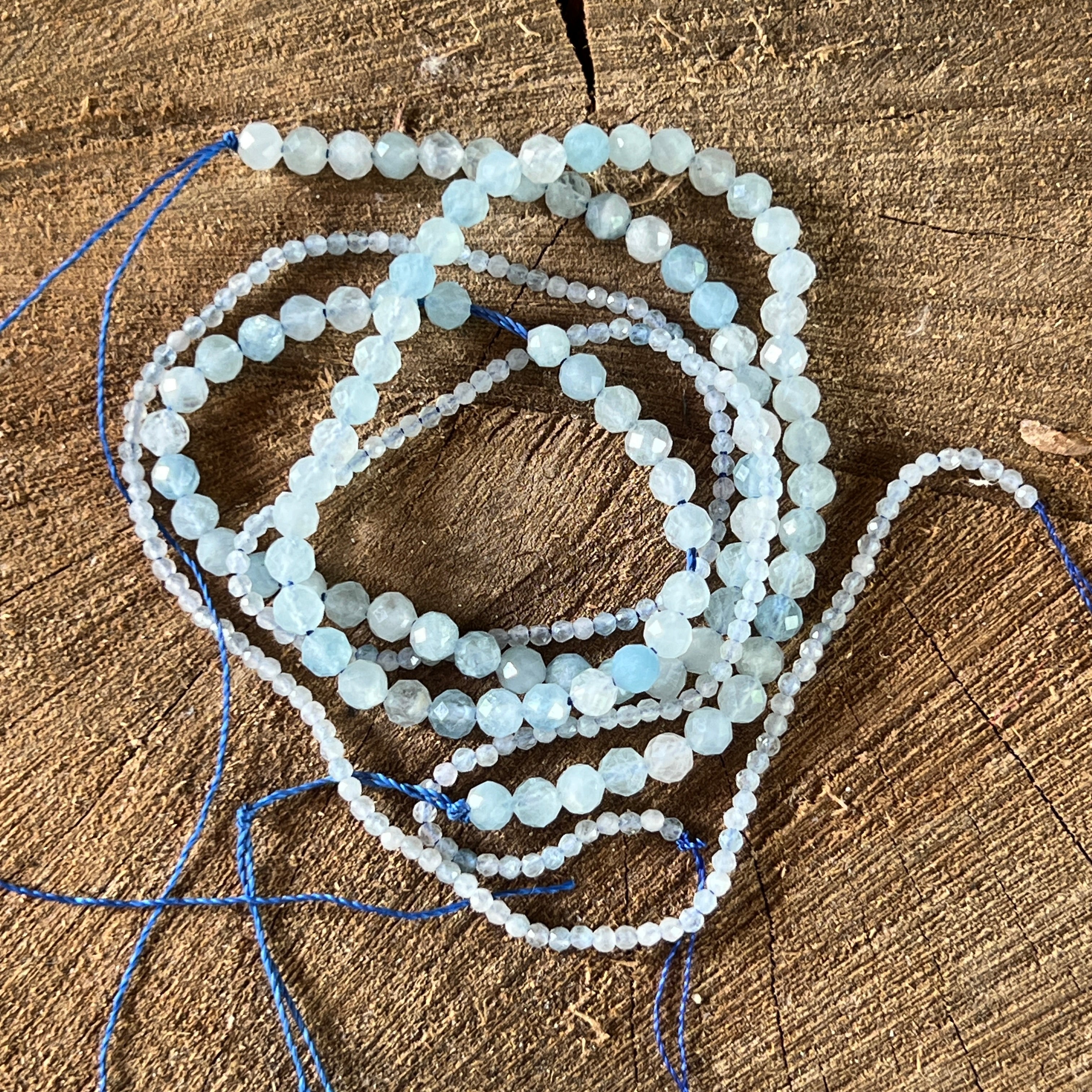 Hilo de cuentas de piedras semipreciosas esferas facetadas AGUAMARINA