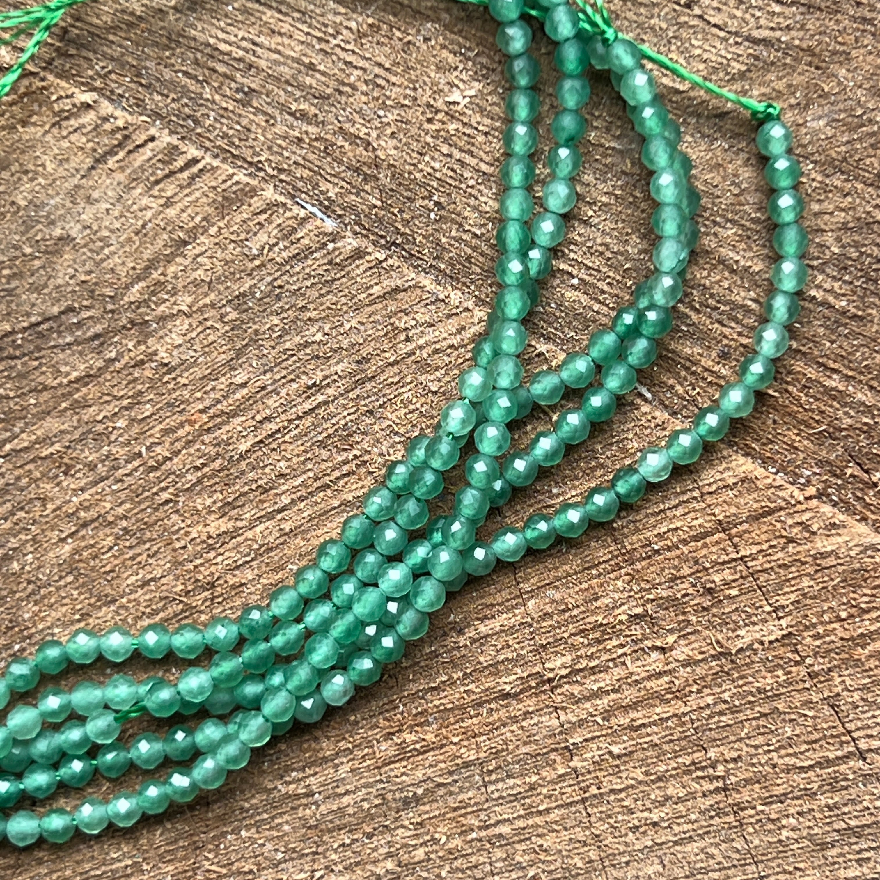Hilo de AVENTURINA VERDE, compuesto por cuentas esféricas facetadas naturales, perfecto para collares, pulseras u otras joyas hechas a mano.