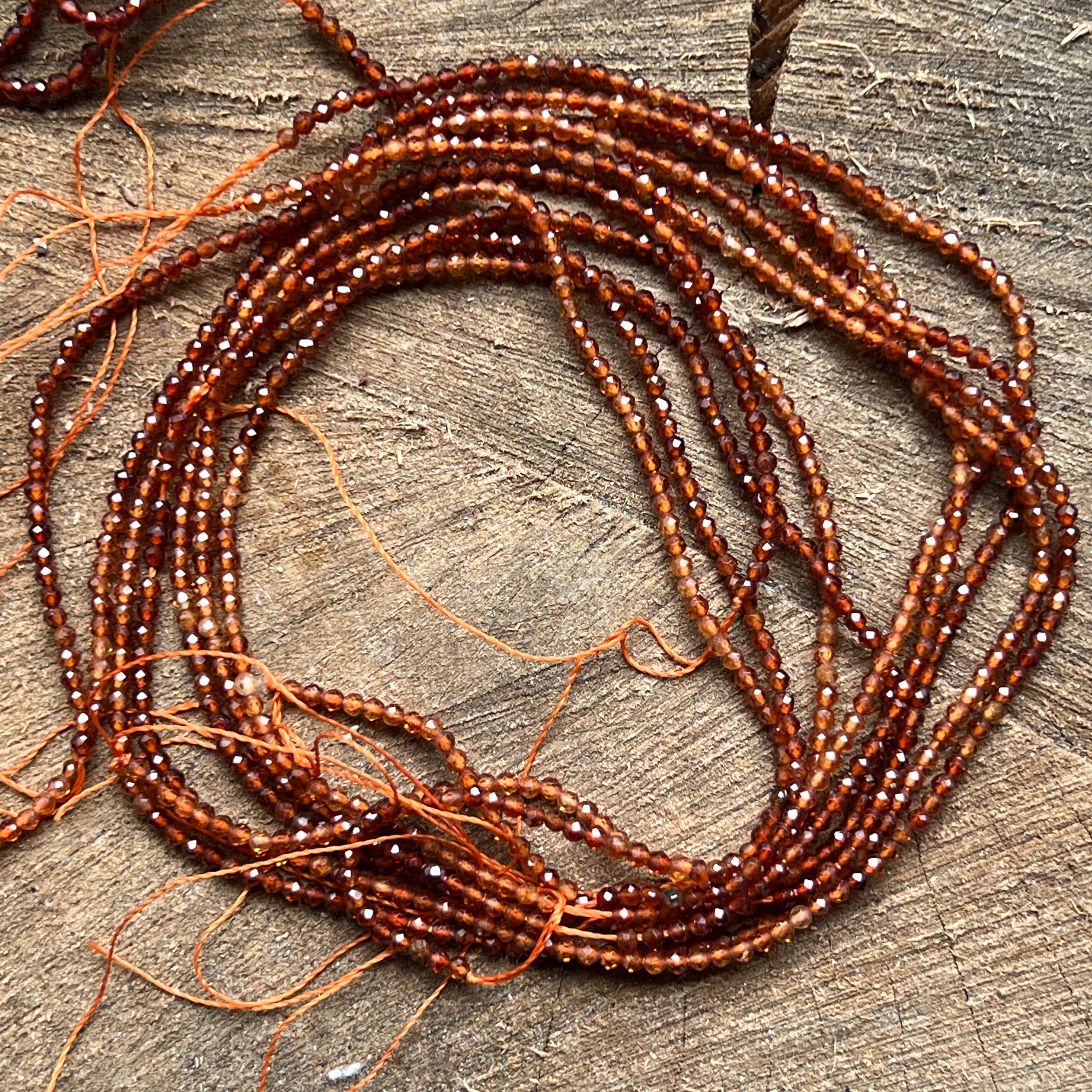 Hilo de piedras semipreciosas esferas facetadas GRANATE NARANJA