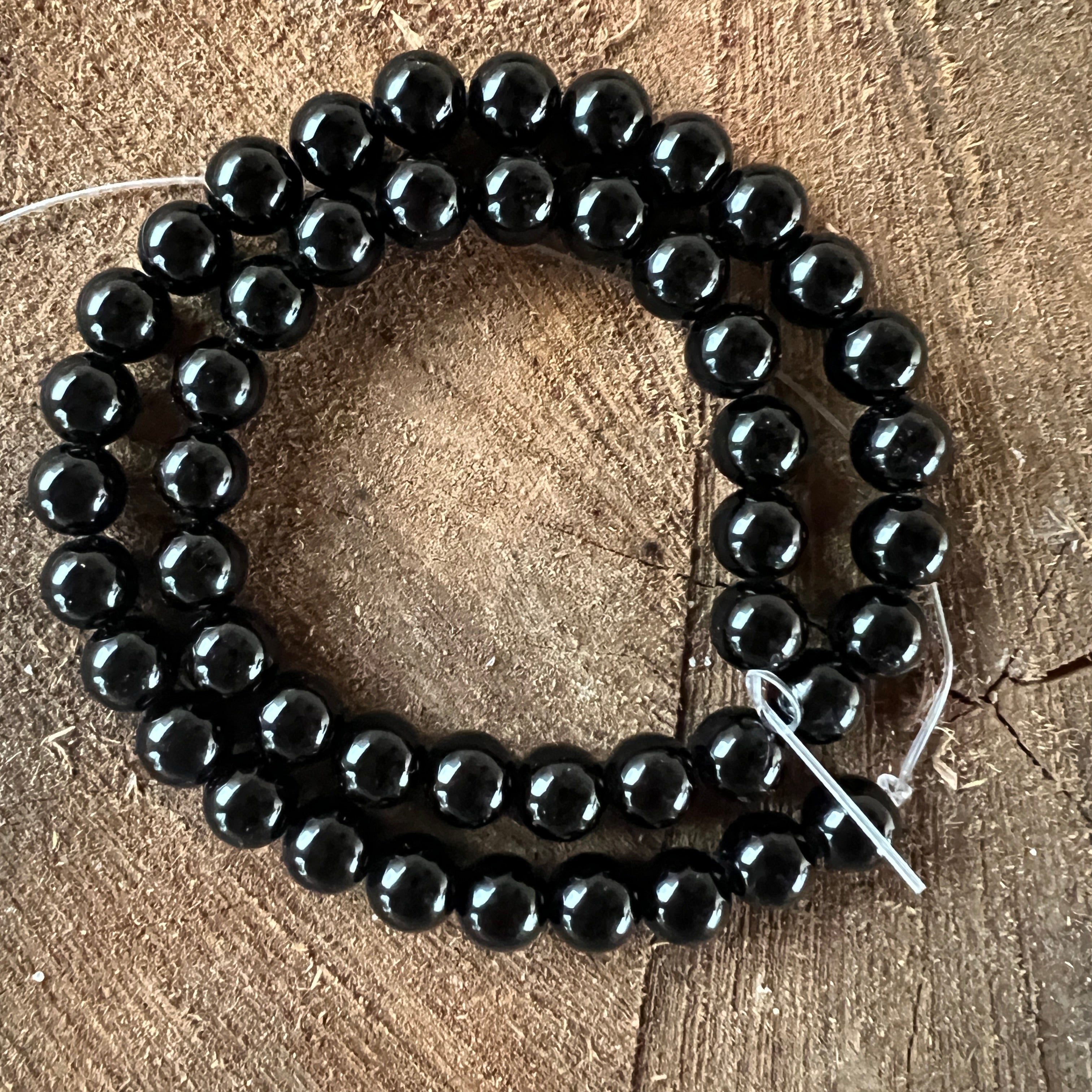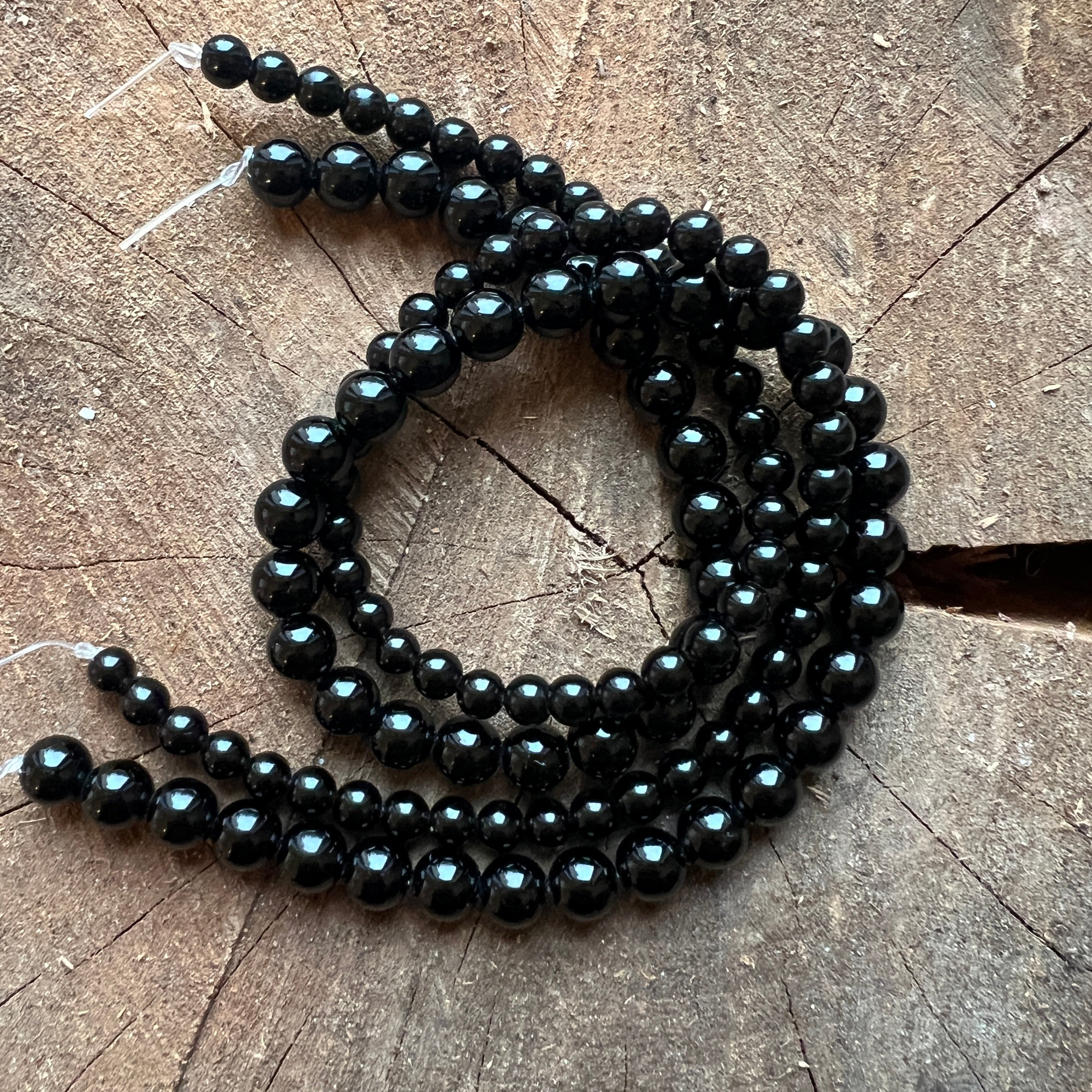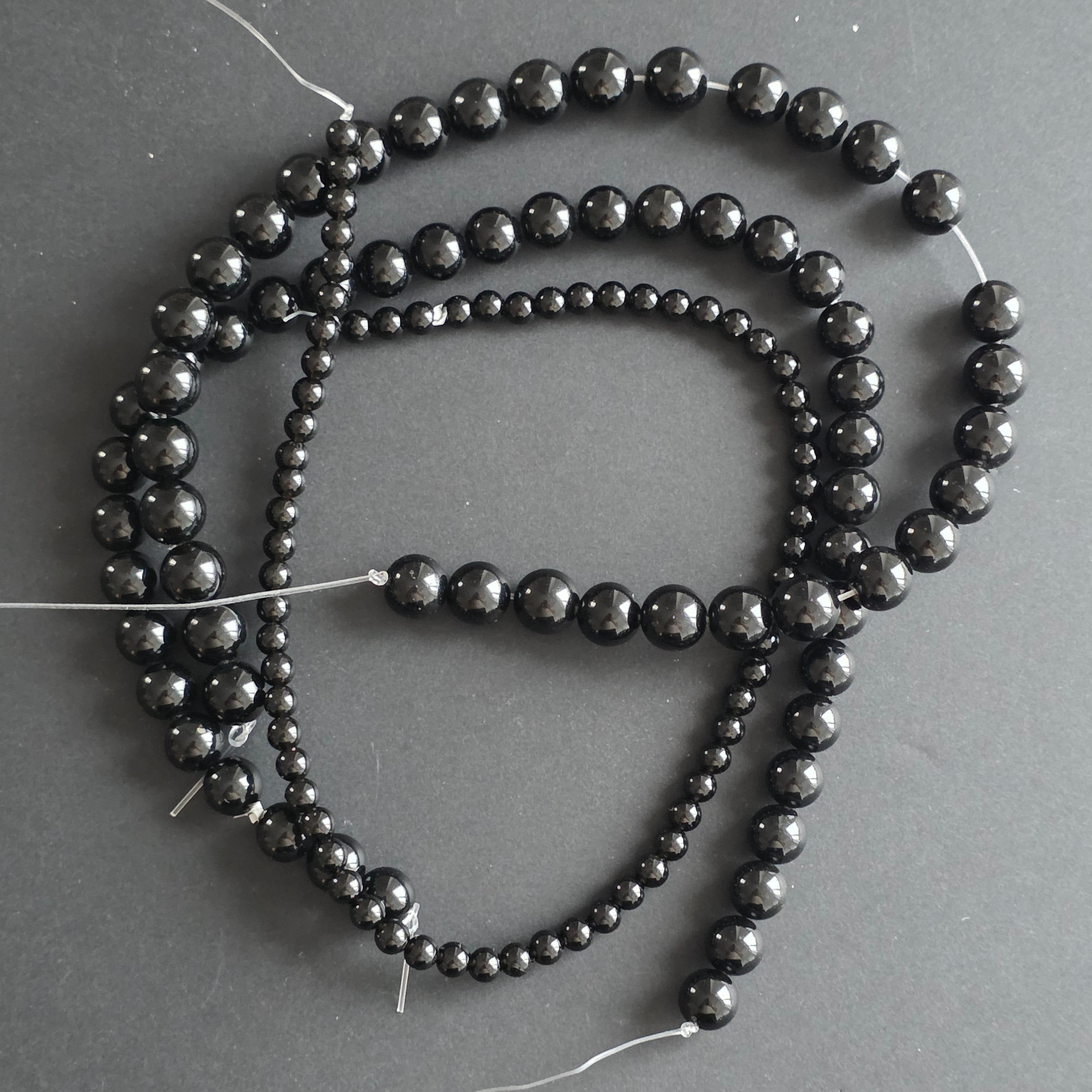 Hilo de obsidiana, compuesto por cuentas esféricas naturales, perfecto para collares, pulseras u otras joyas hechas a mano.