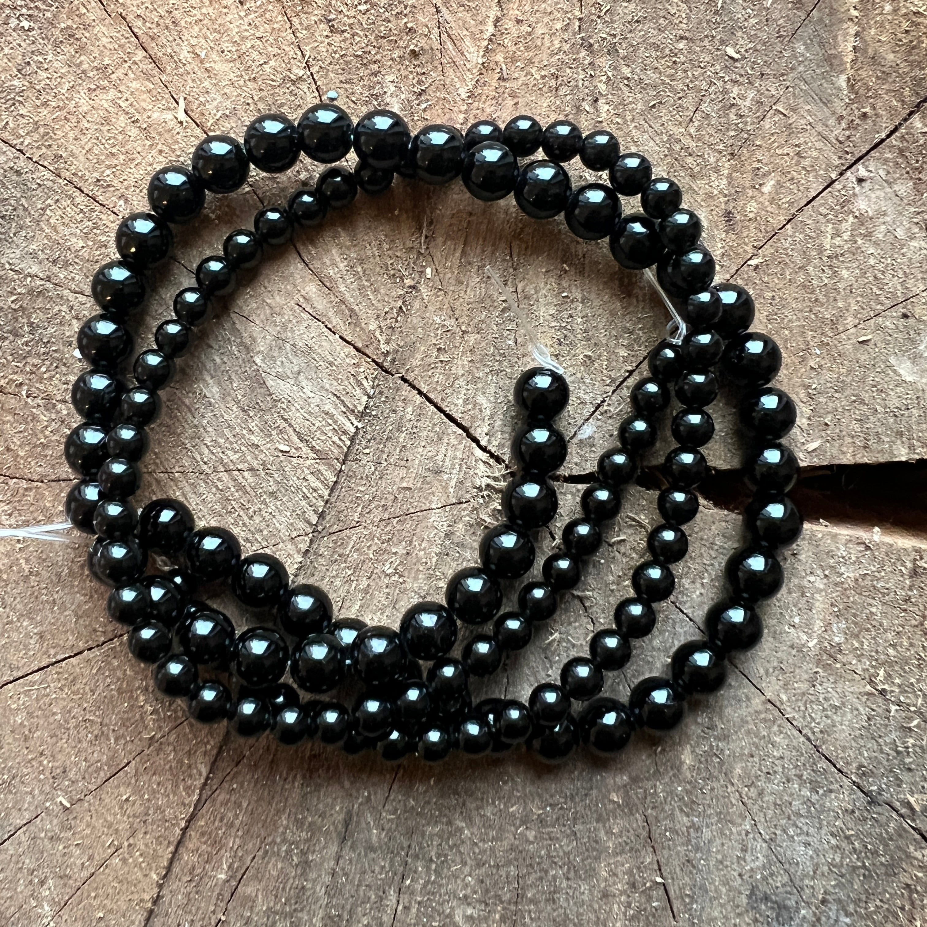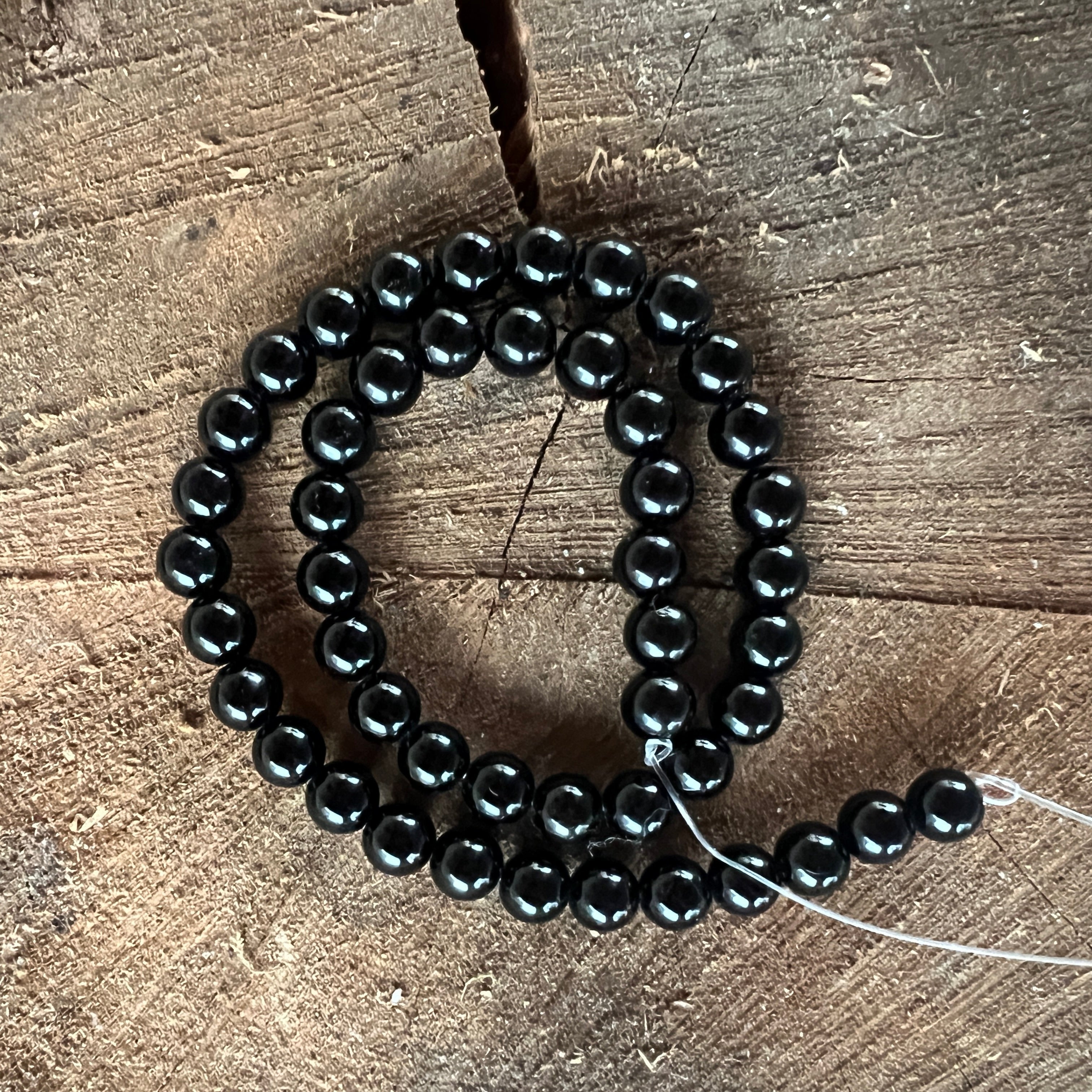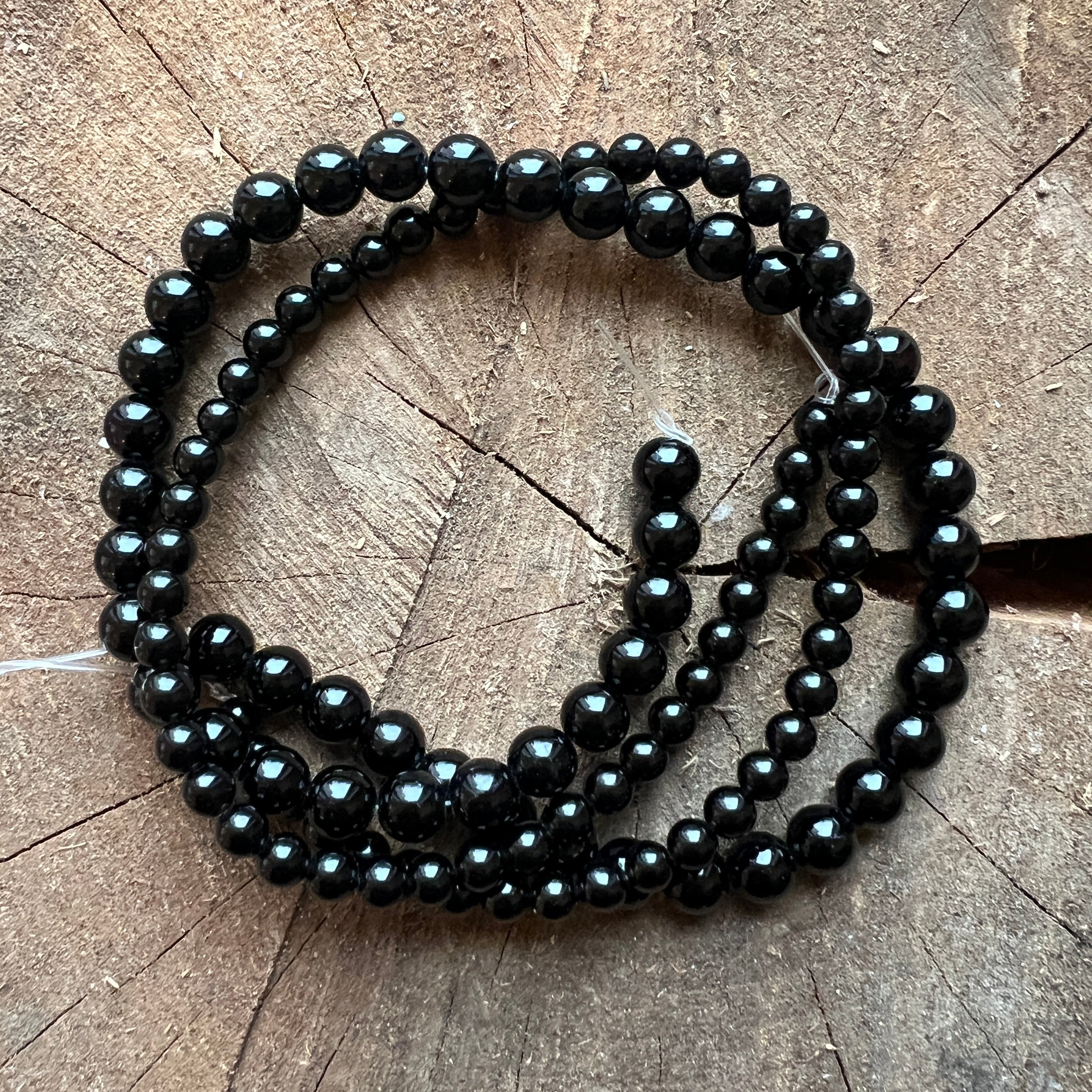 Hilo de obsidiana, compuesto por cuentas esféricas naturales, perfecto para collares, pulseras u otras joyas hechas a mano.