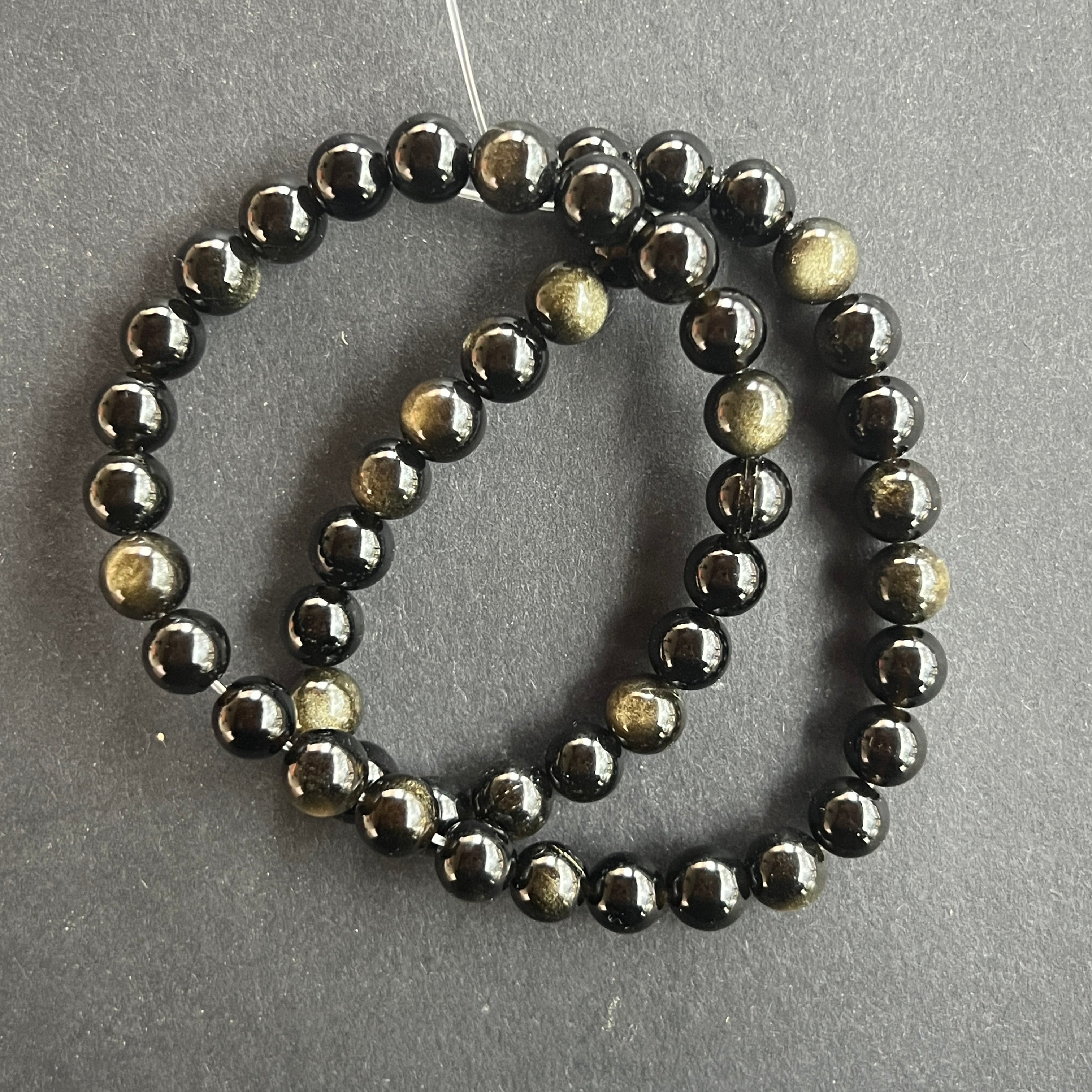 Hilo de OBSIDIANA DORADA, compuesto por cuentas esféricas naturales, perfecto para collares, pulseras u otras joyas artesanales.