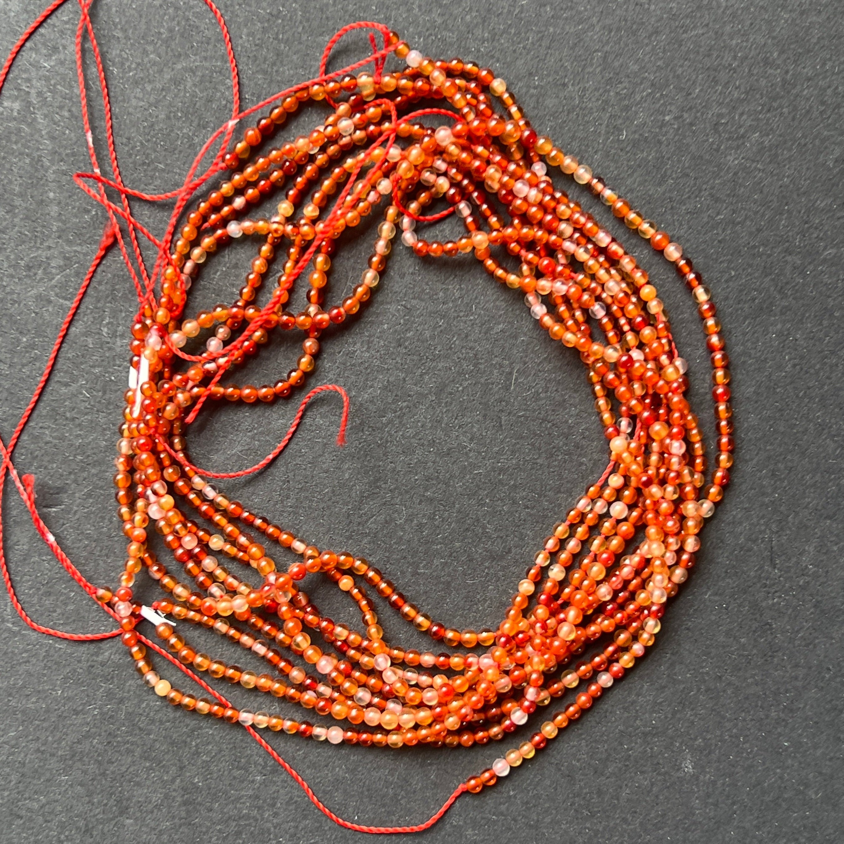 Hilo de CORNALINA, compuesto por cuentas esféricas naturales, perfecto para collares, pulseras u otras joyas hechas a mano.