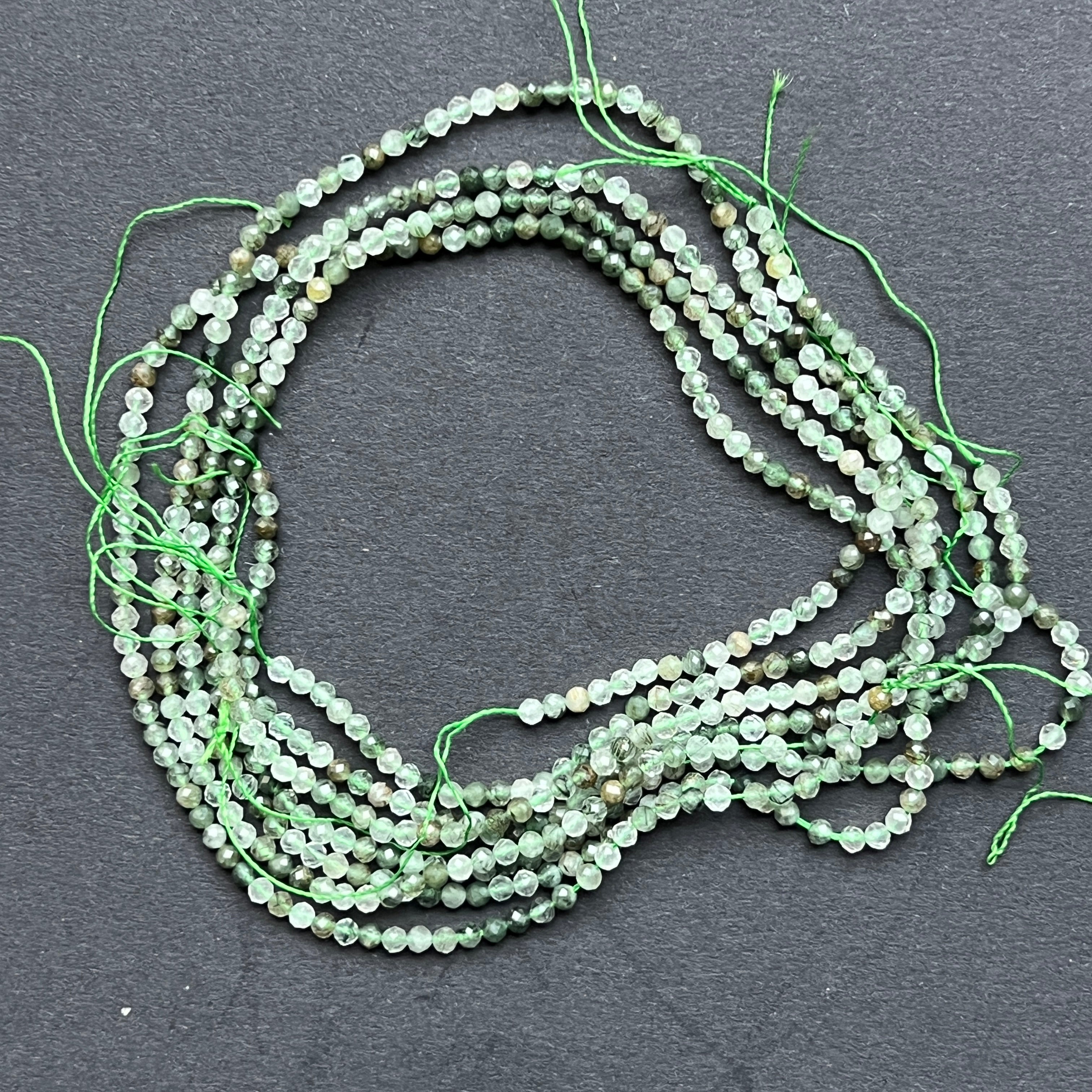 Hilo de piedras semipreciosas esferas facetadas CUARZO RUTILADO VERDE