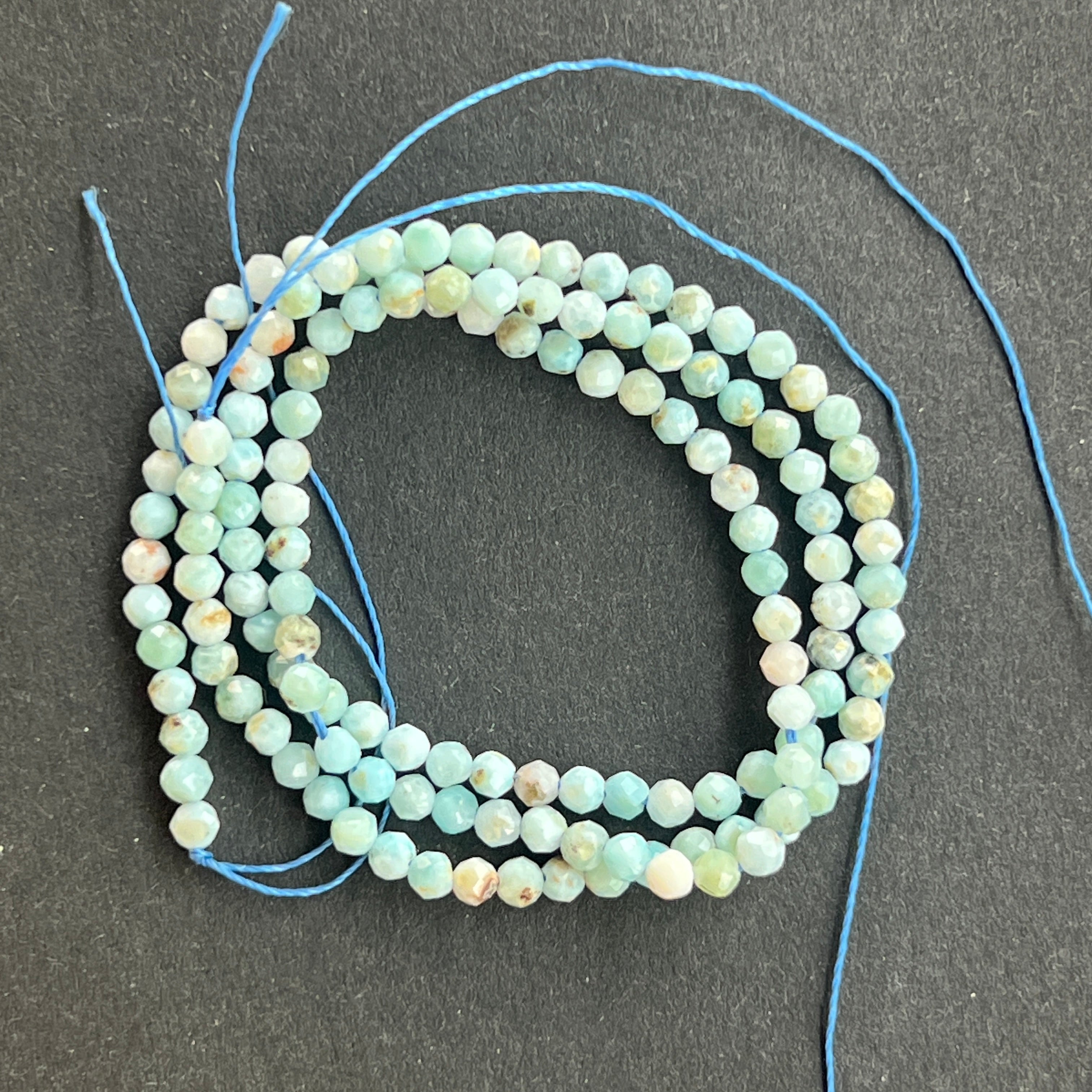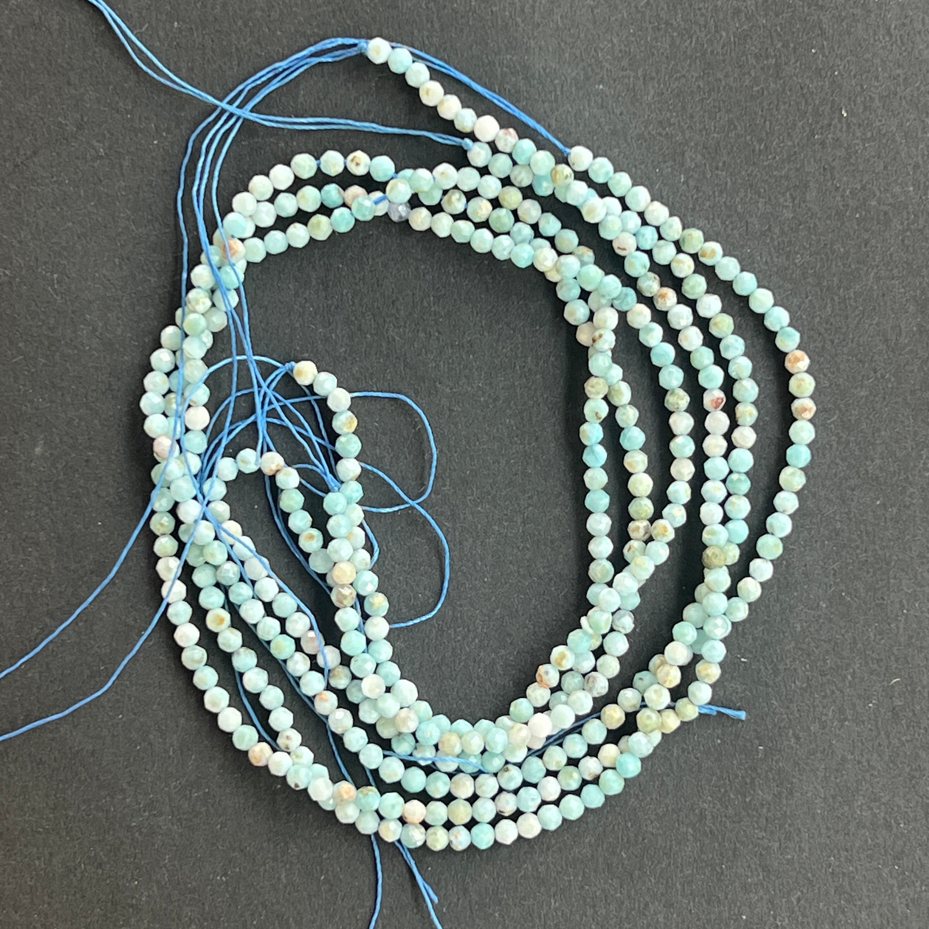 Hilo de LARIMAR, compuesto por cuentas esféricas FACETADAS naturales, perfecto para collares, pulseras u otras joyas hechas a mano.