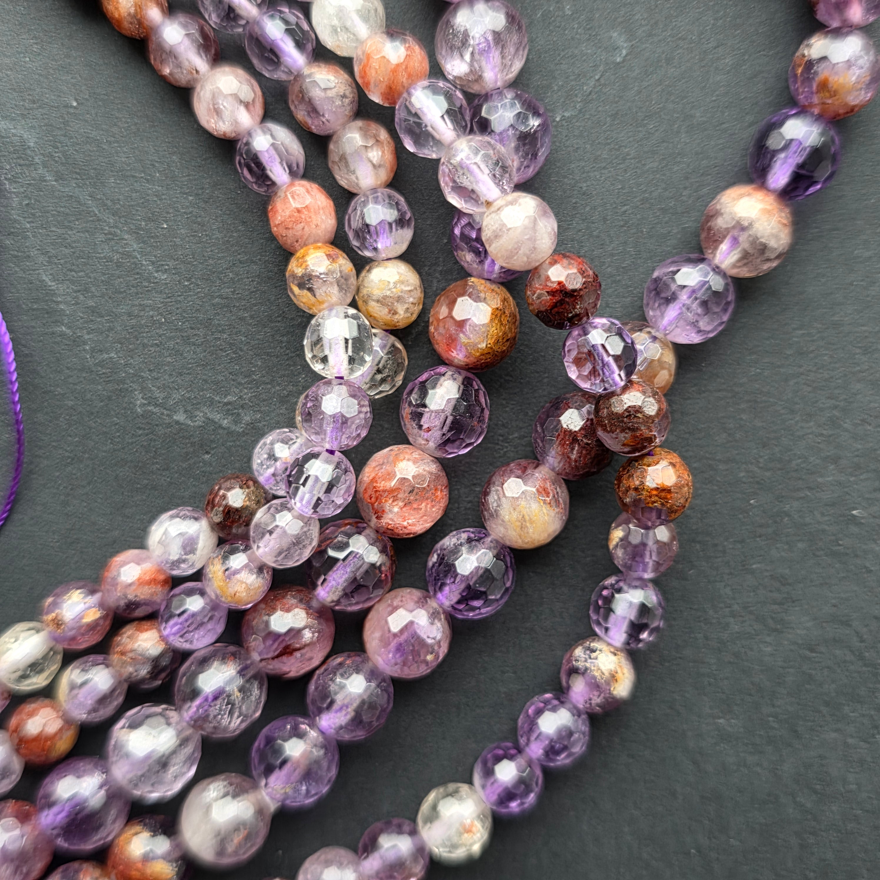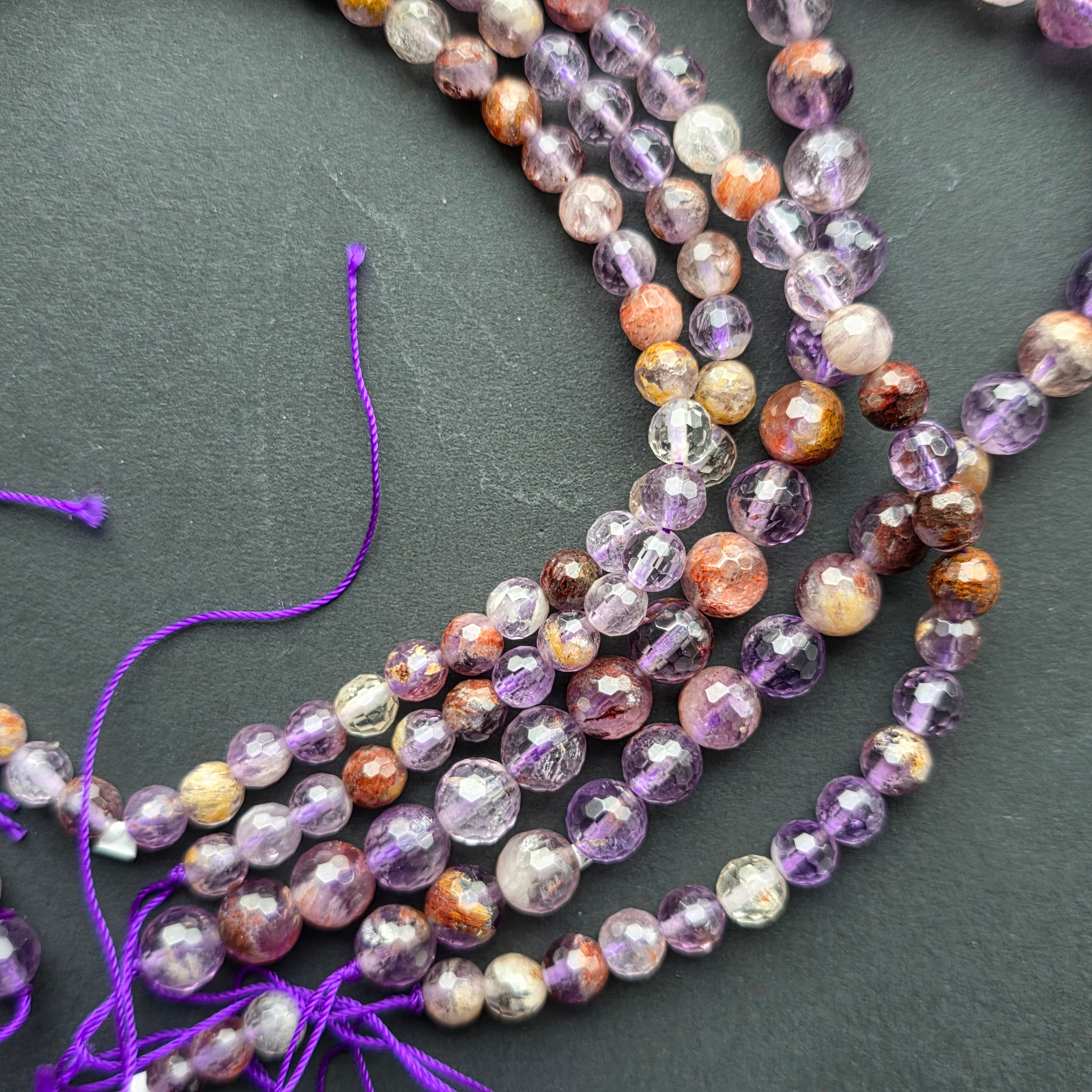 Súper 7 cuerdas, compuesto por cuentas esféricas FACETADAS naturales, perfecto para collares, pulseras u otras joyas hechas a mano.