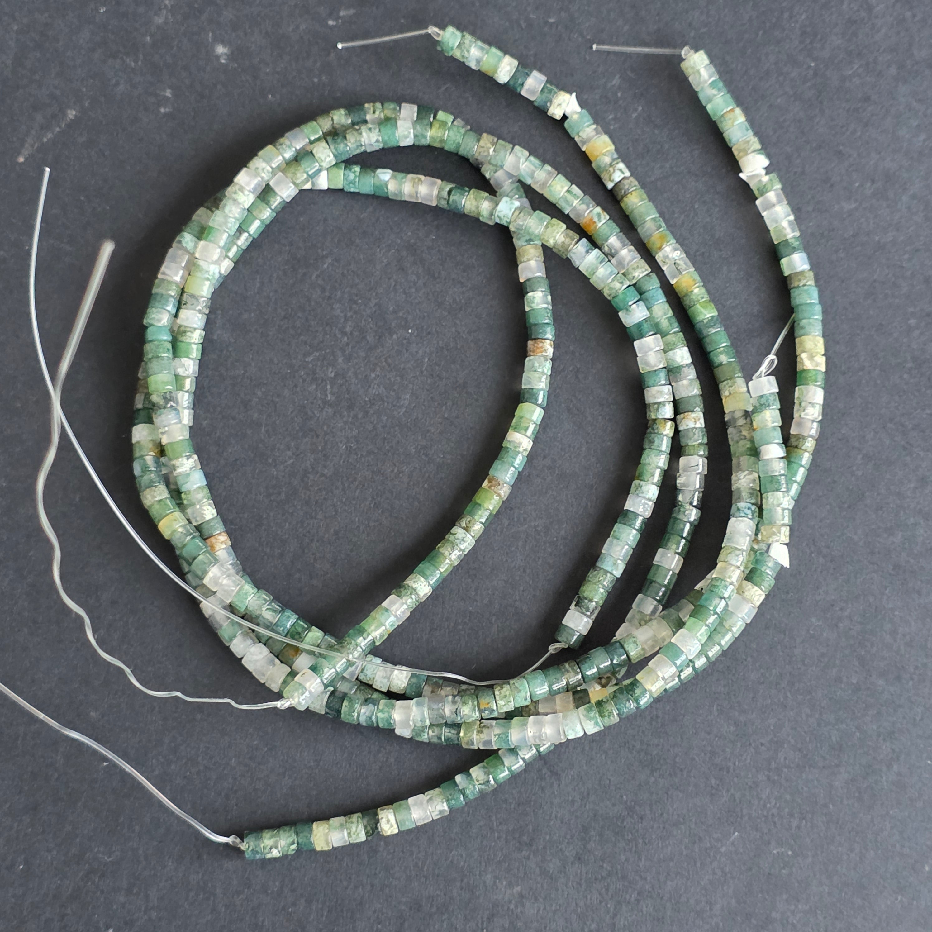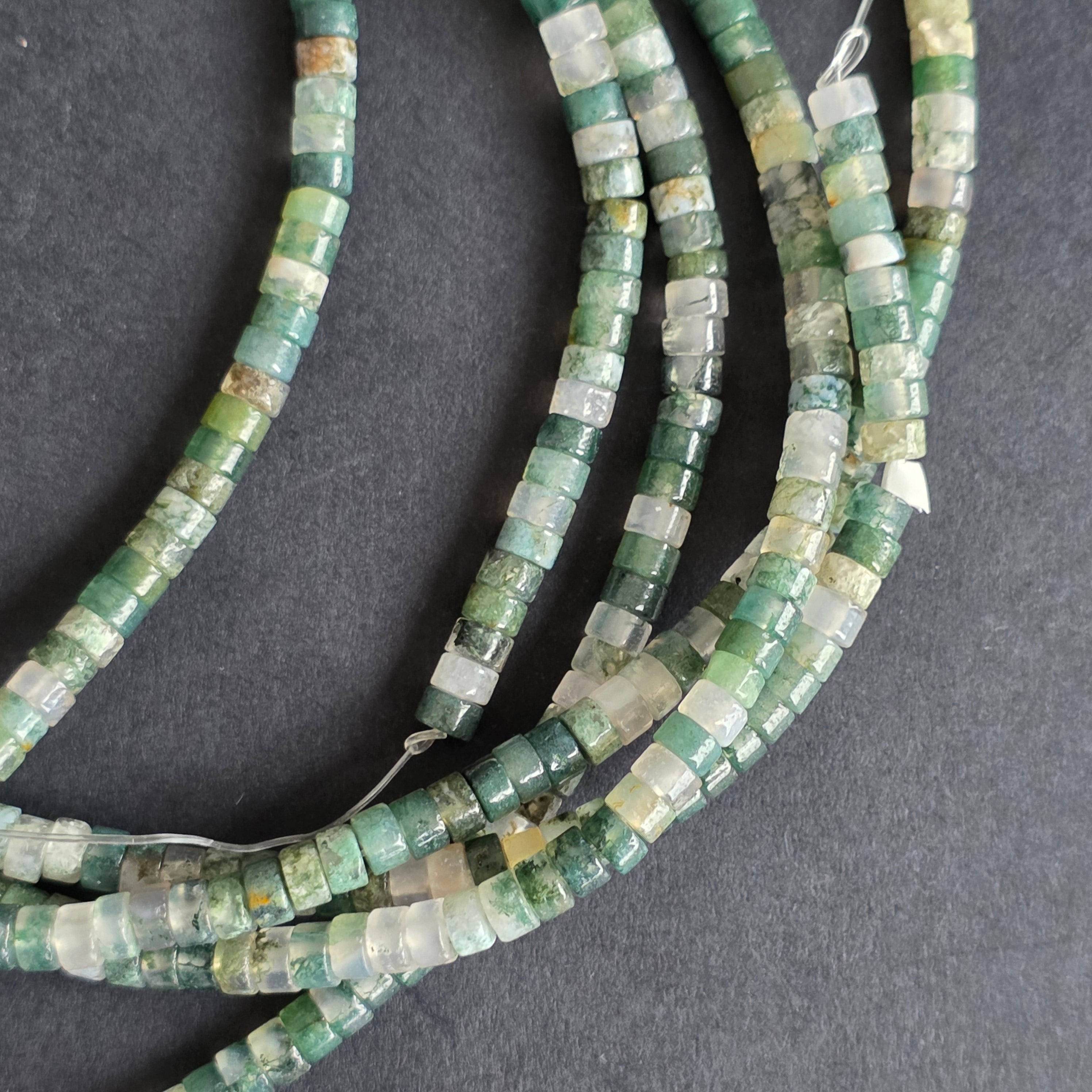 Hilo de AGATA MUSGO,compuesto por discos naturales,perfecto para collares, pulseras u otras joyas hechas a mano.