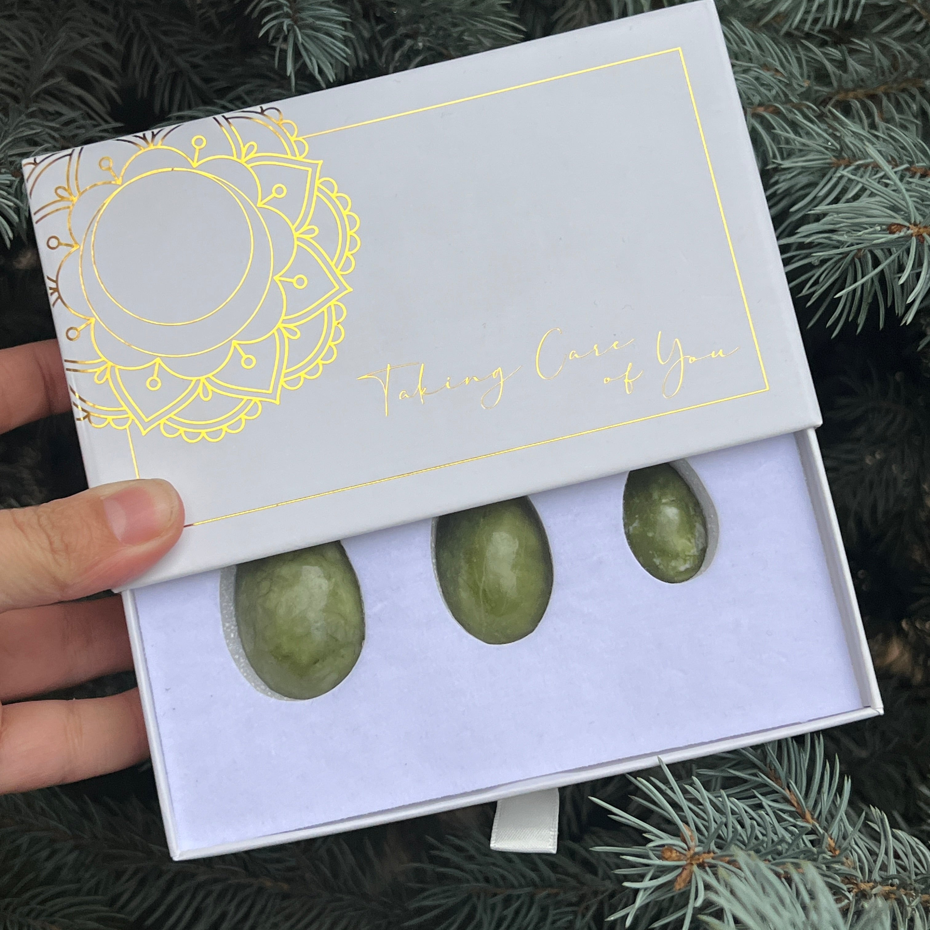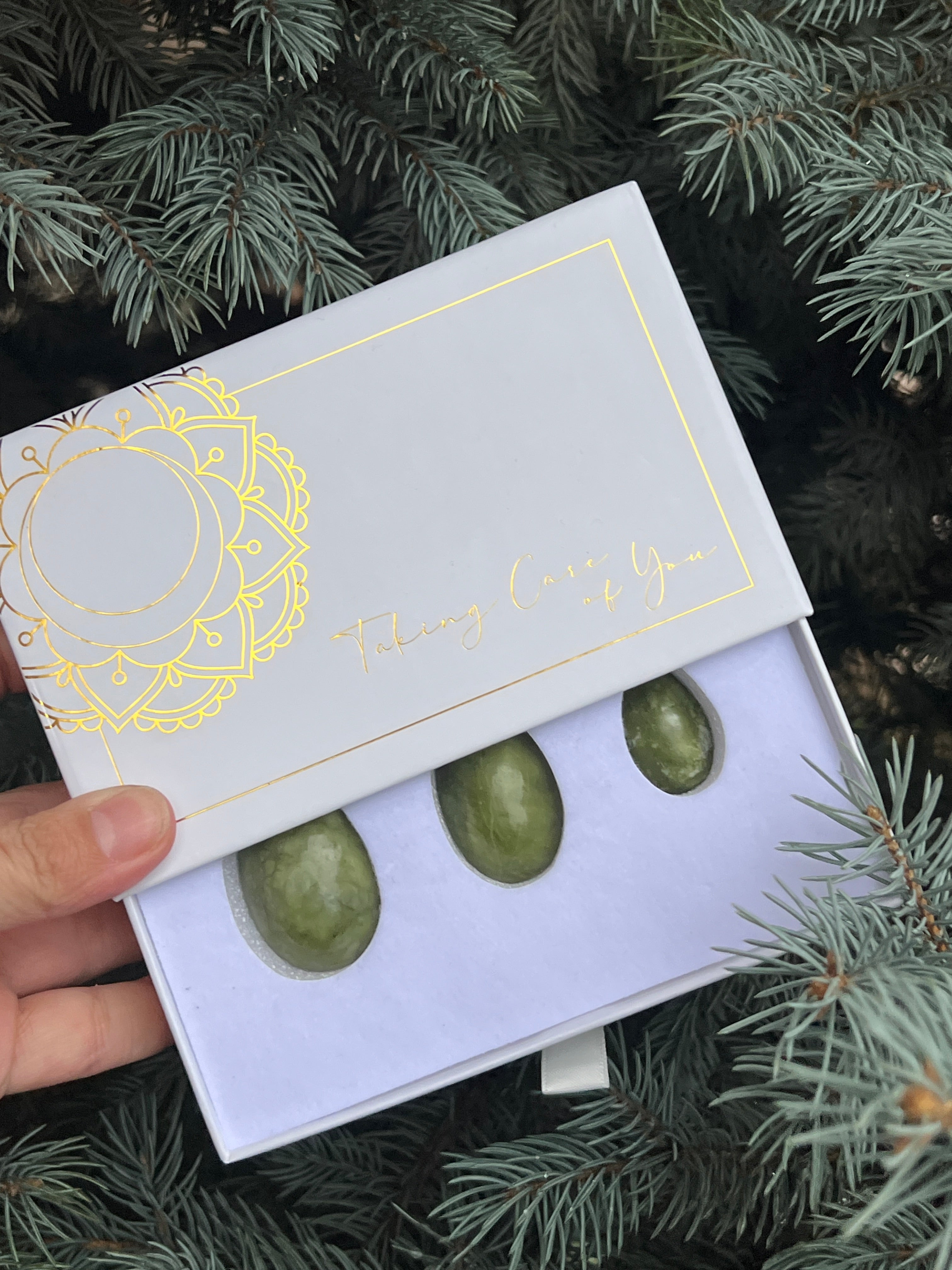 Huevos de Yoni de Jade Verde - Juego de 3 Piezas