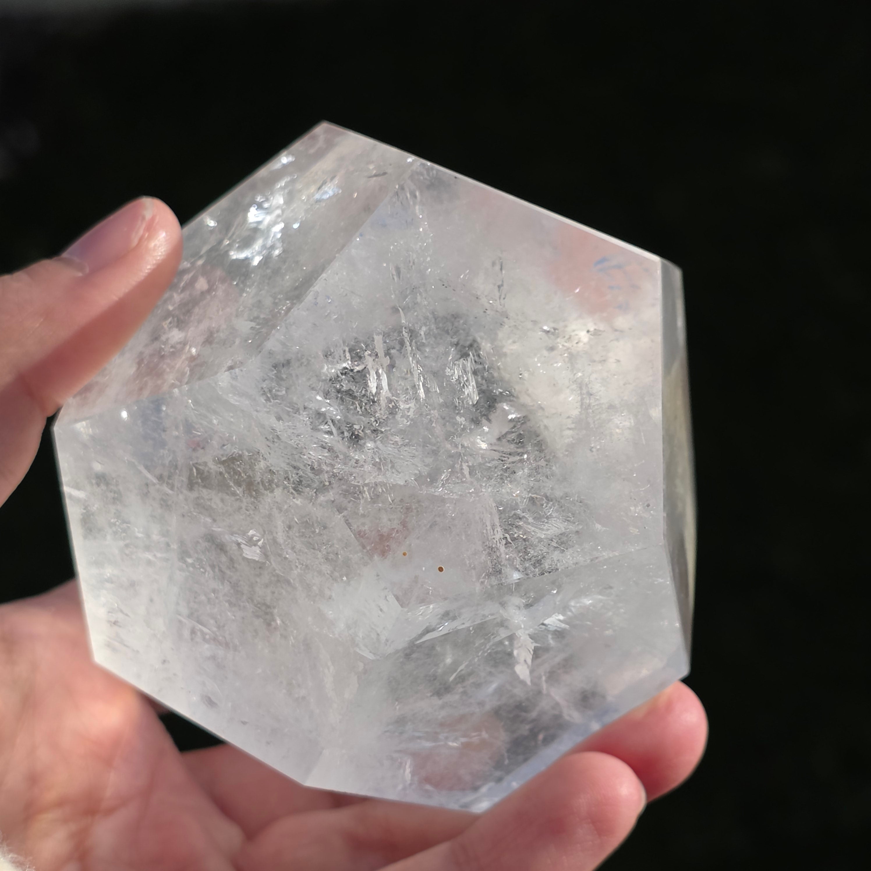 Hecho de cristal de roca – la piedra de la claridad y de la amplificación de la energía – este icosaedro aporta equilibrio, fluidez y apertura hacia la transformación interior.