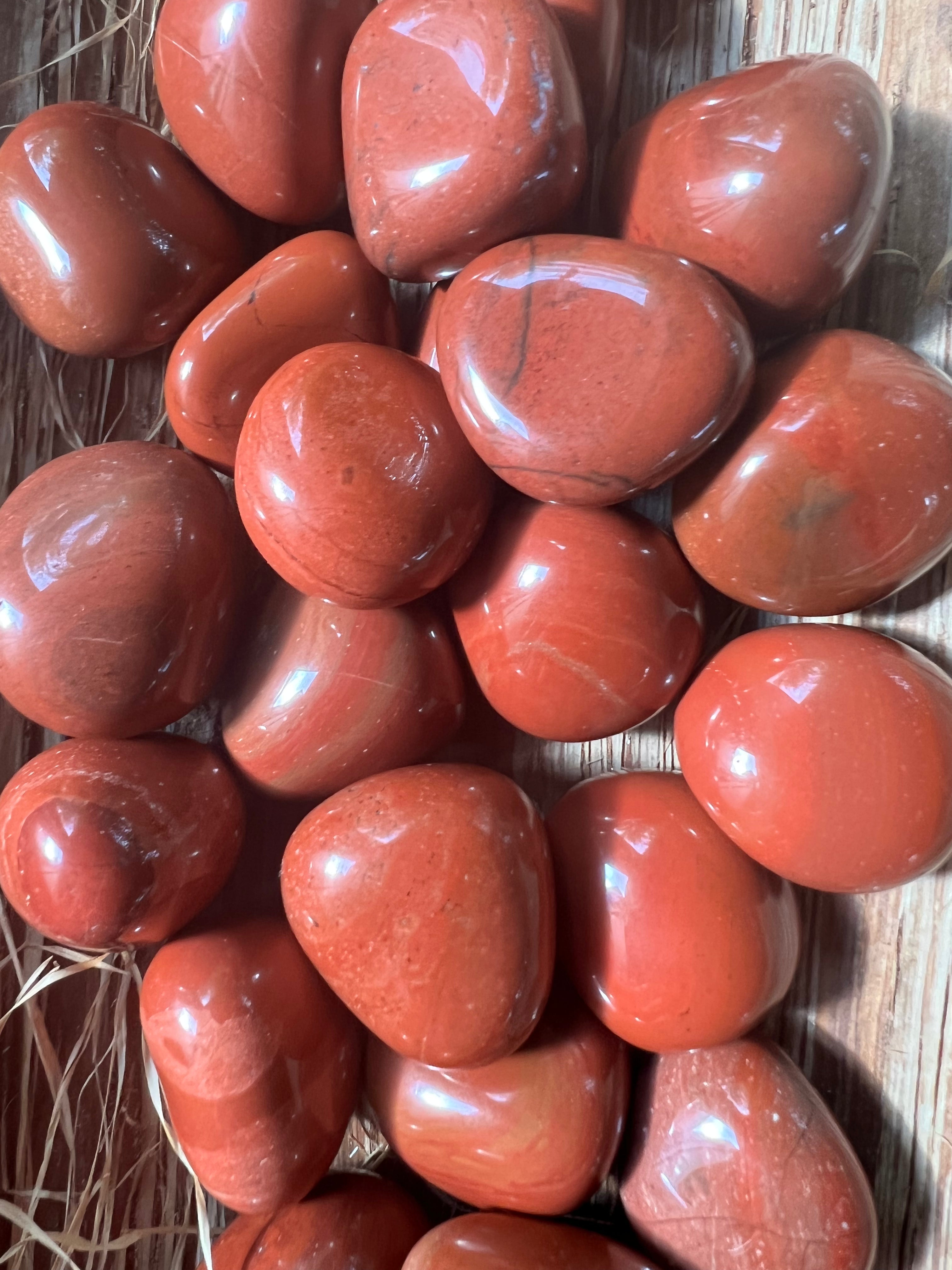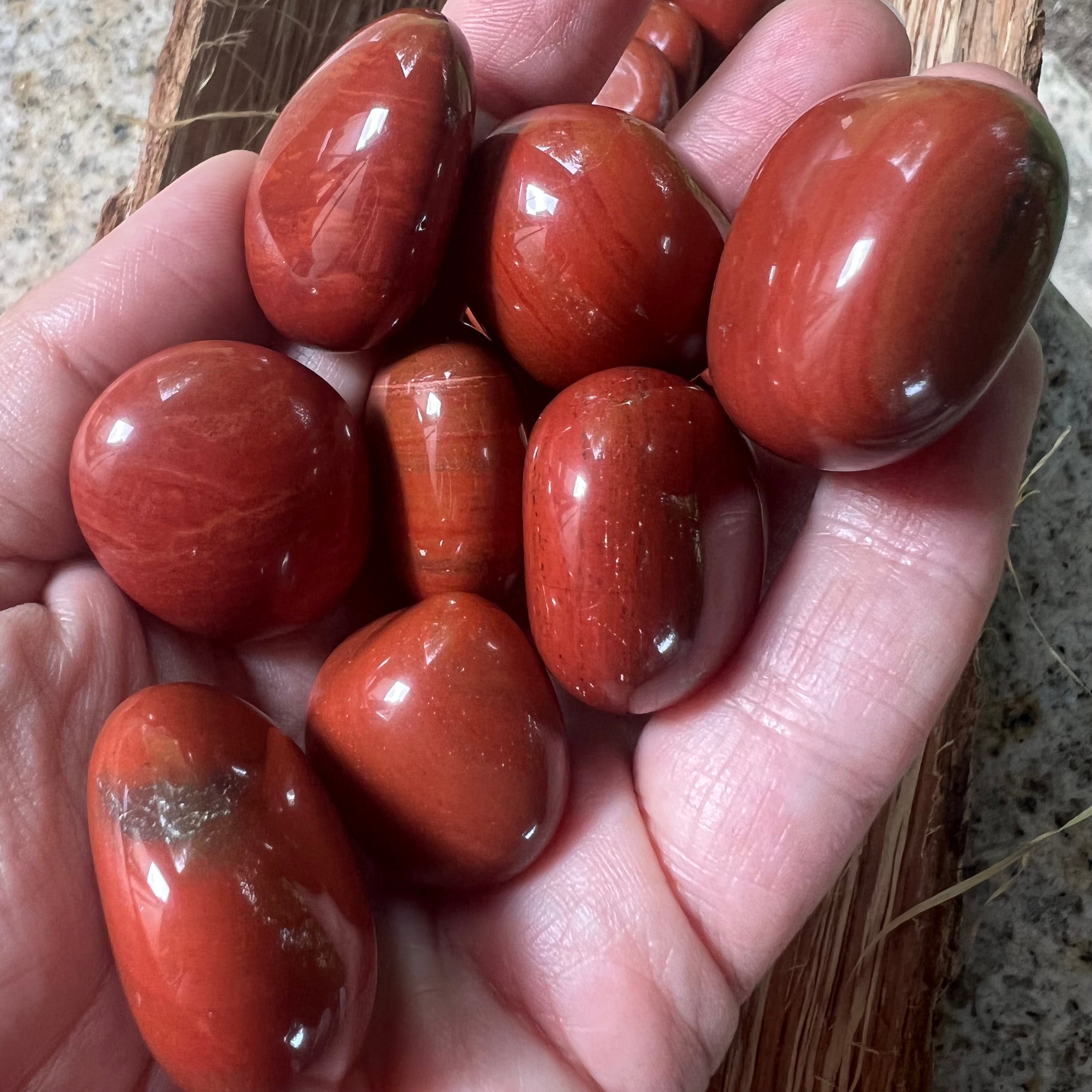 Jaspe rojo piedra rodado mini, dimensiones entre 2-5 cm. El precio varía según el tamaño de la piedra, por favor seleccione el tamaño deseado. El precio corresponde a una pieza.