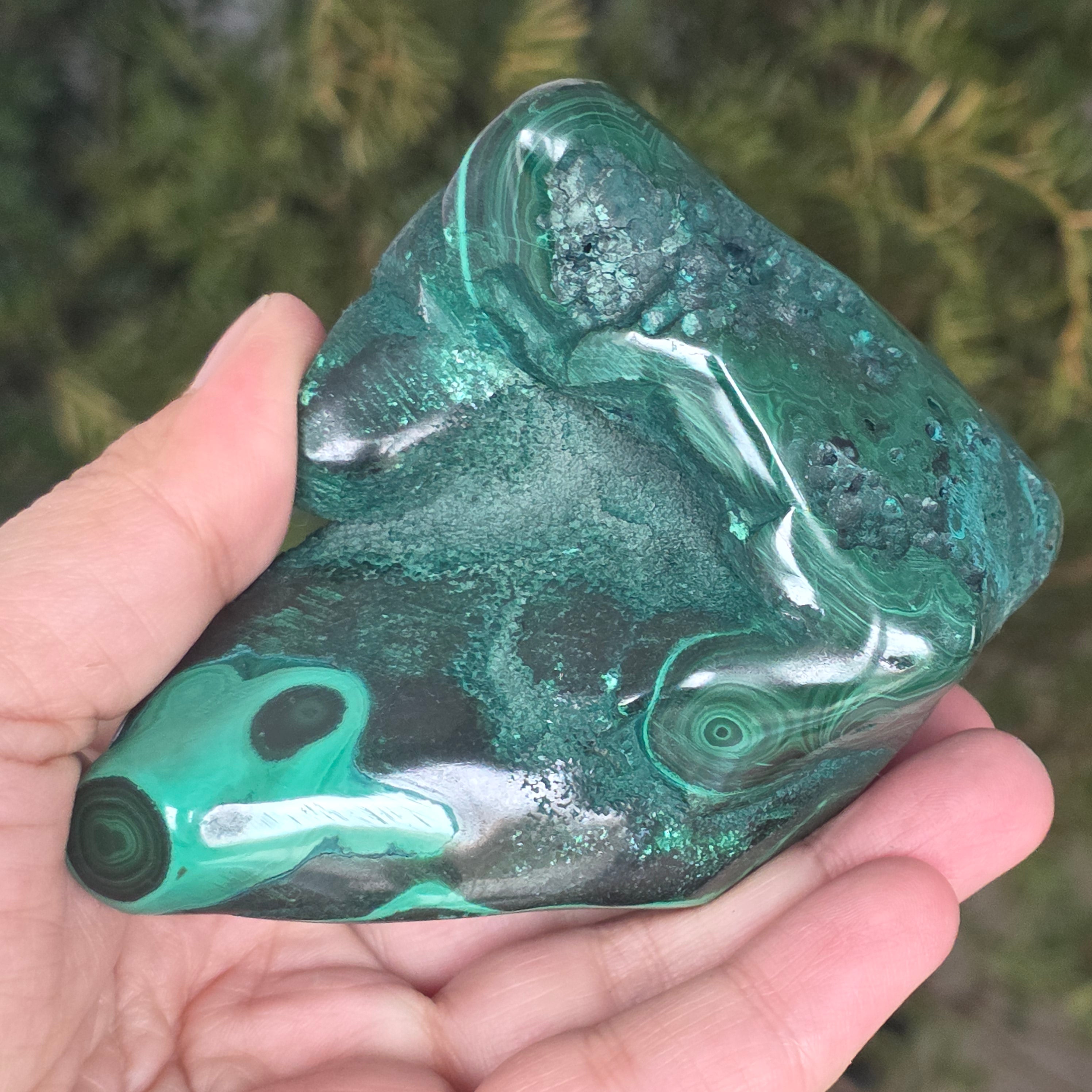 La malaquita se puede utilizar en meditación, como joyería o para añadir un aspecto natural y elegante al hogar.