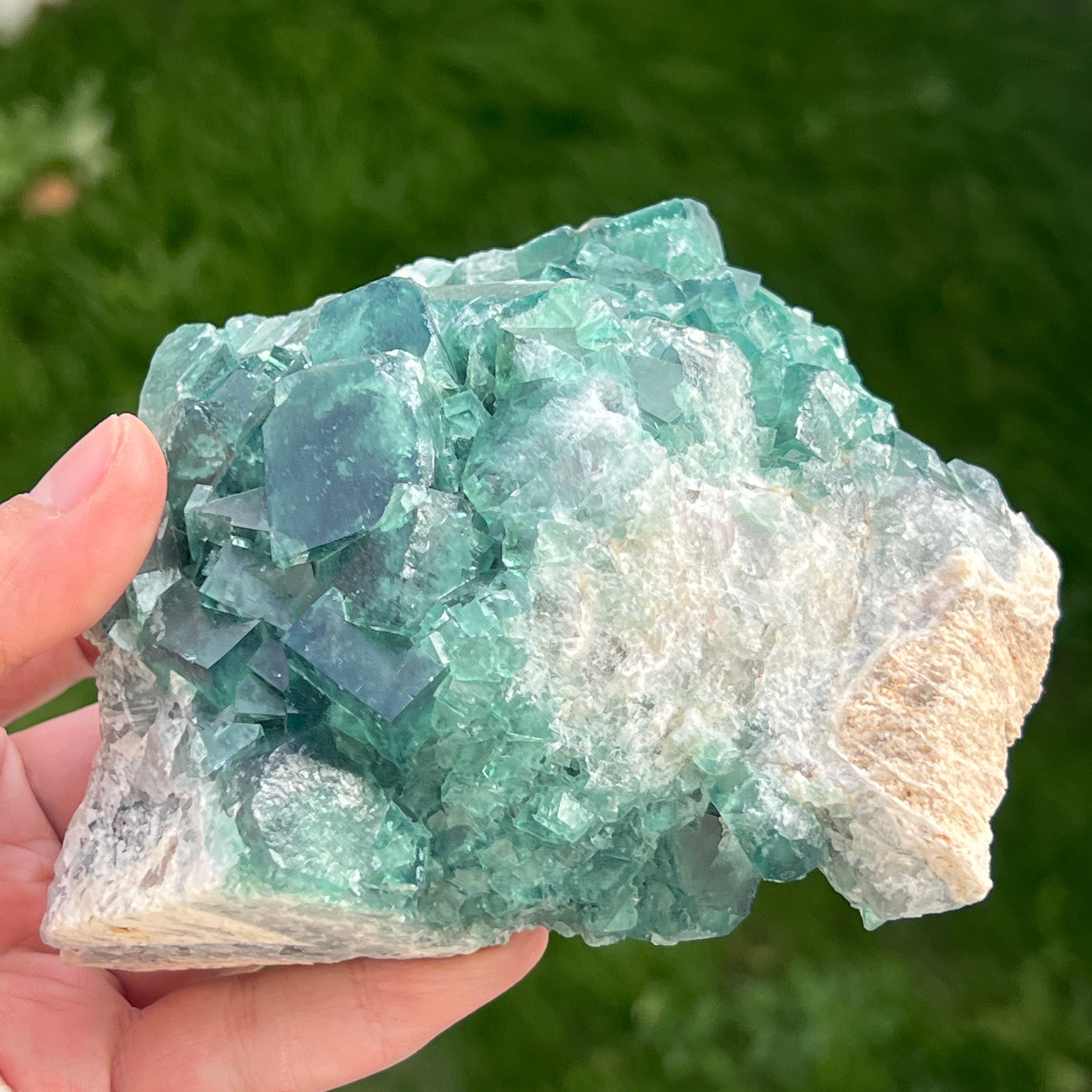 Ejemplar de fluorita cúbica modelo 5, tamaño 13 x 10 veces 5 centímetros