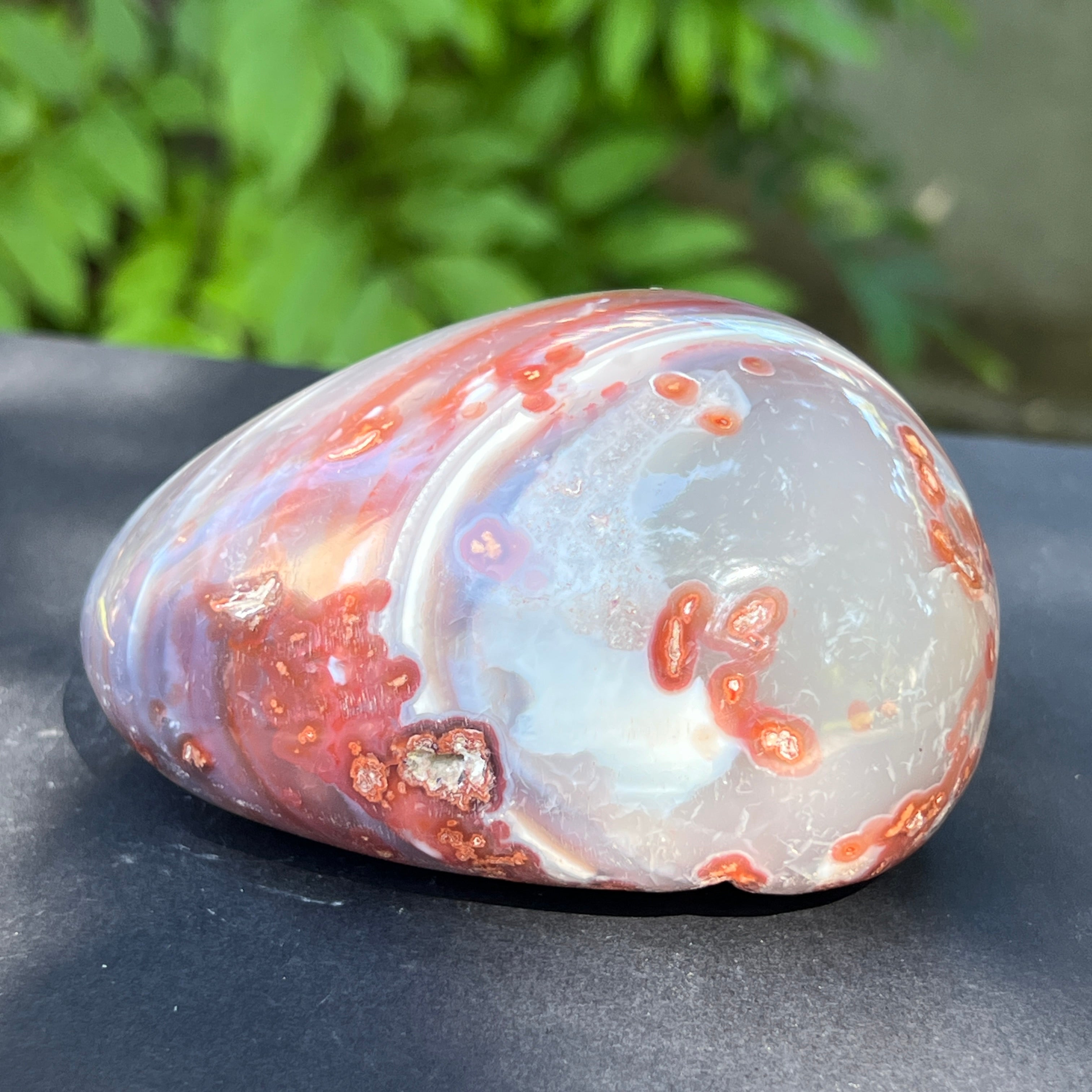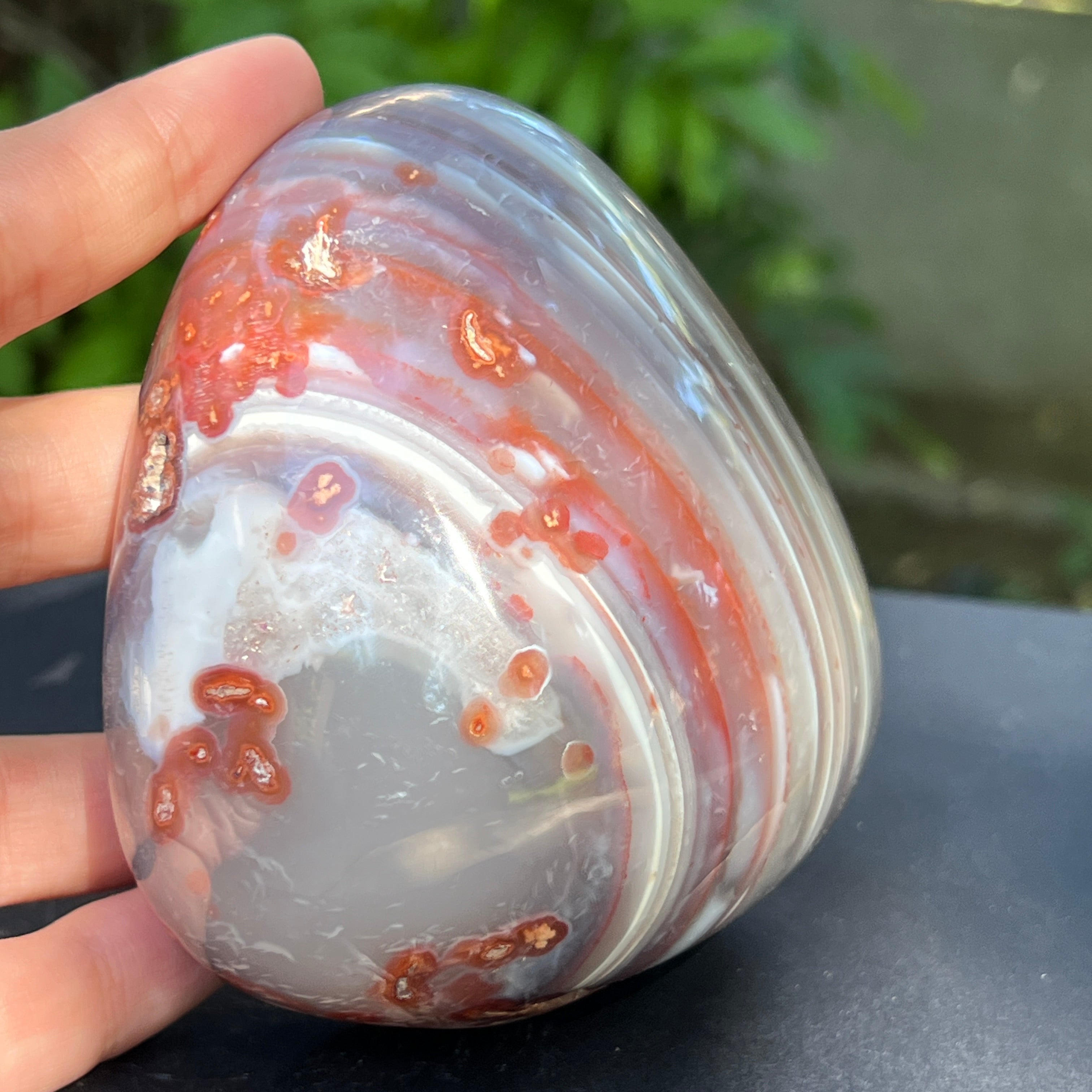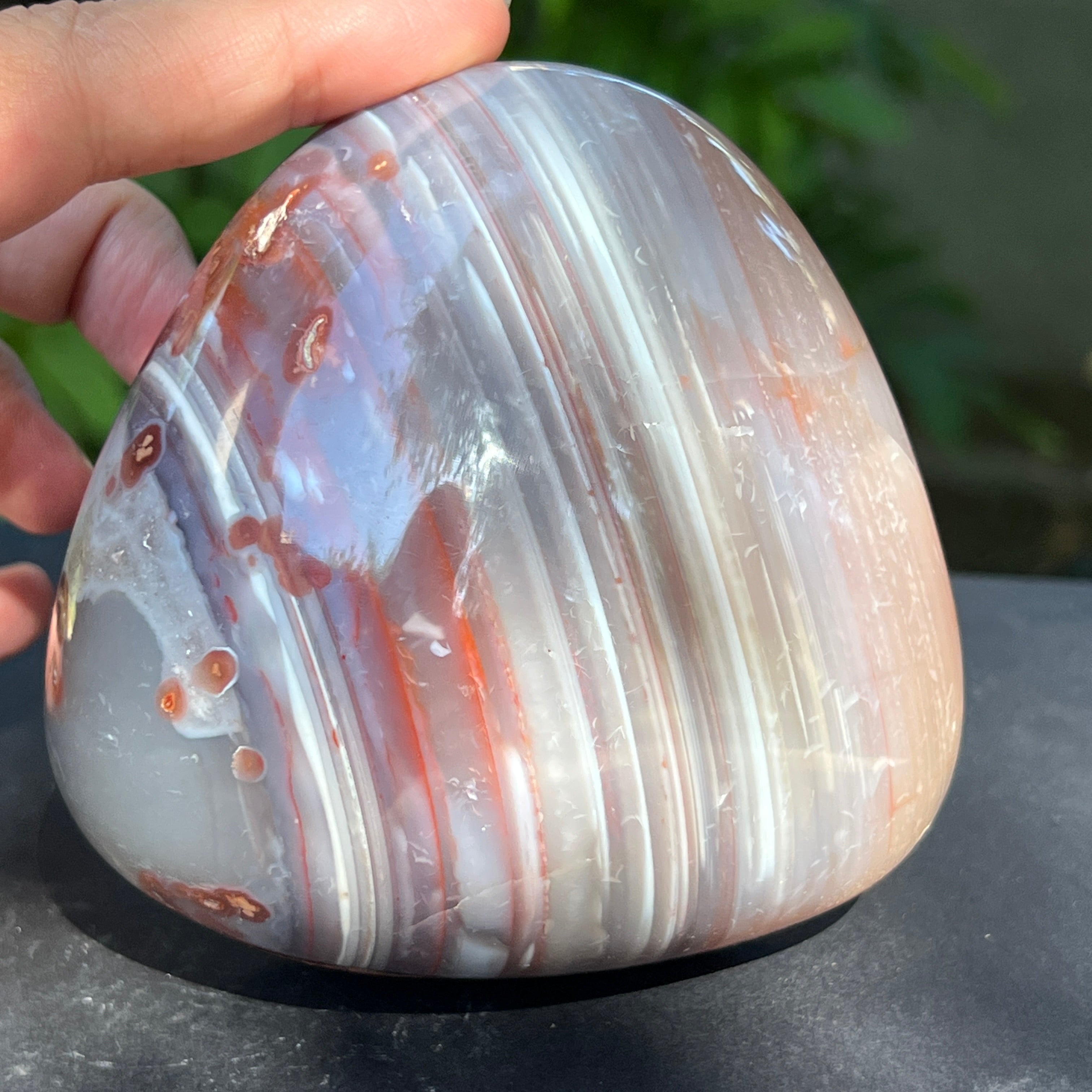 El ágata de Botswana es una variedad rara y elegante de ágata, reconocida por sus finas bandas en tonos de gris, rosa, blanco y marrón, proveniente de Botswana. Es una piedra de consuelo emocional y protección, calmando ansiedades y miedos profundos. Apoya los procesos de transformación interior, ayudando a liberar el pensamiento negativo. Está asociada con el chakra raíz y el chakra del tercer ojo (Ajna – chakra 6), favoreciendo la estabilidad interior y la claridad mental. El ágata de Botswana se usa a menudo en meditación para aumentar la concentración y la intuición.