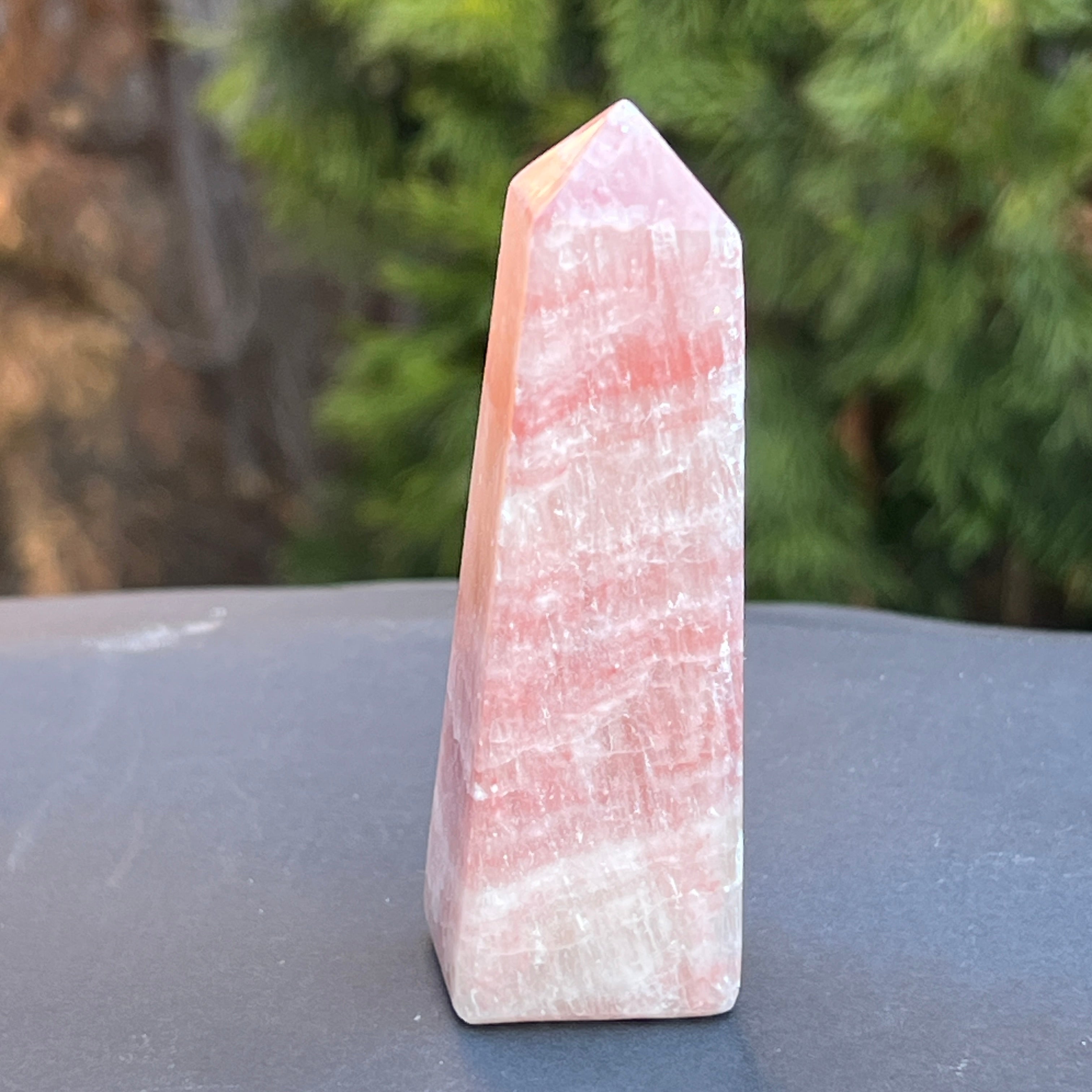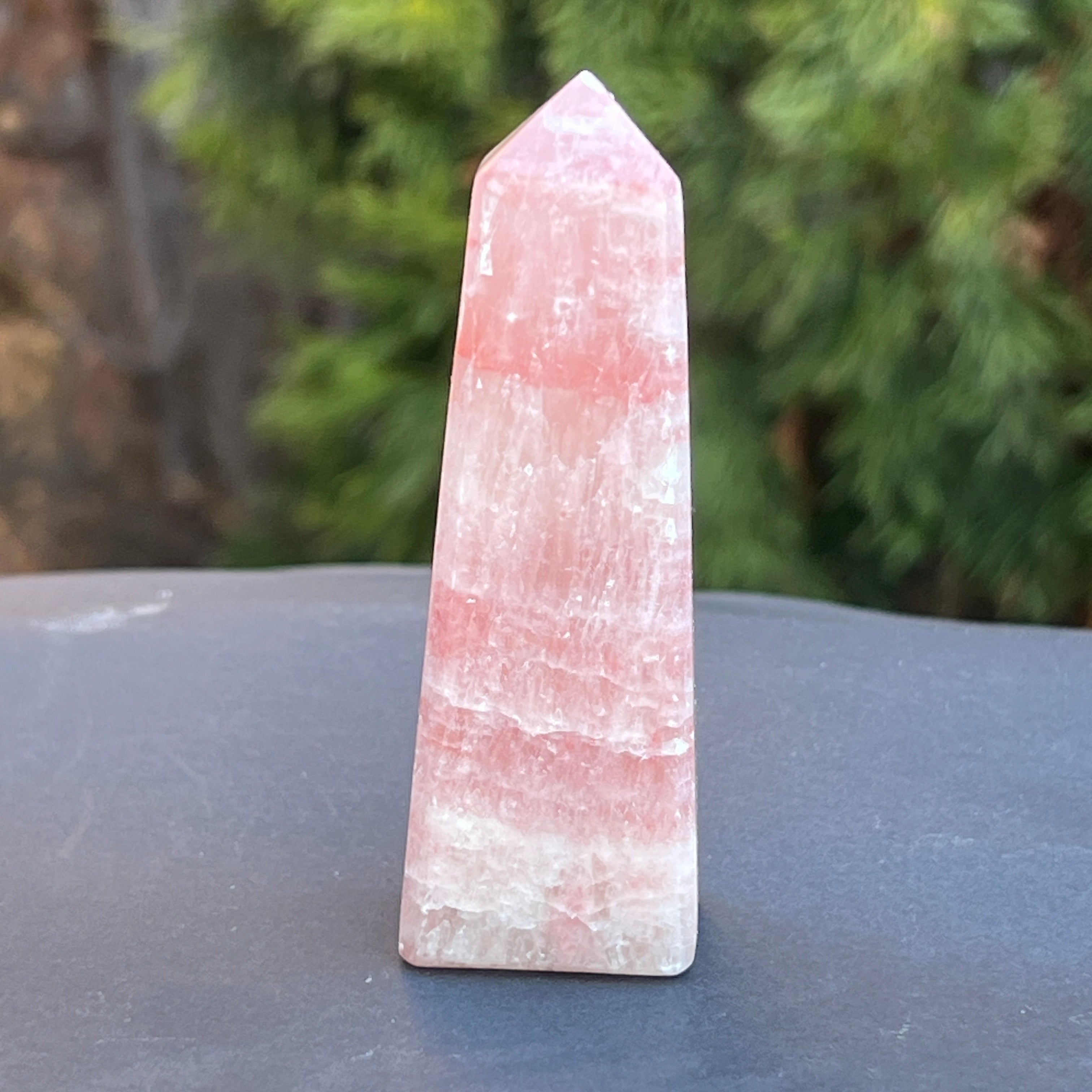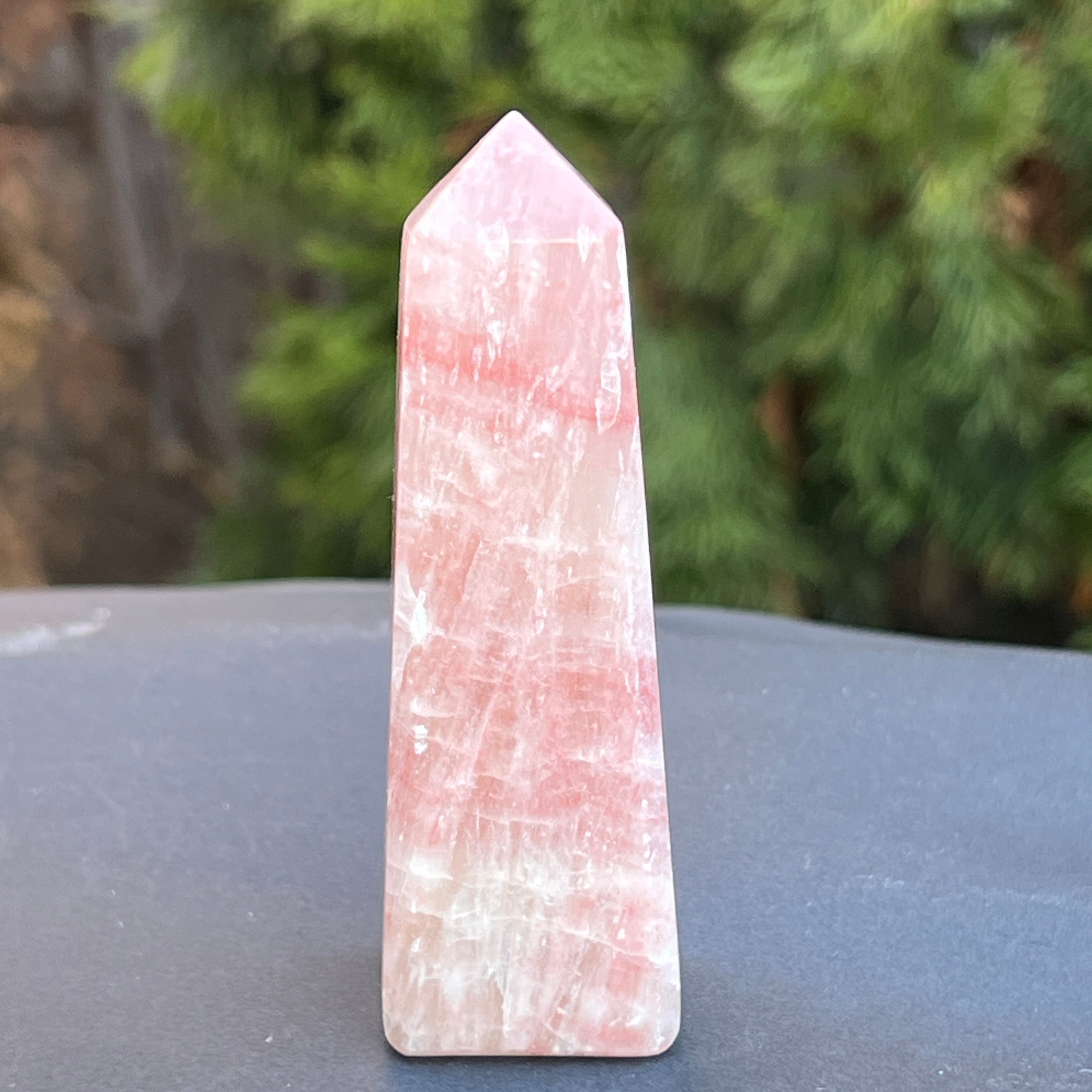 Obelisco de calcita rosa modelo 1