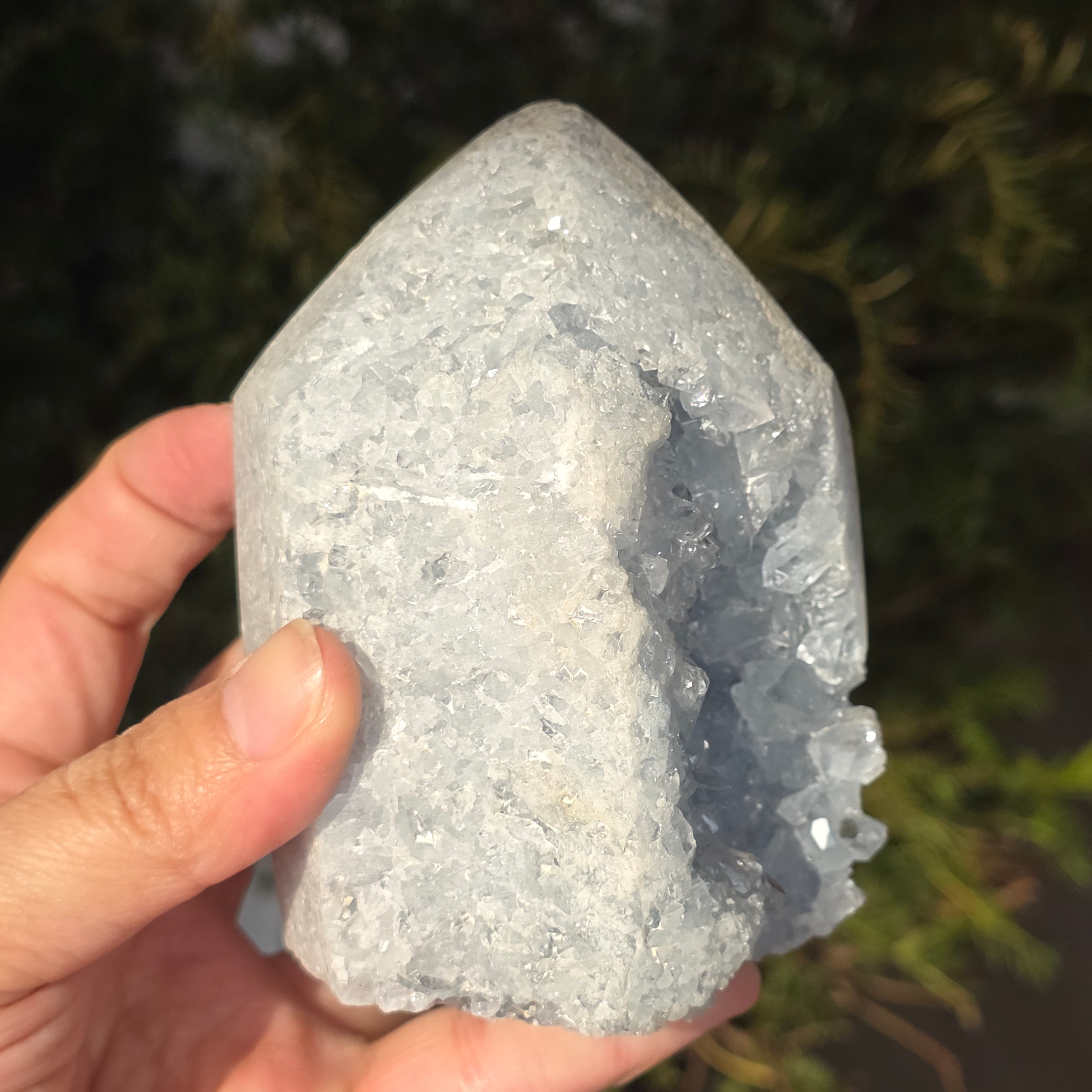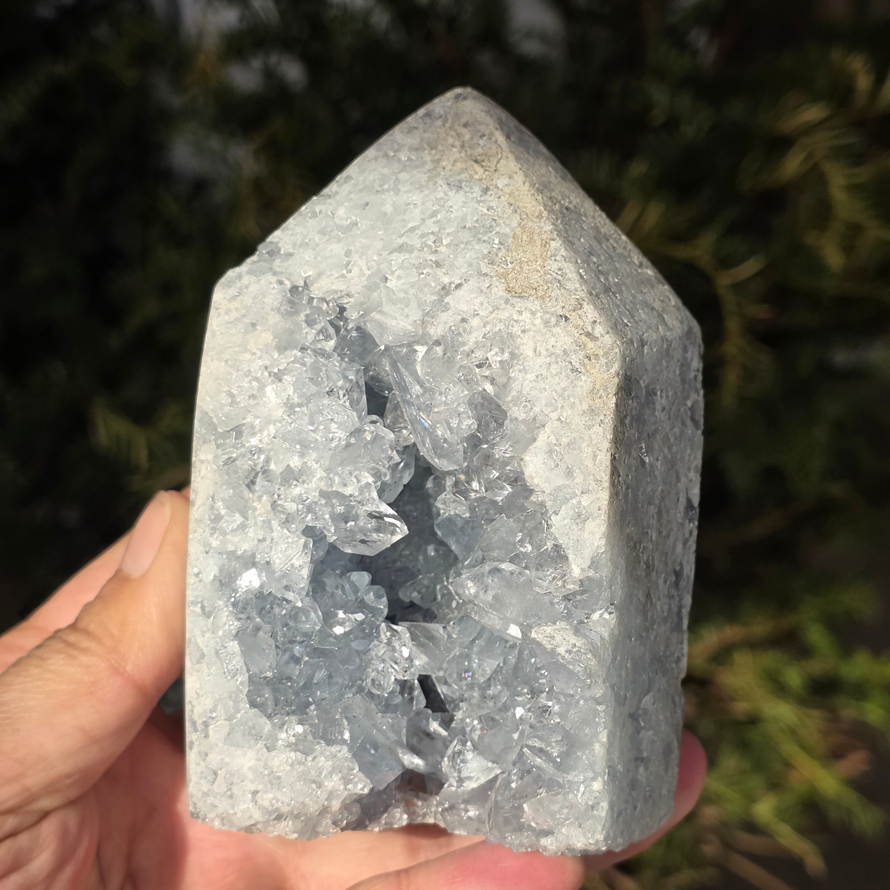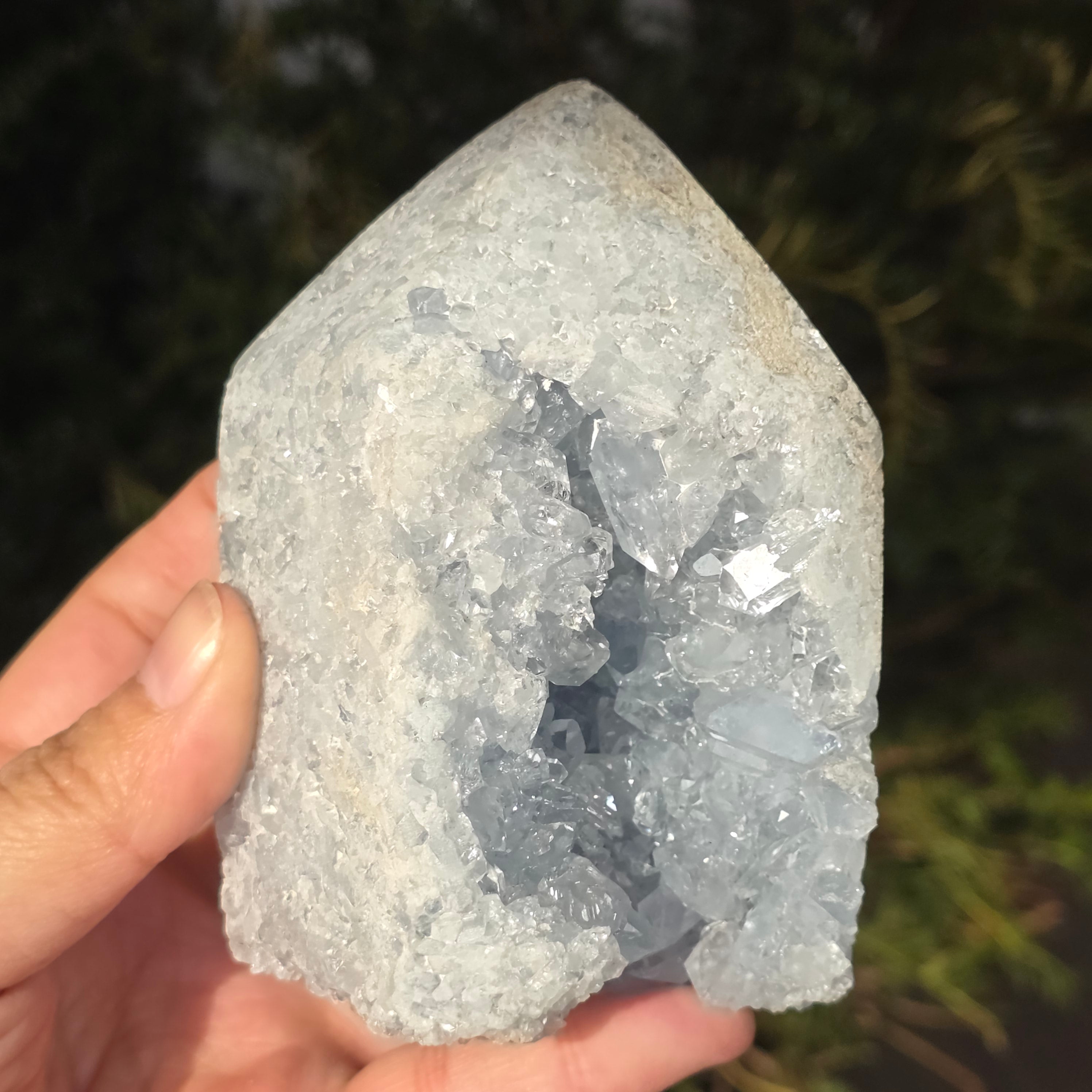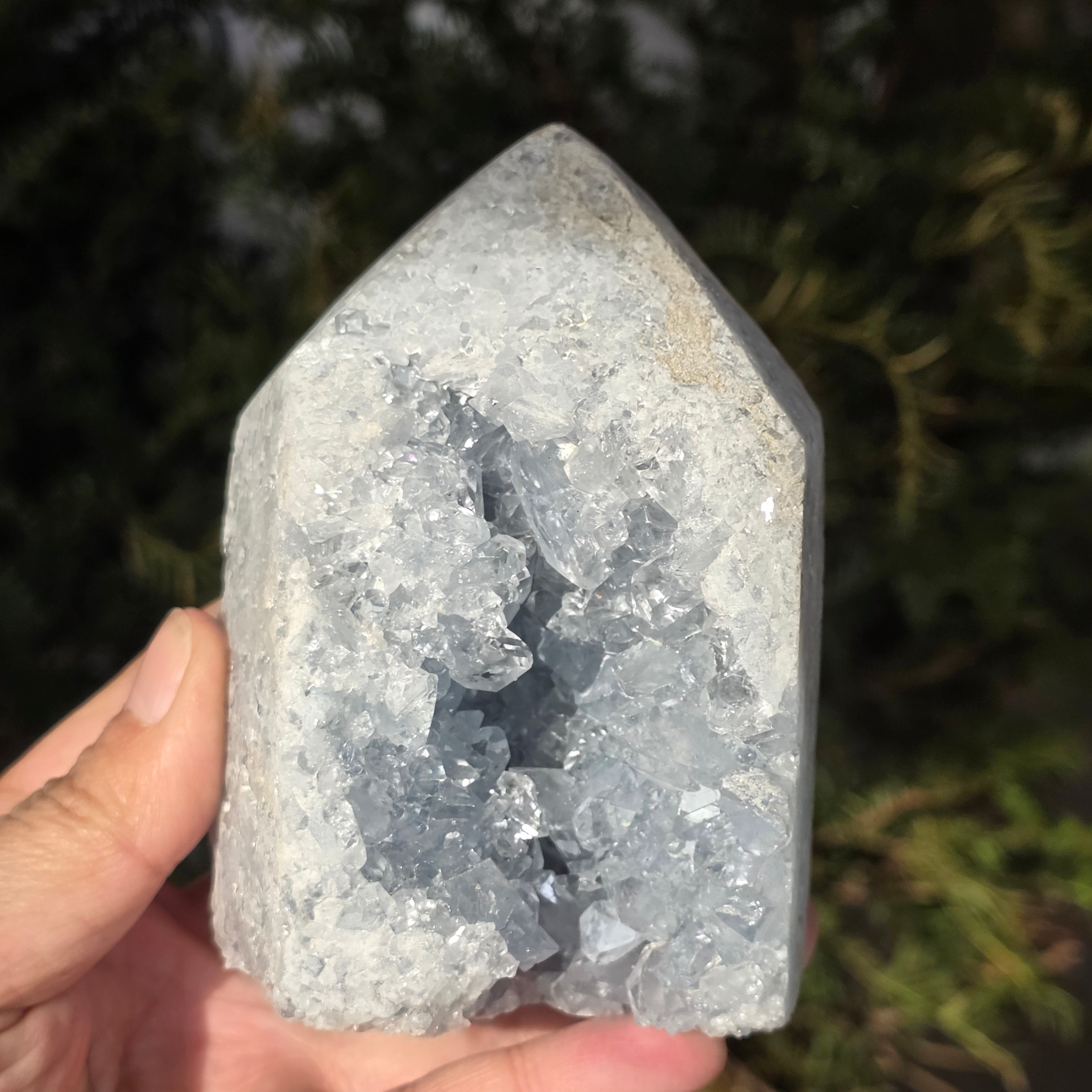 La celestita es una piedra semipreciosa de color azul o incoloro, formada por sulfato de estroncio. Tiene propiedades calmantes y relajantes, siendo a menudo utilizada en la meditación y en prácticas espirituales para promover la paz interior y la claridad mental. La celestita está asociada con el chakra de la garganta y puede ayudar a la comunicación clara y a la expresión de las emociones. También se cree que mejora la creatividad, la intuición y las habilidades psíquicas.
