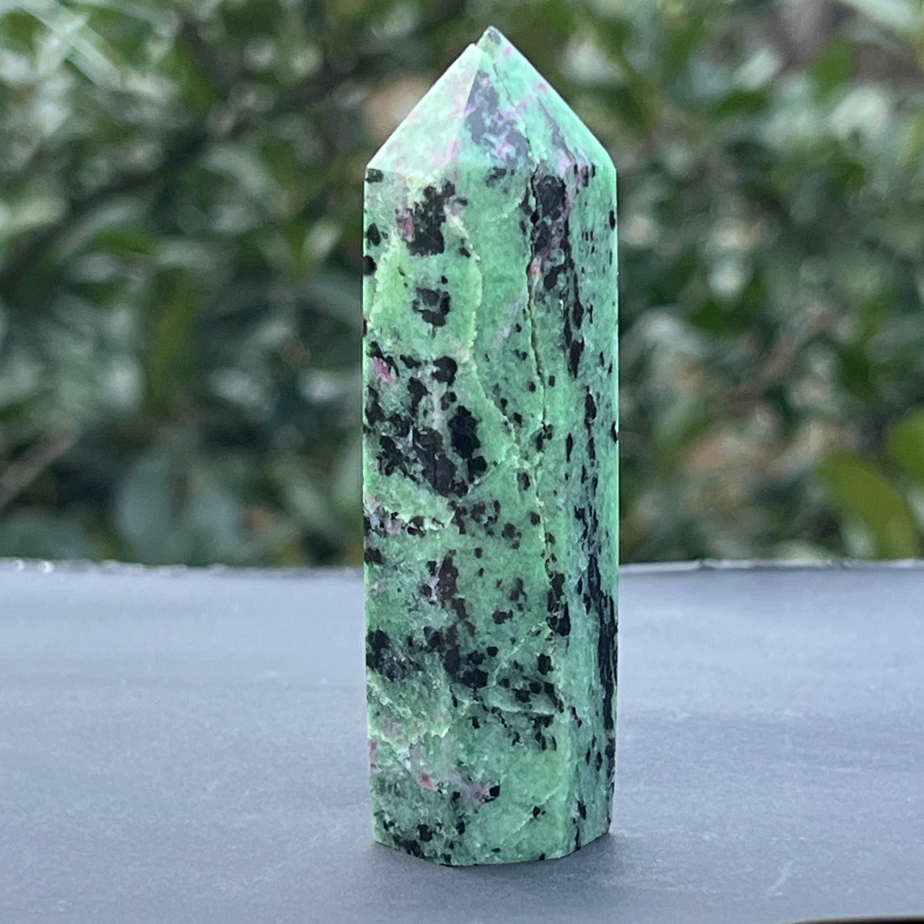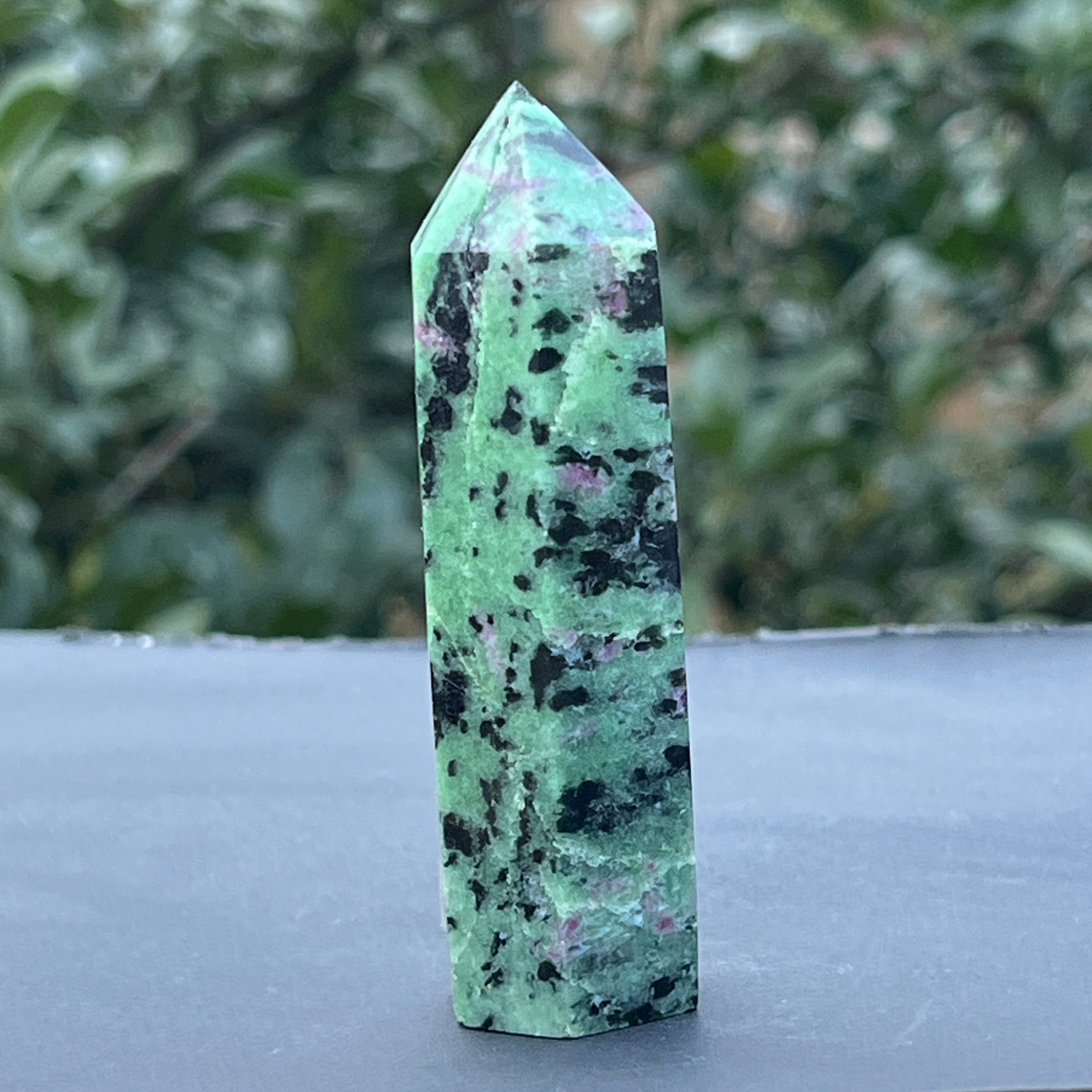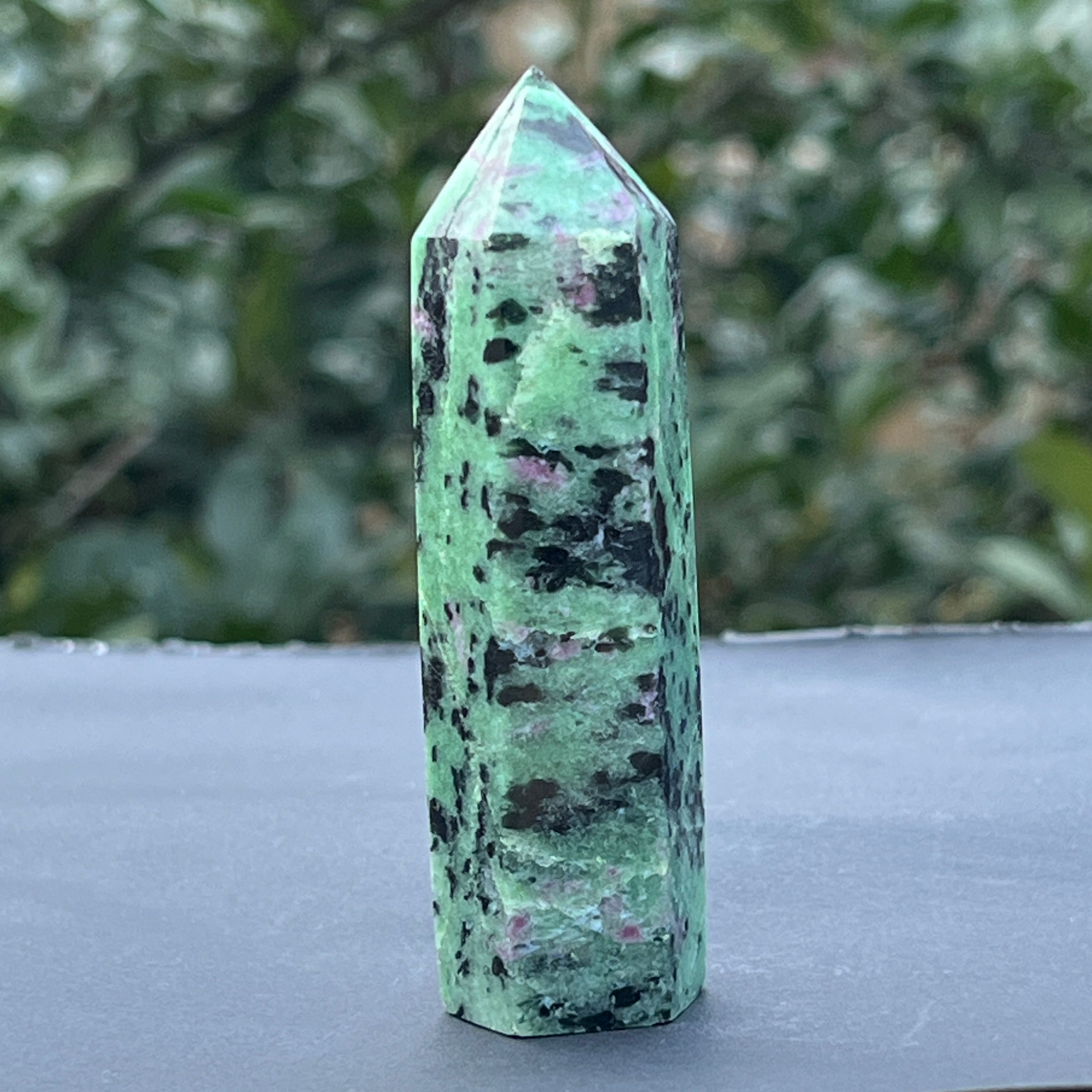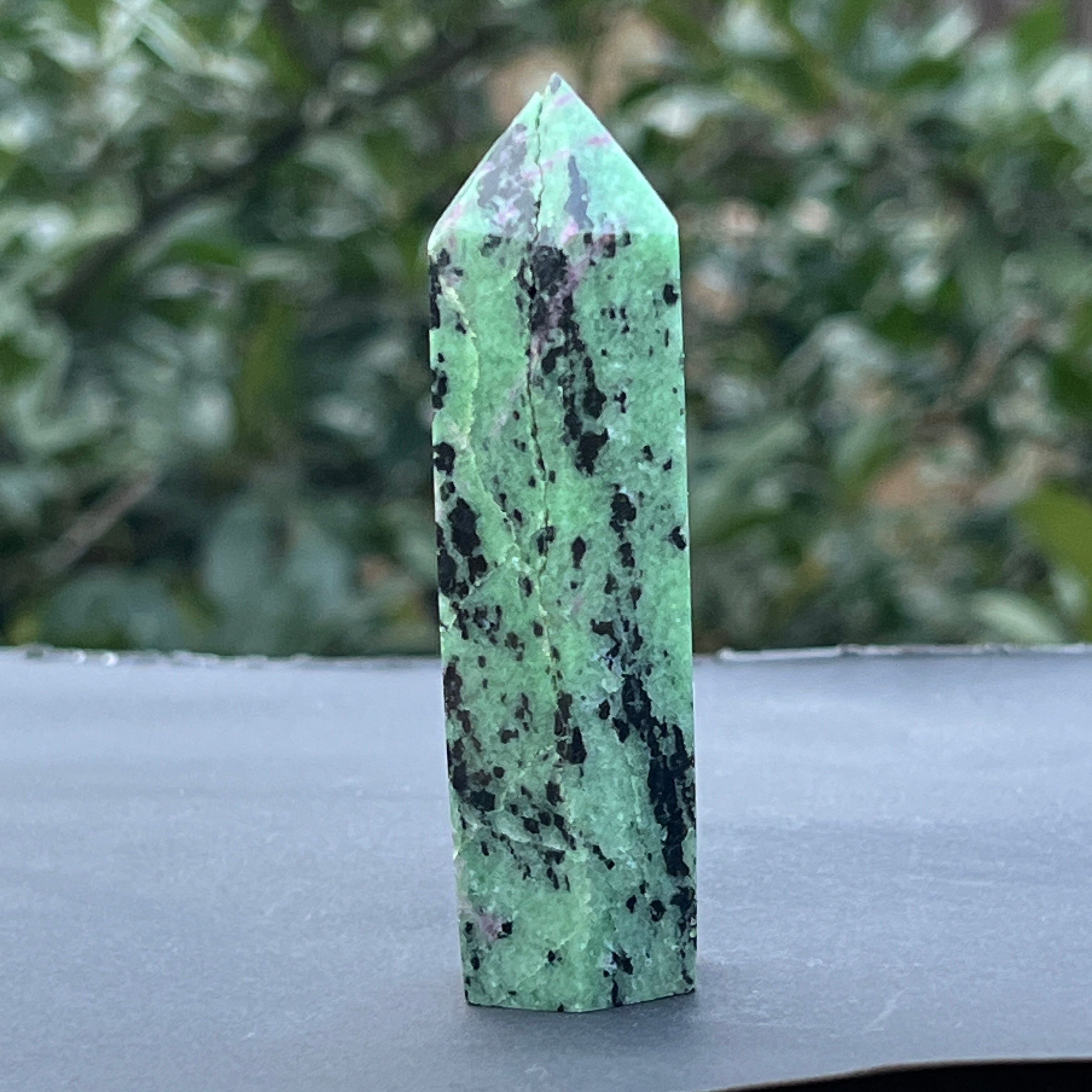 Obelisco de rubí en zoisita modelo 3, tamaño: 8.5 * 2.3 * 2.2 cm