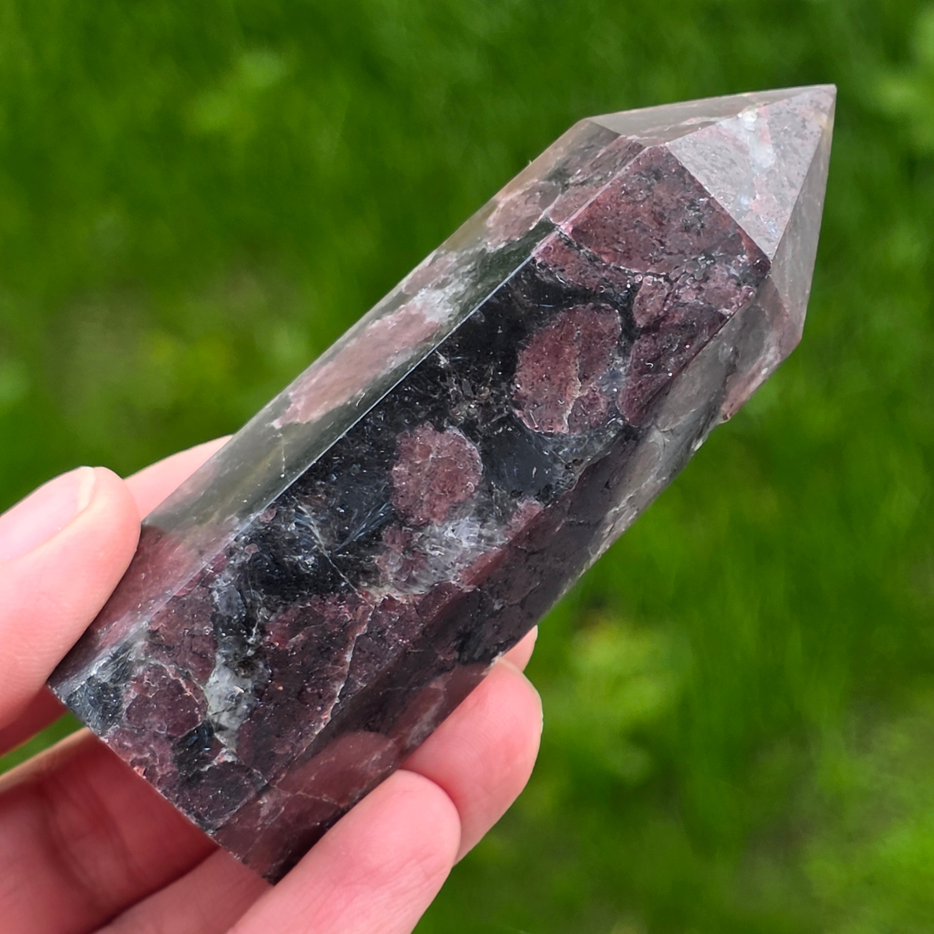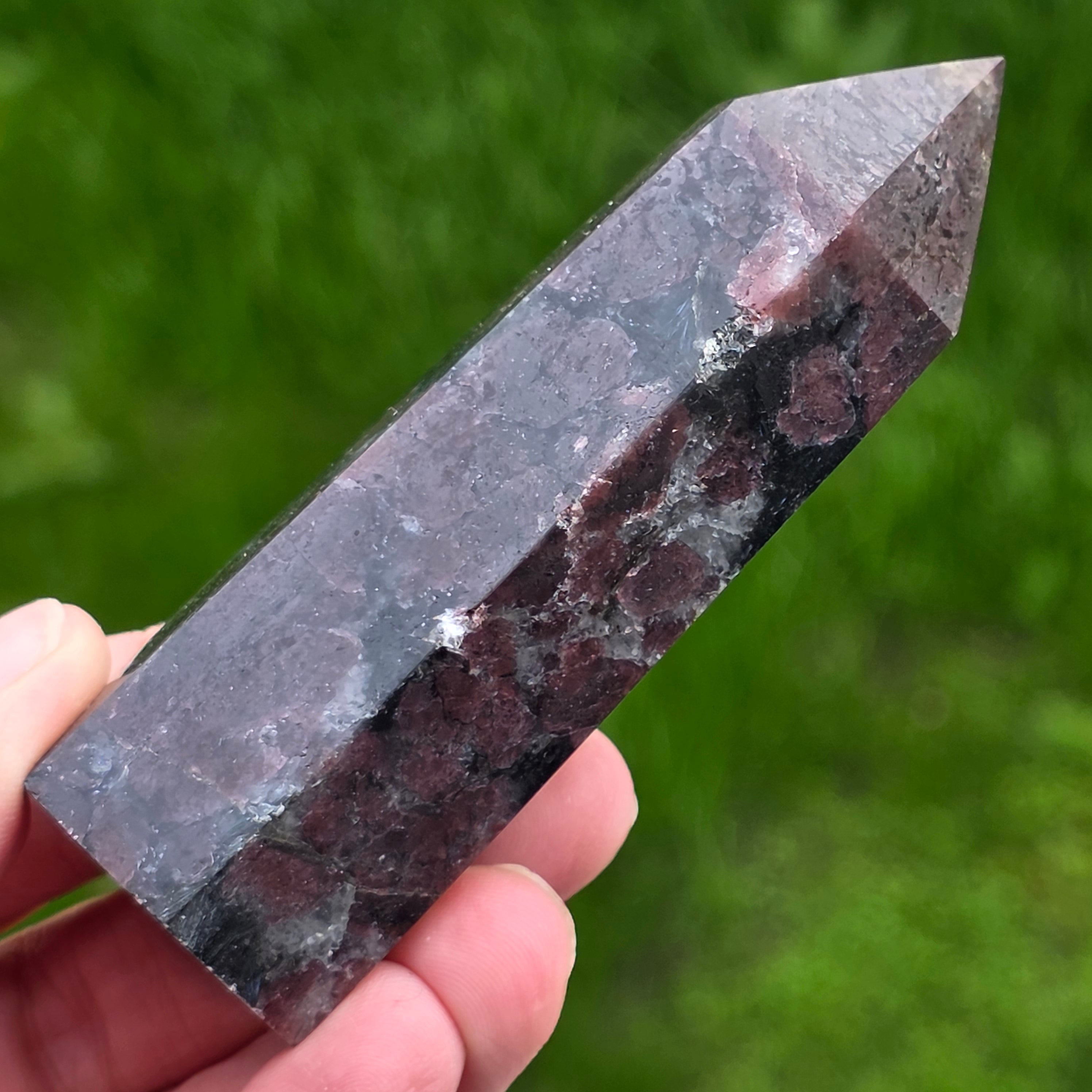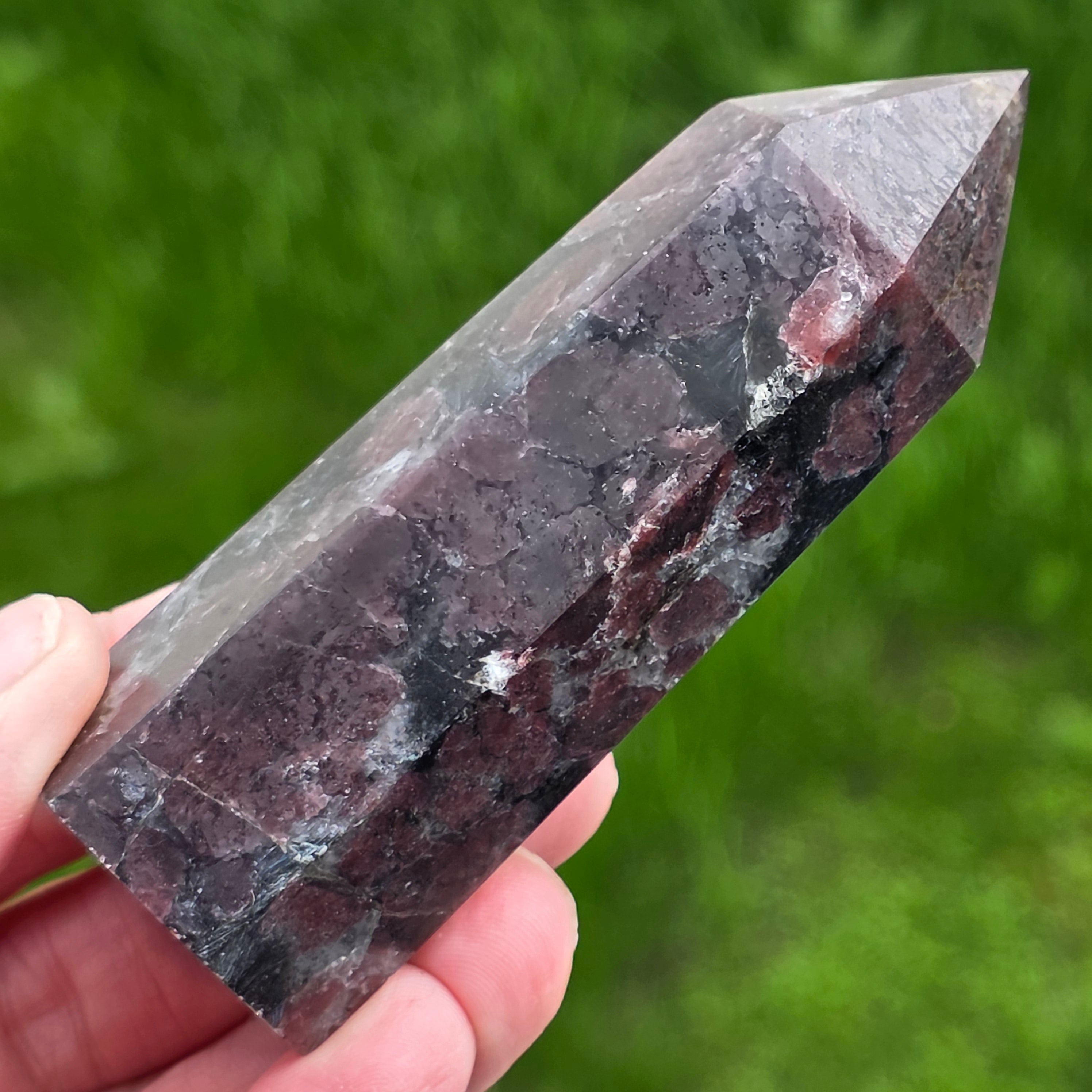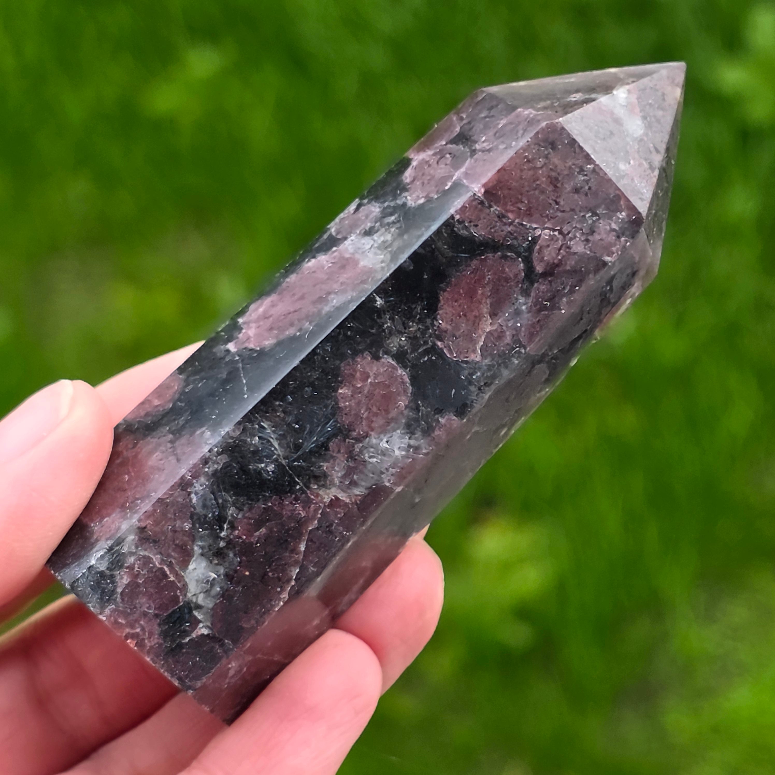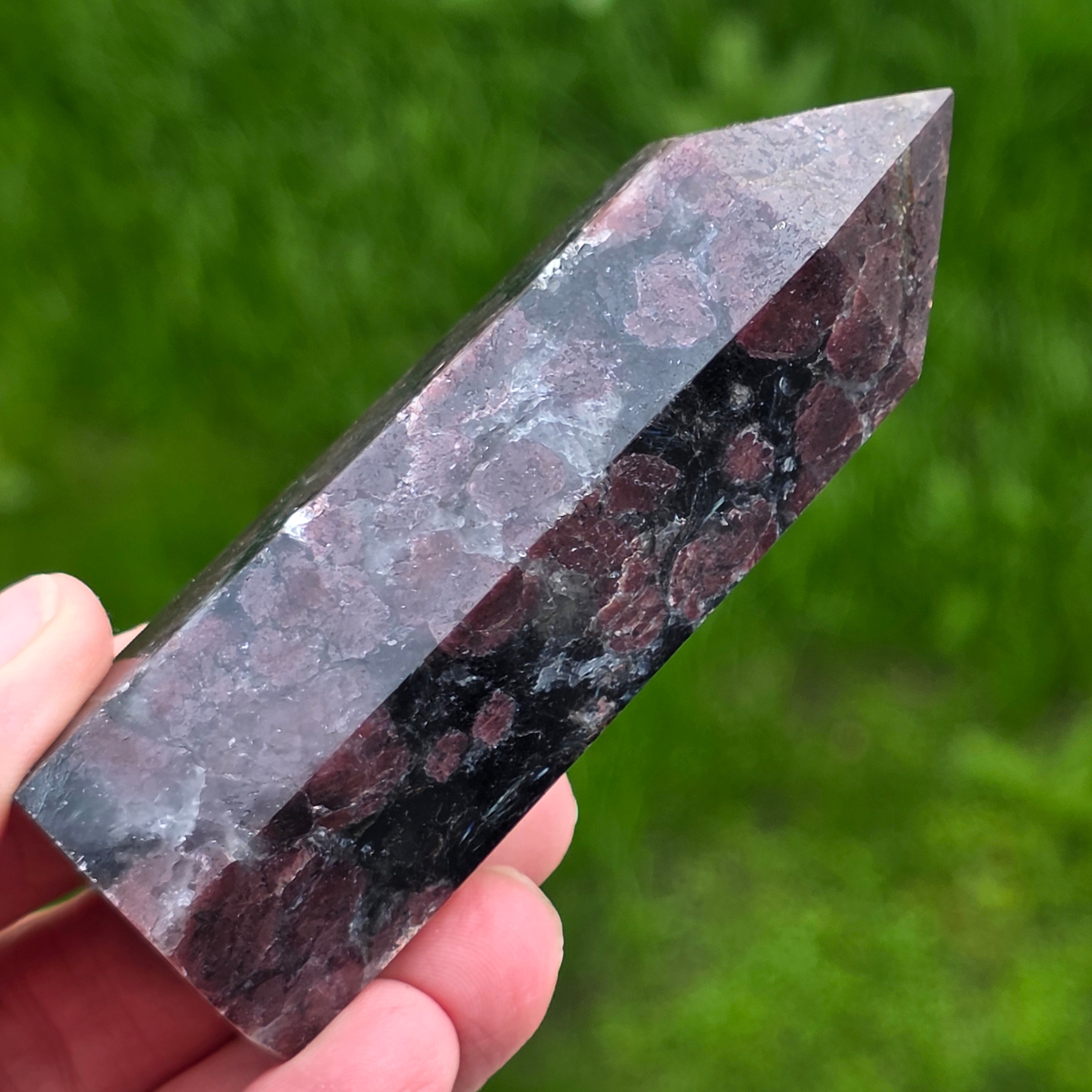 ¡Obelisco turmalino negro con patrón de granate 20