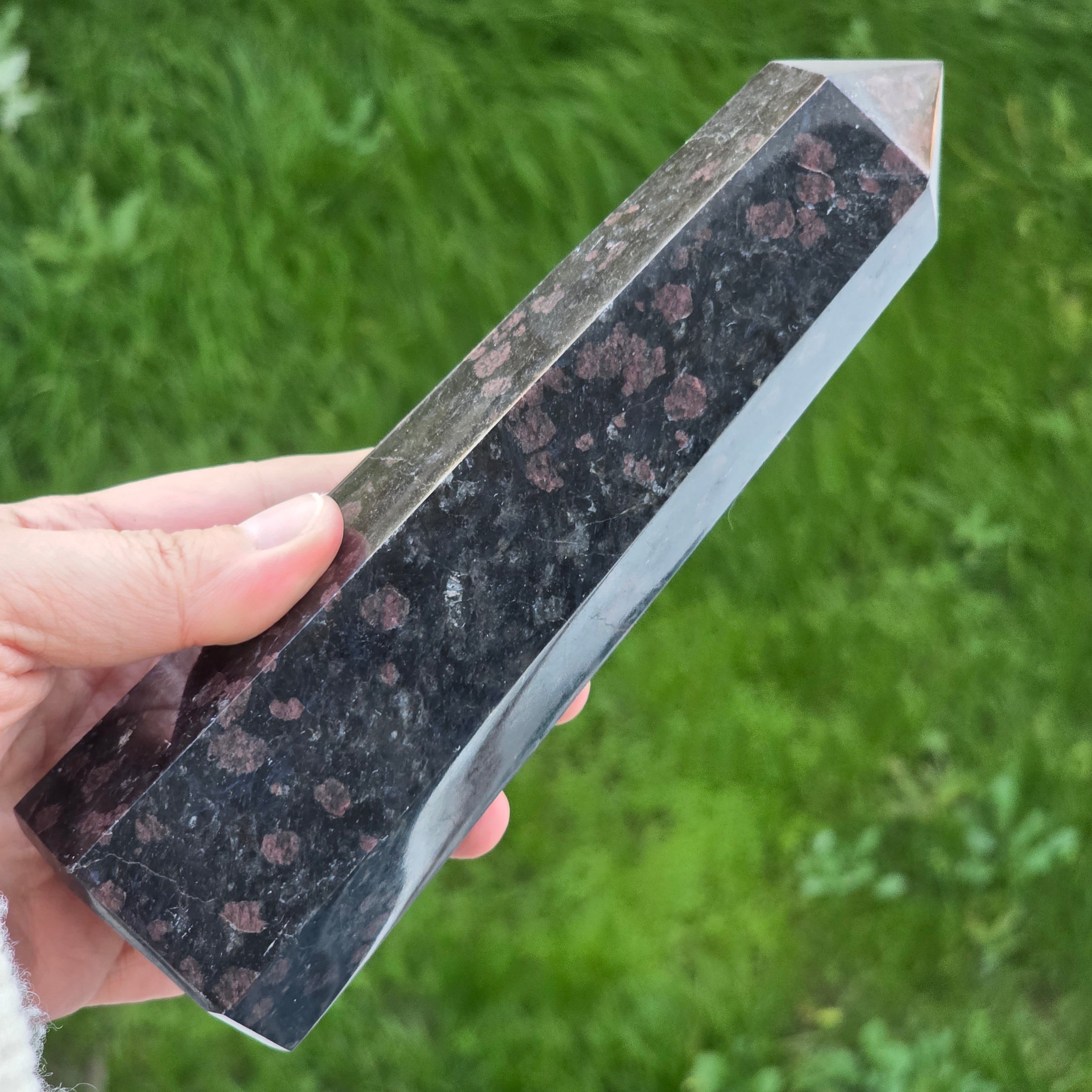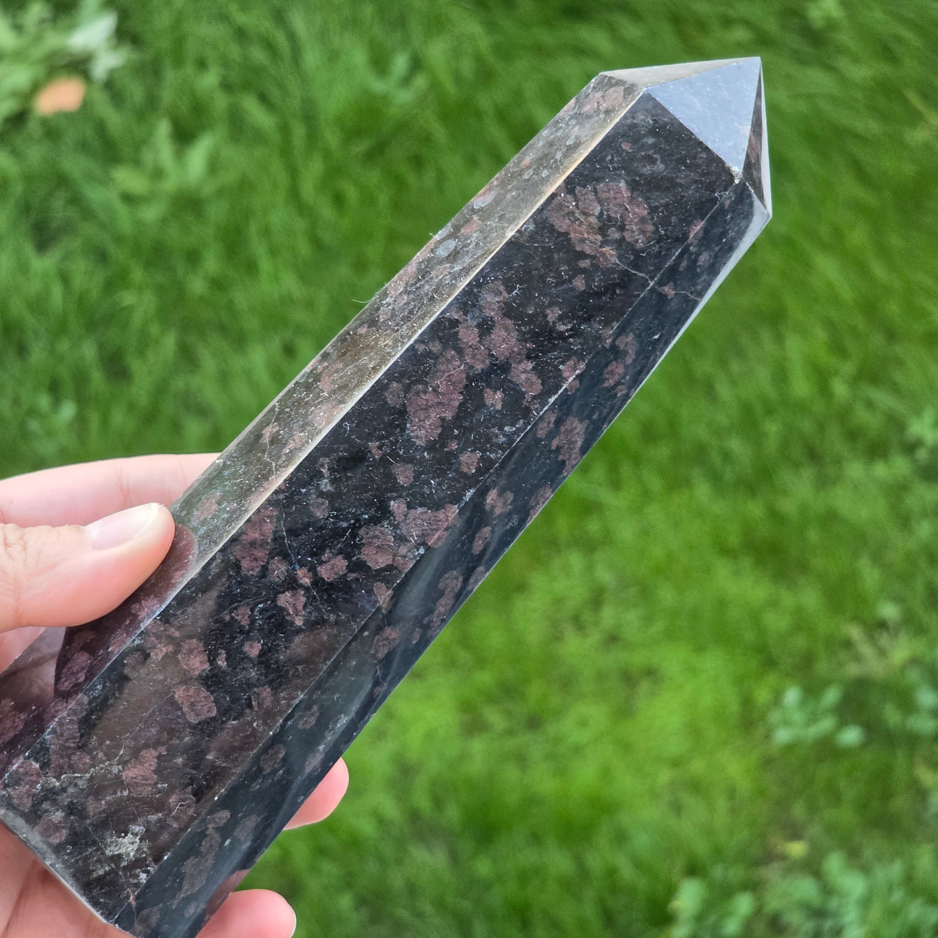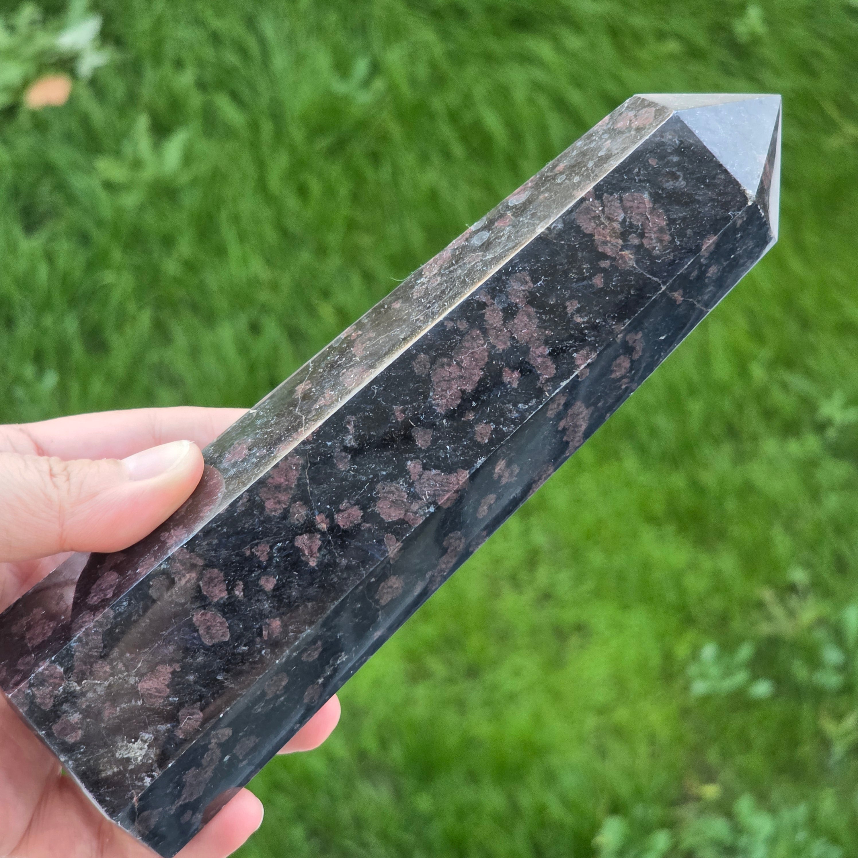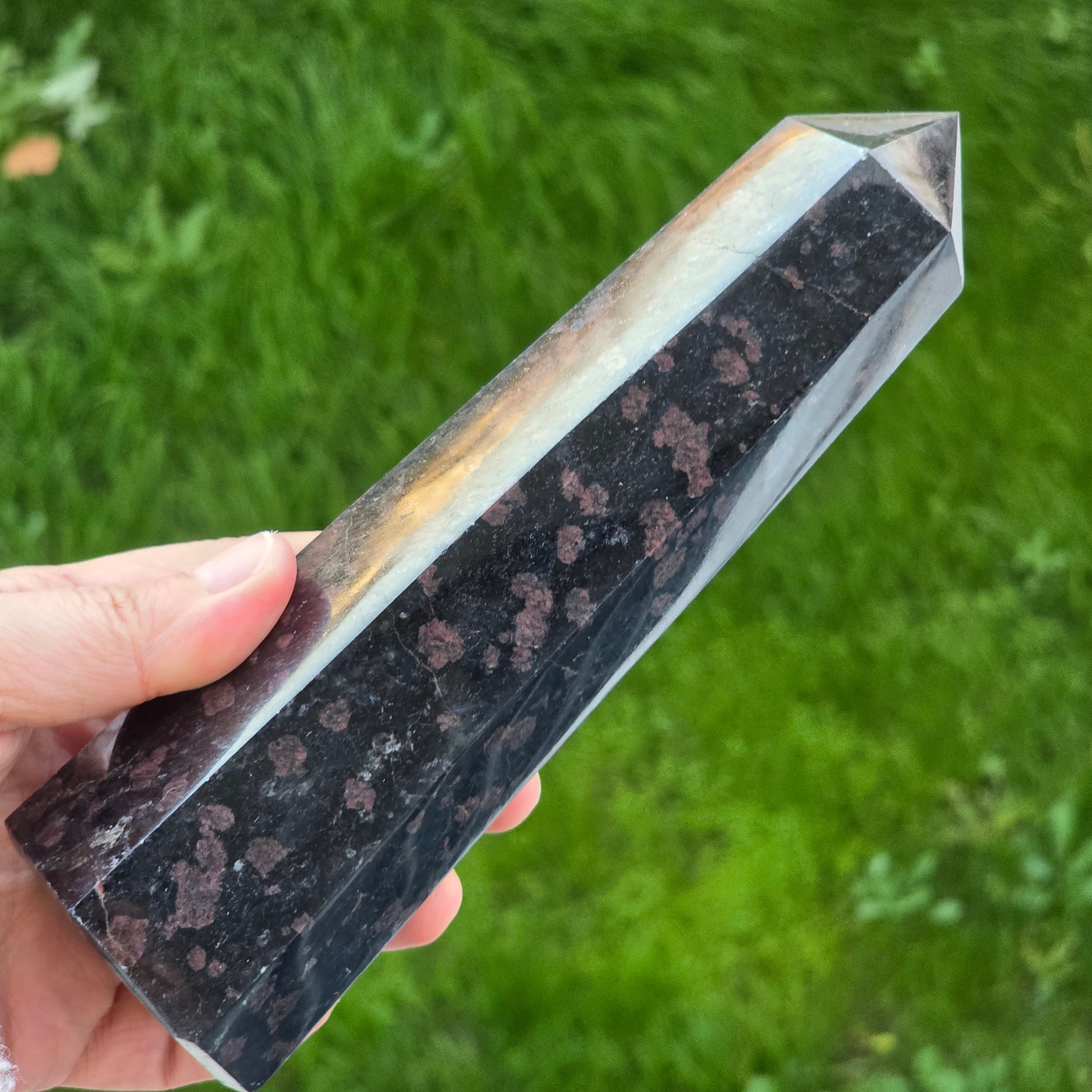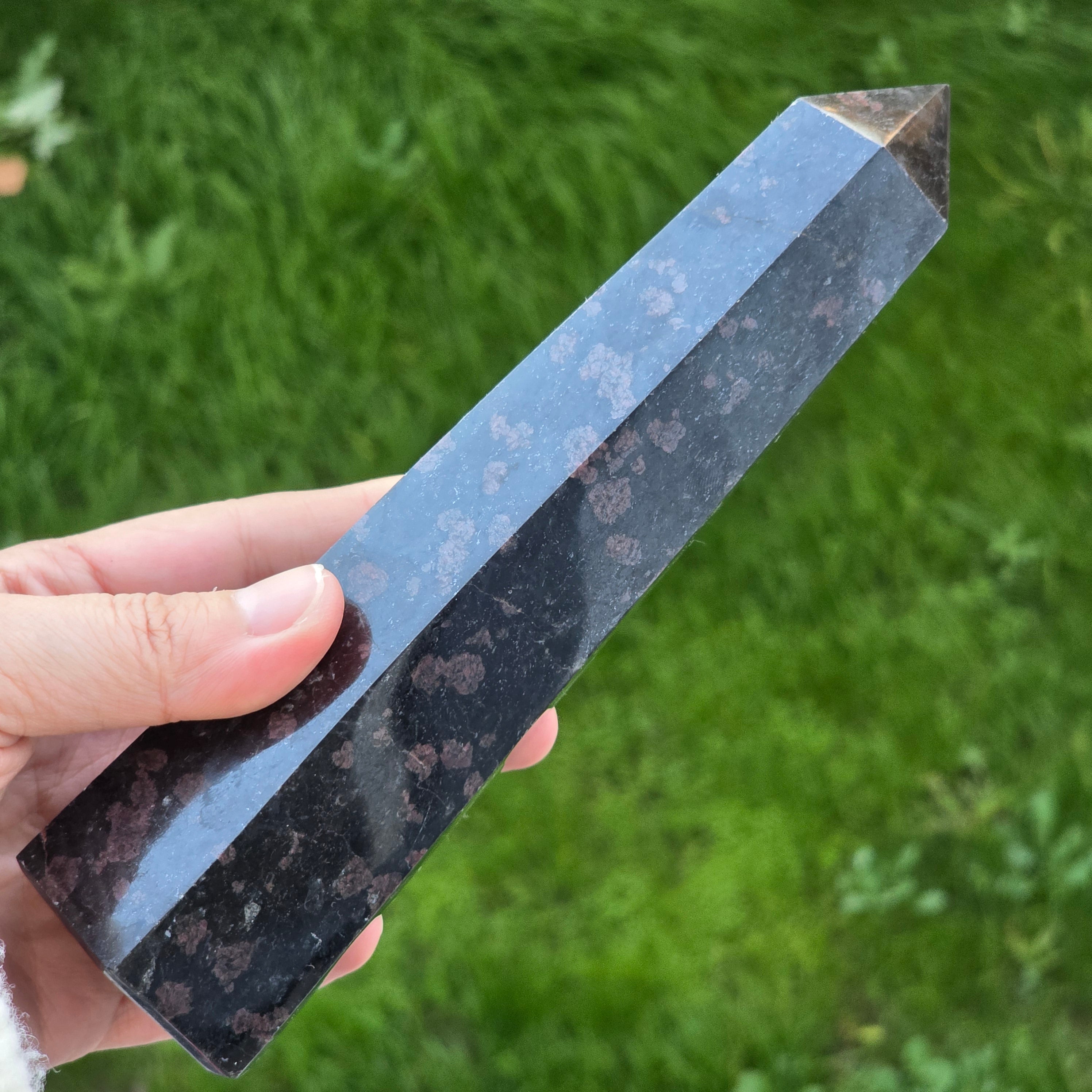 Obelisco de turmalina negra con granate XL | Modelo 1