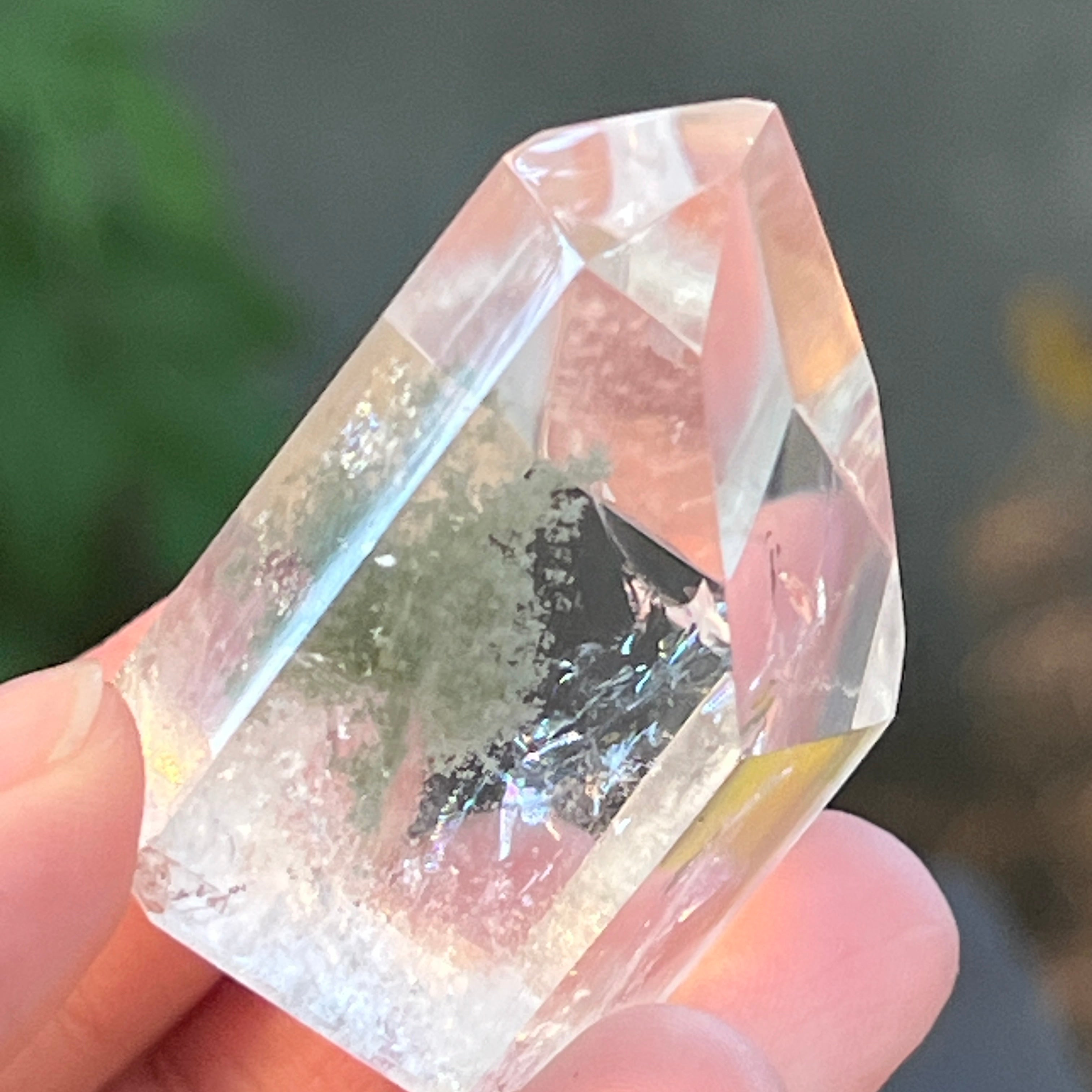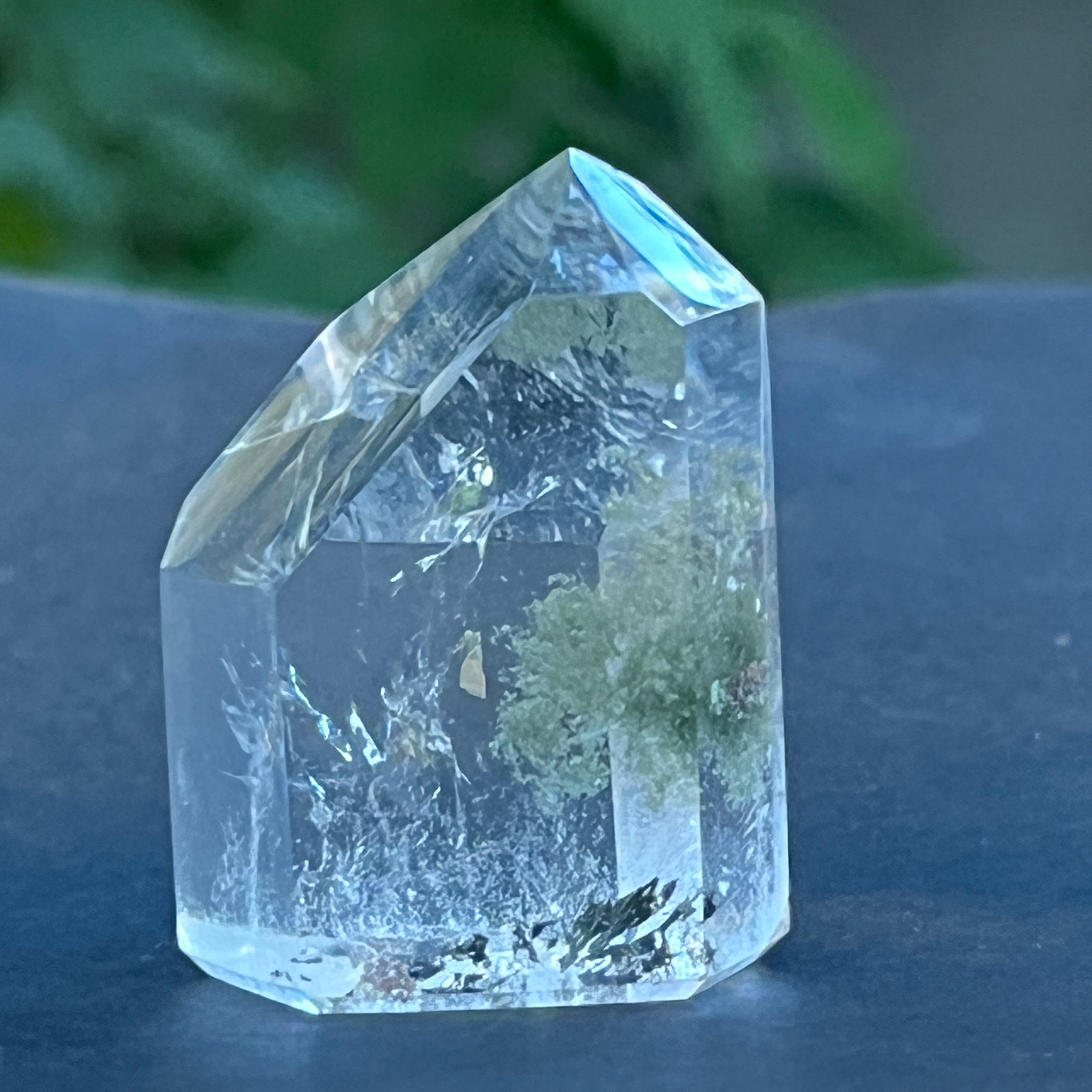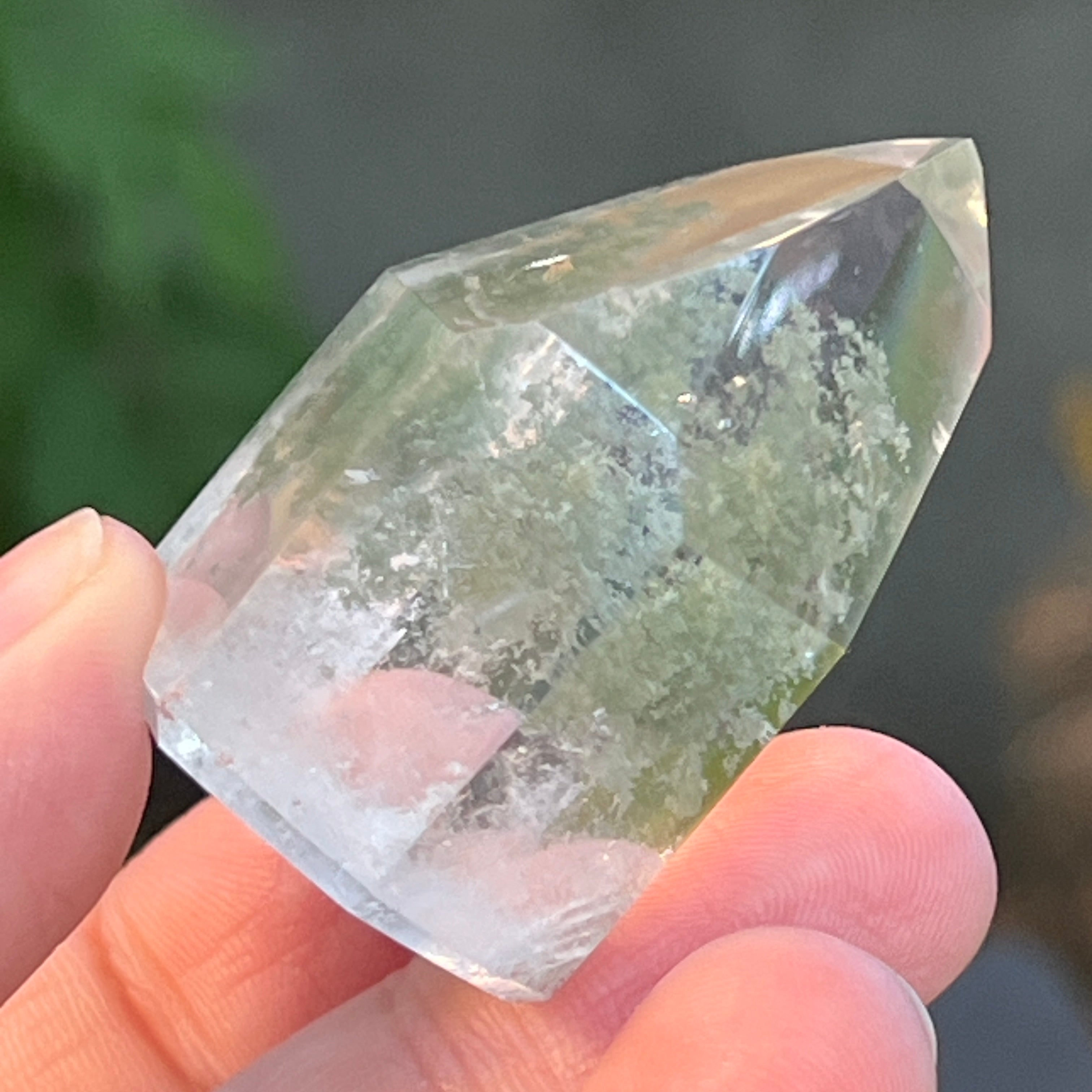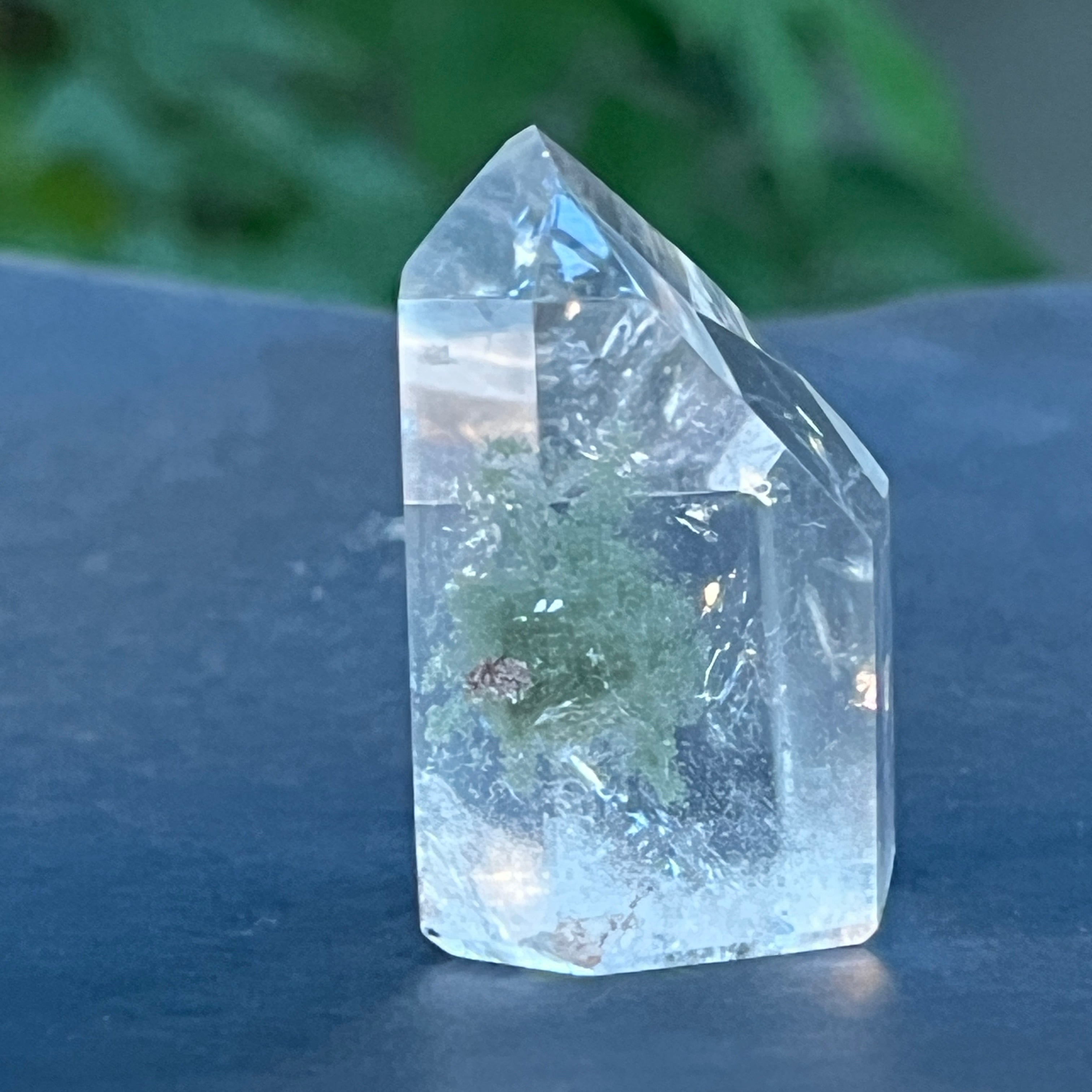 Obelisco de cuarzo con inclusiones de clorita m4, tamaño: 4.3 * 3.2 * 2.3 cm