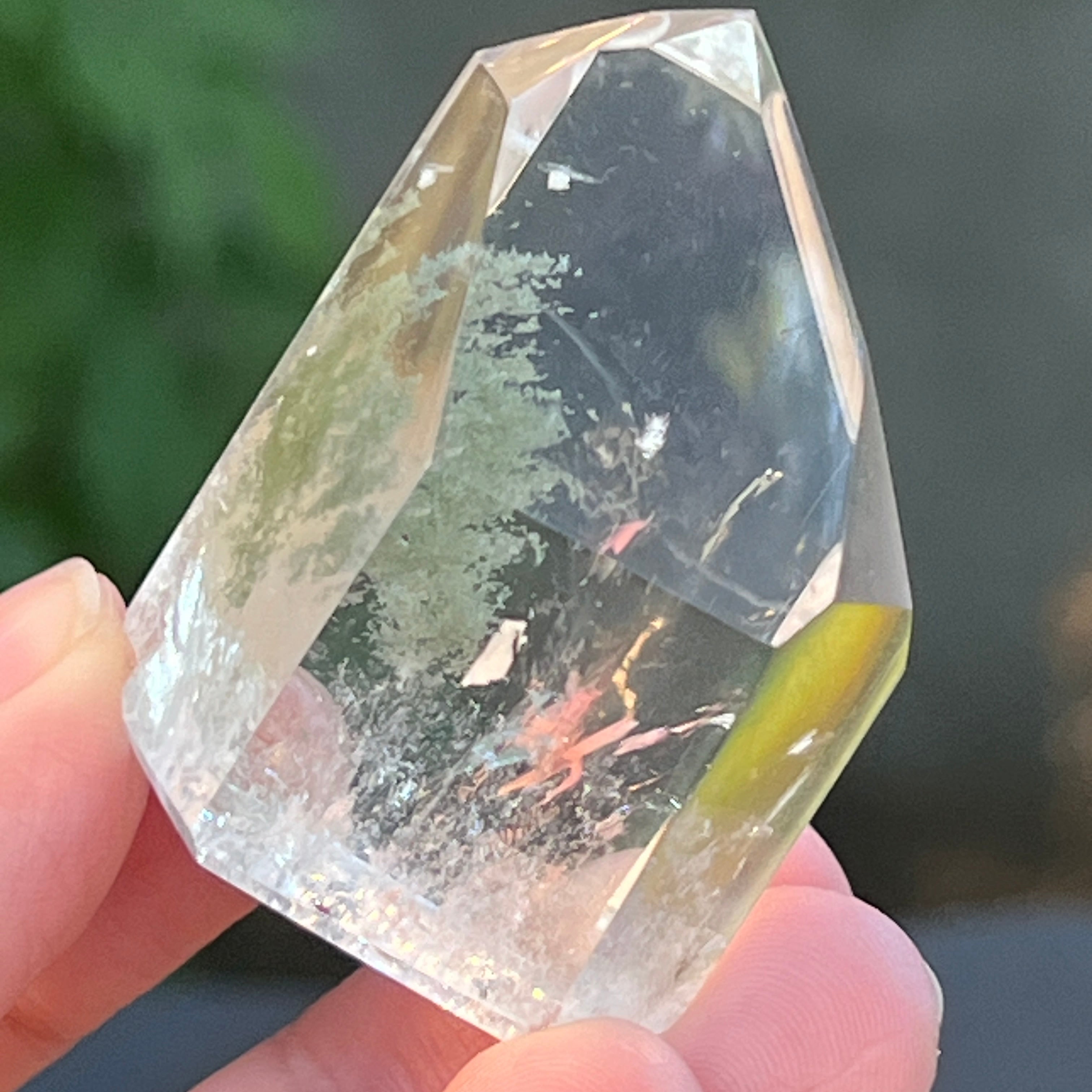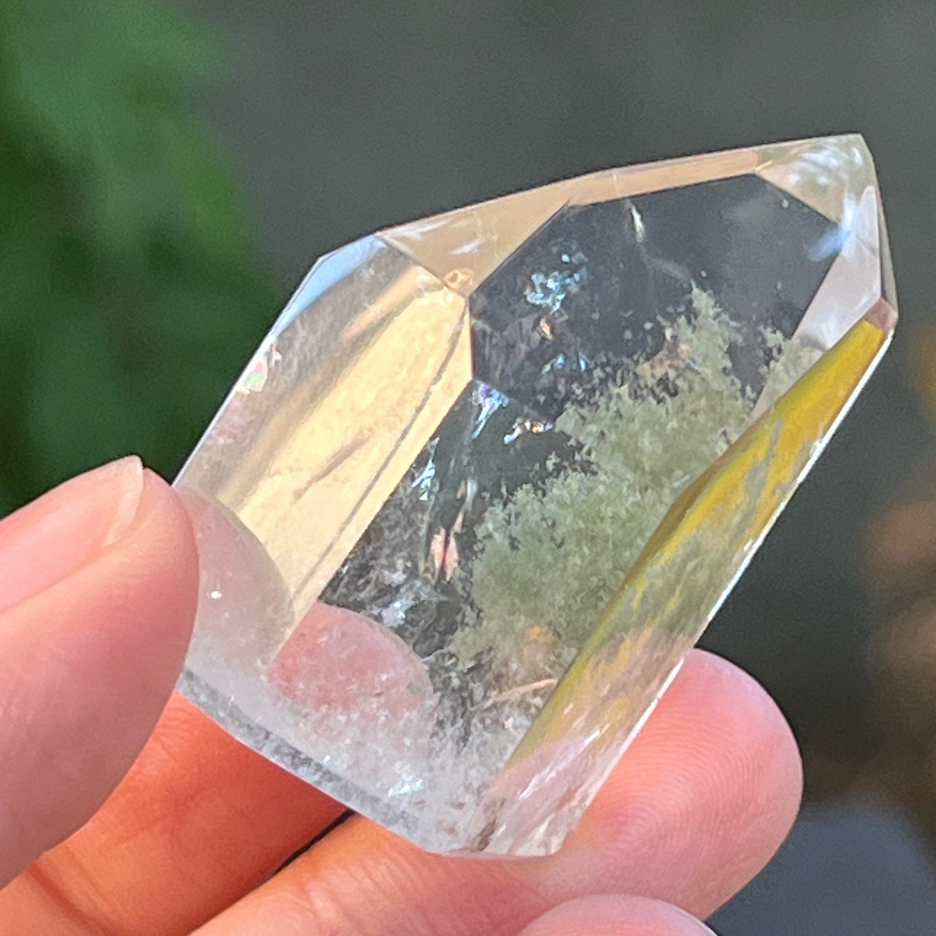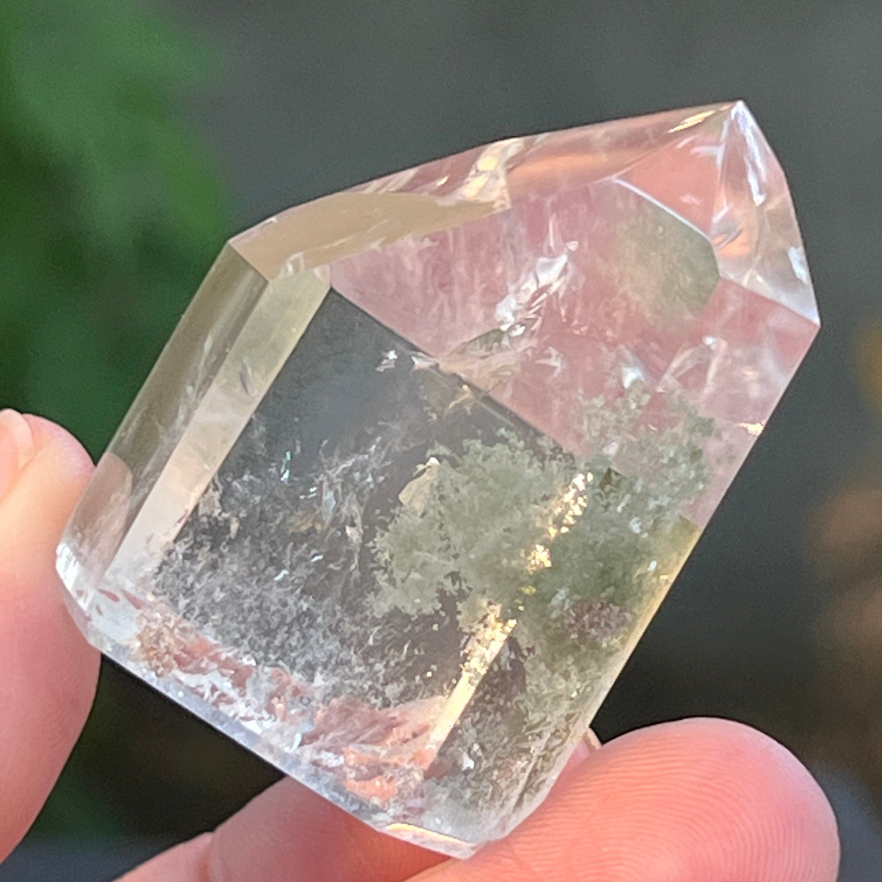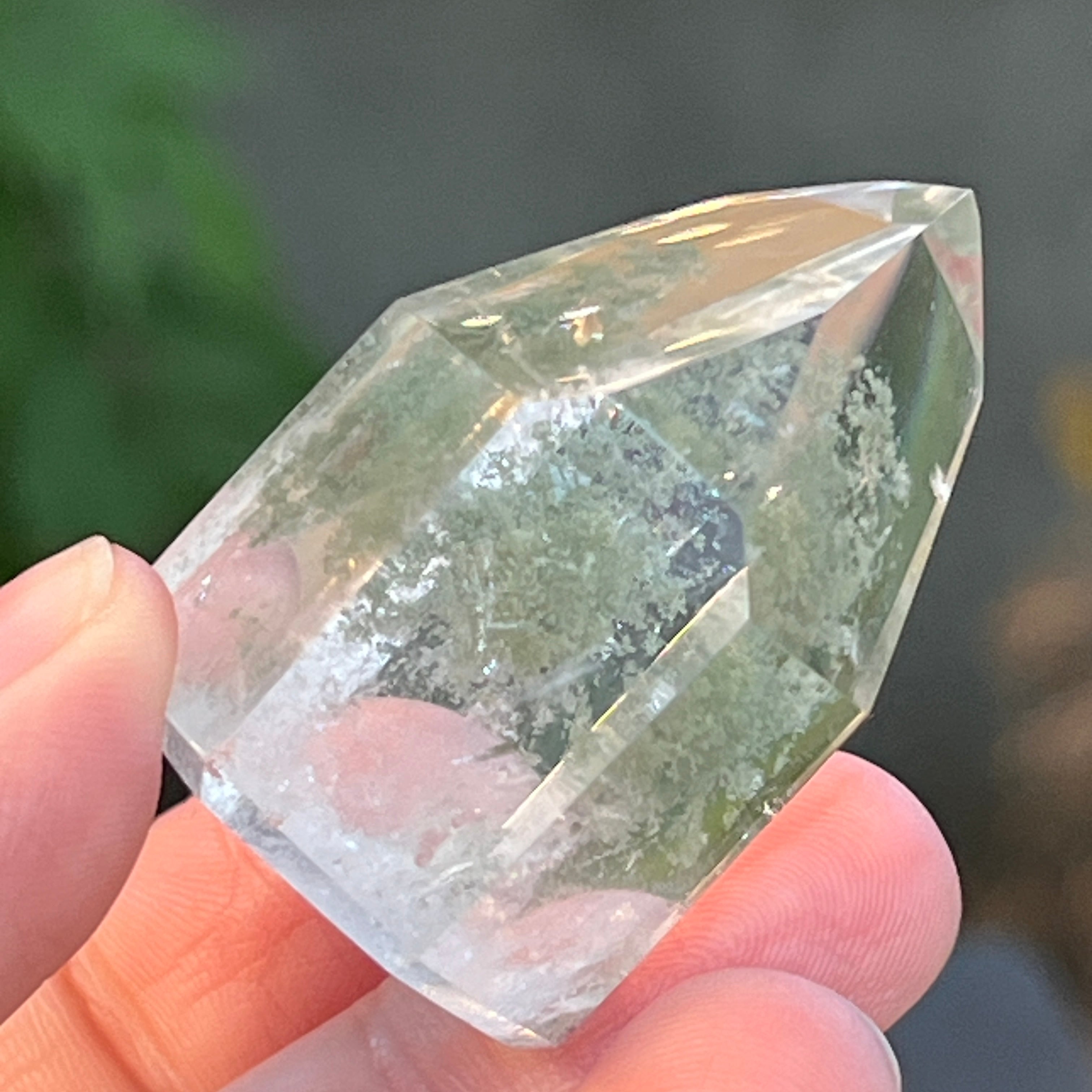 Obelisco de cuarzo con inclusiones de clorita m4, tamaño: 4.3 * 3.2 * 2.3 cm