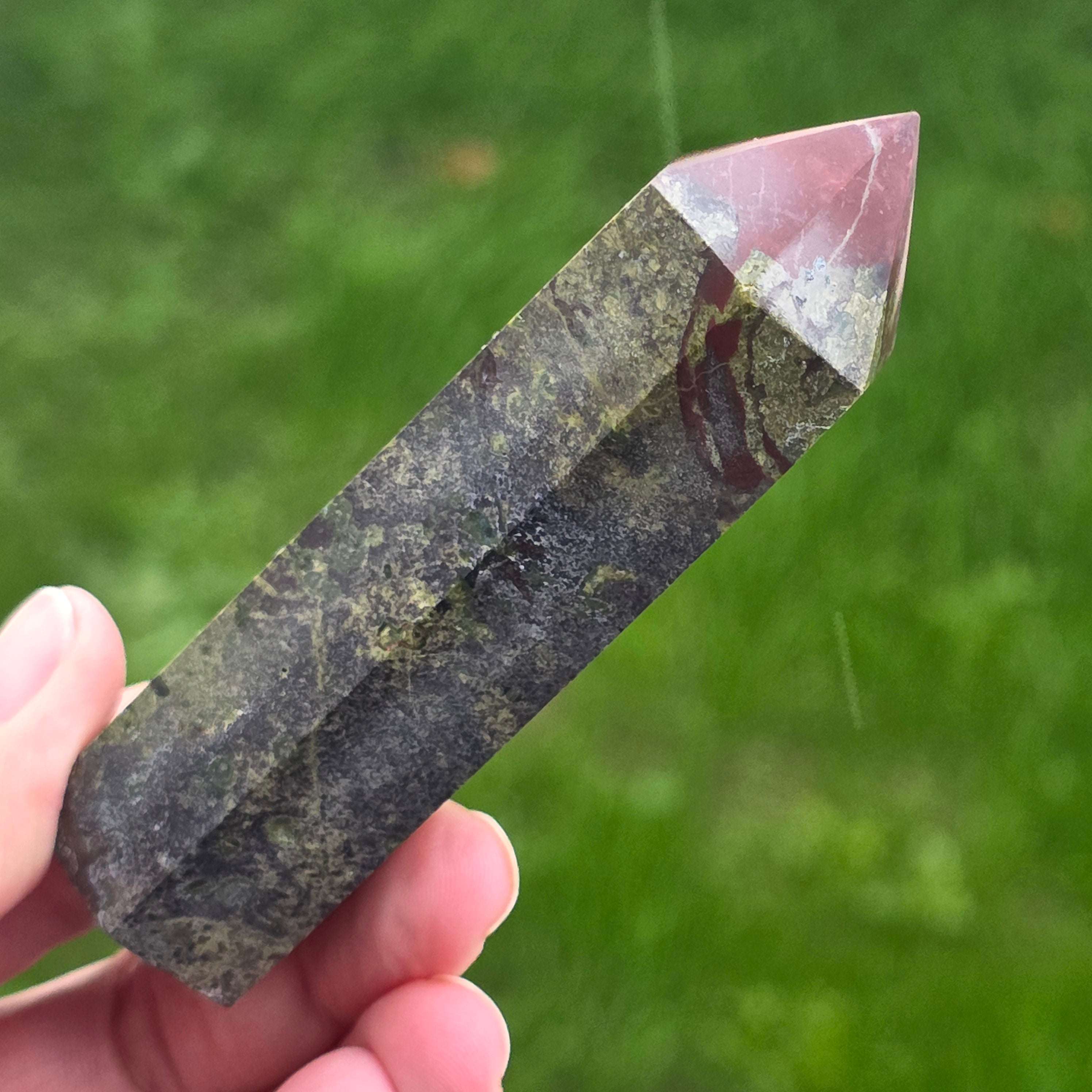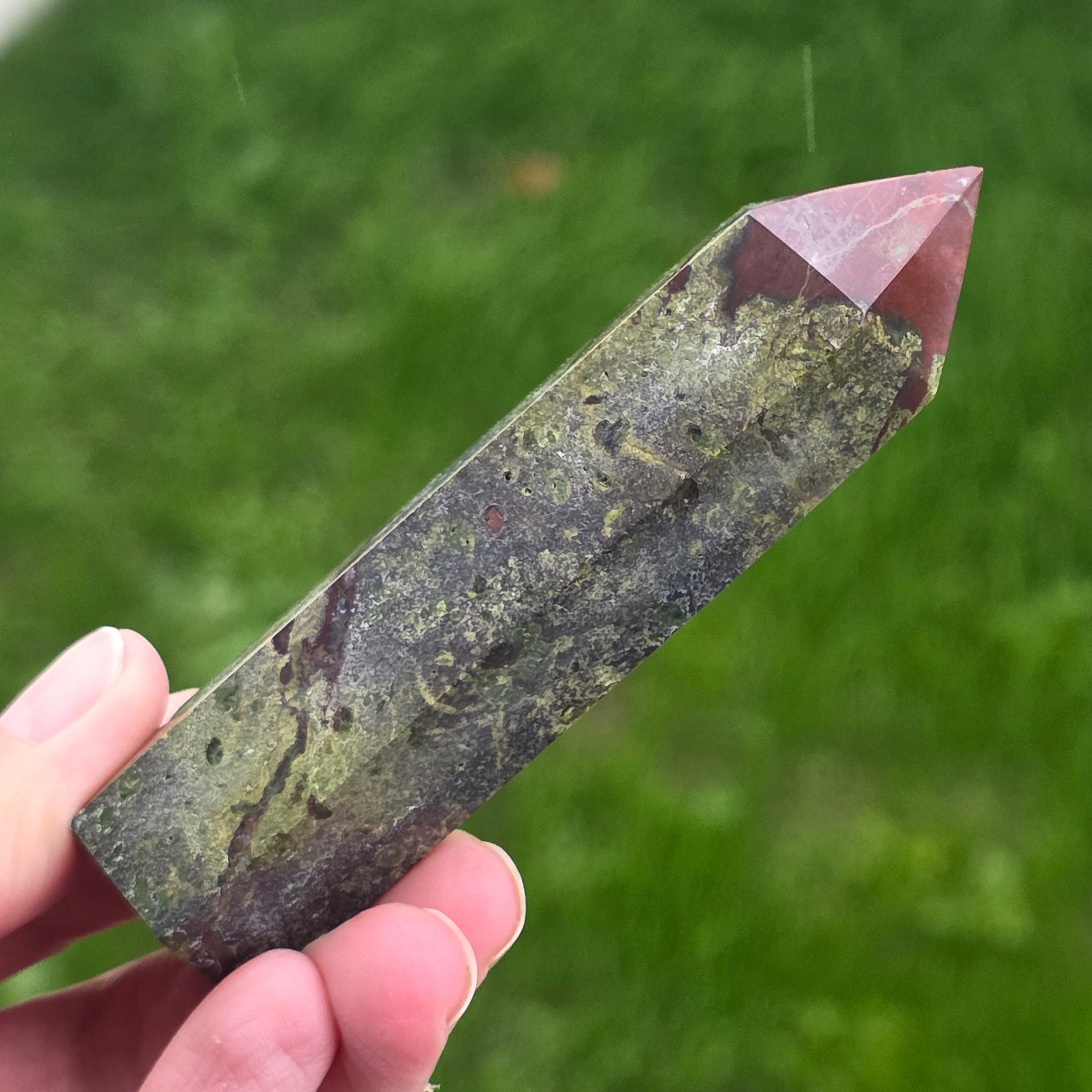 Obelisco mini de piedra sangre de dragón (epidota & piedmontita) | Modelo 12