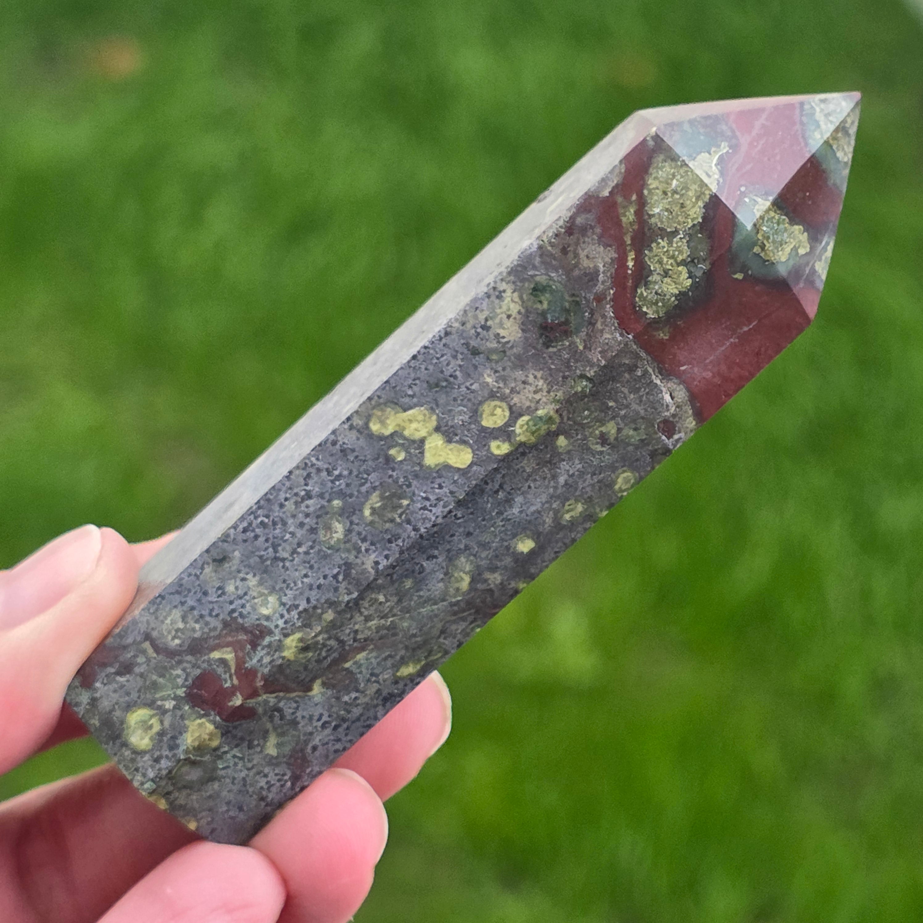 Obelisco mini piedra sangre de dragón (epidoto & piedmontita) m10