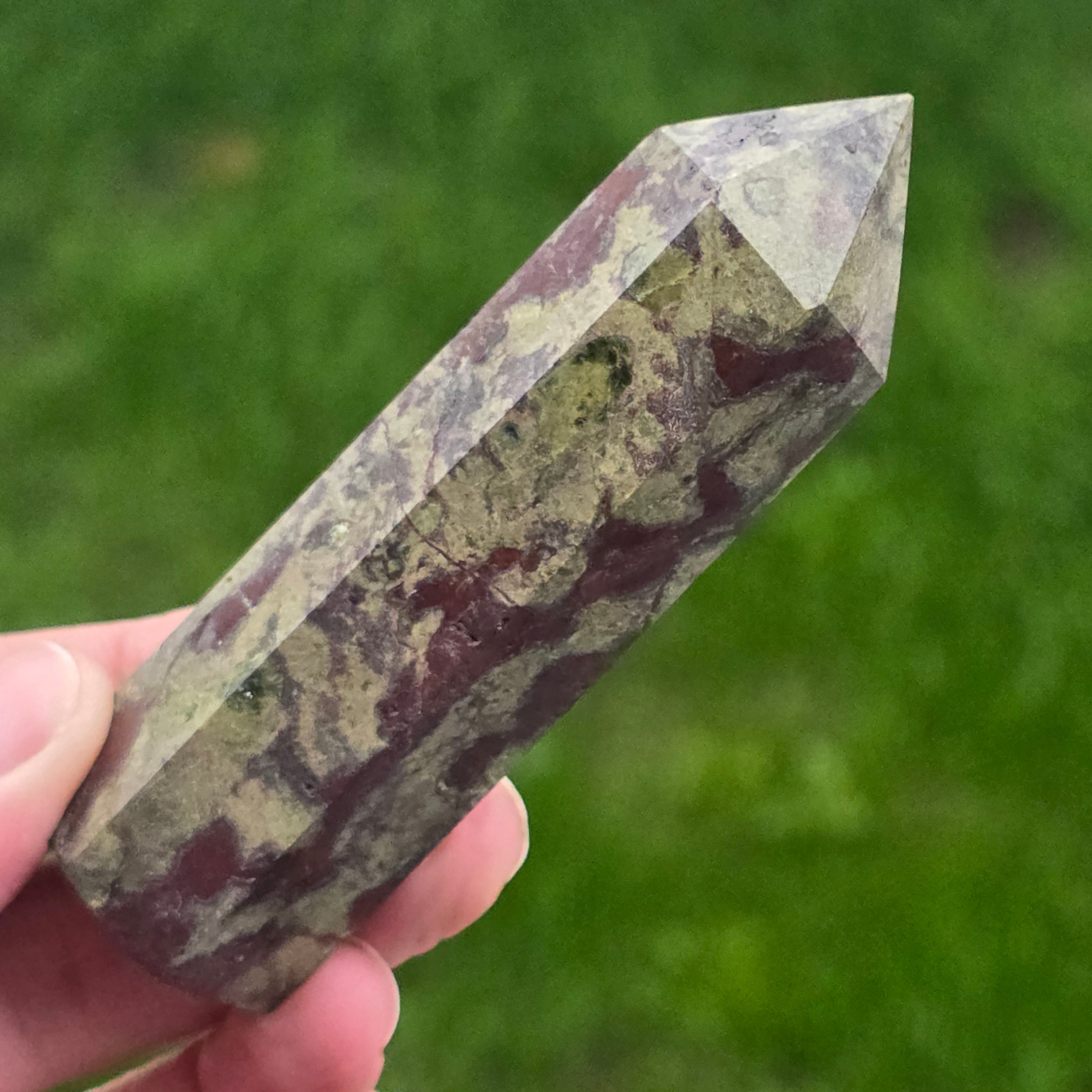 Obelisco mini piedra sangre de dragón (epidoto&piedmontita) | Modelo 13