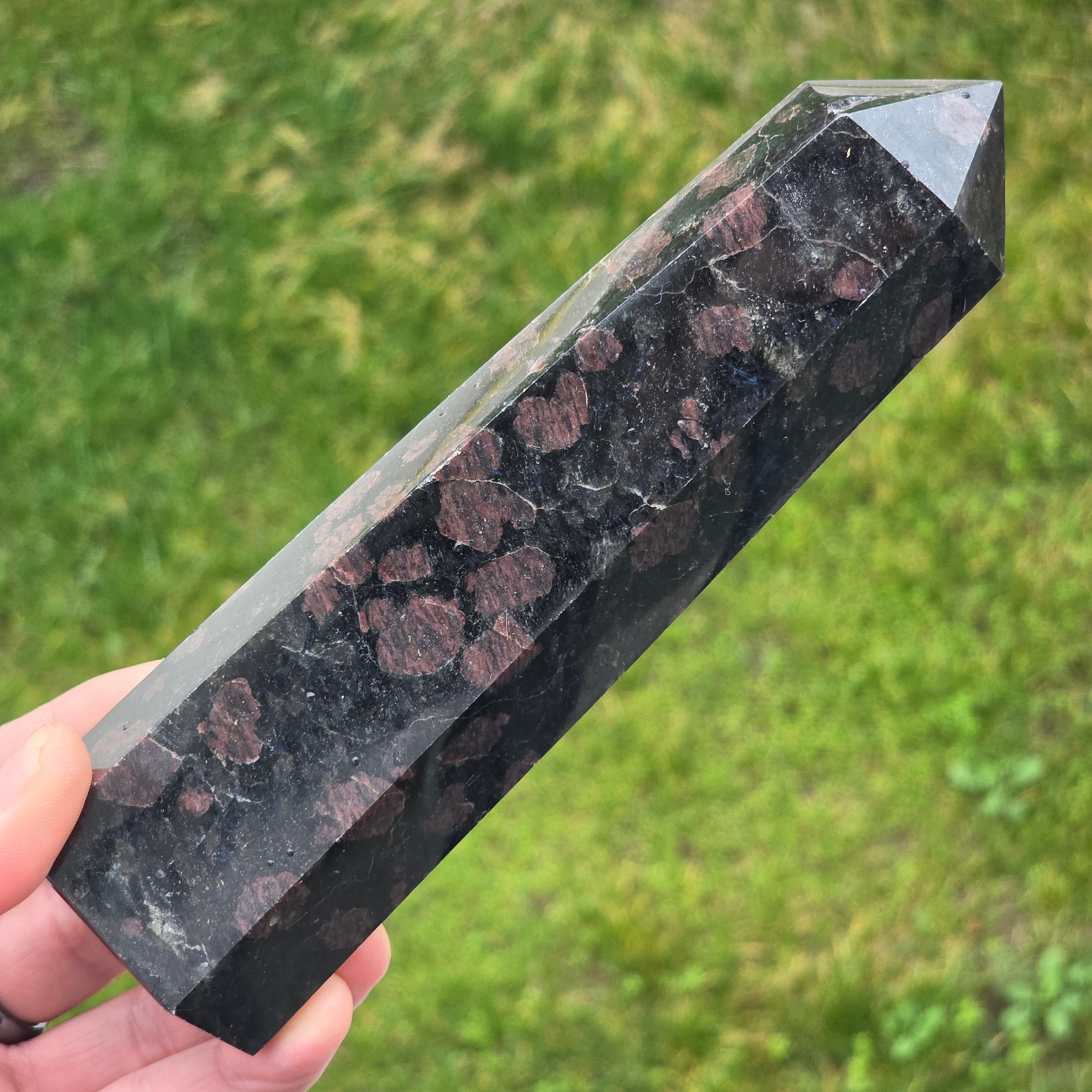 Descriere - Obelisco de turmalina negra con granate | Modelo 25